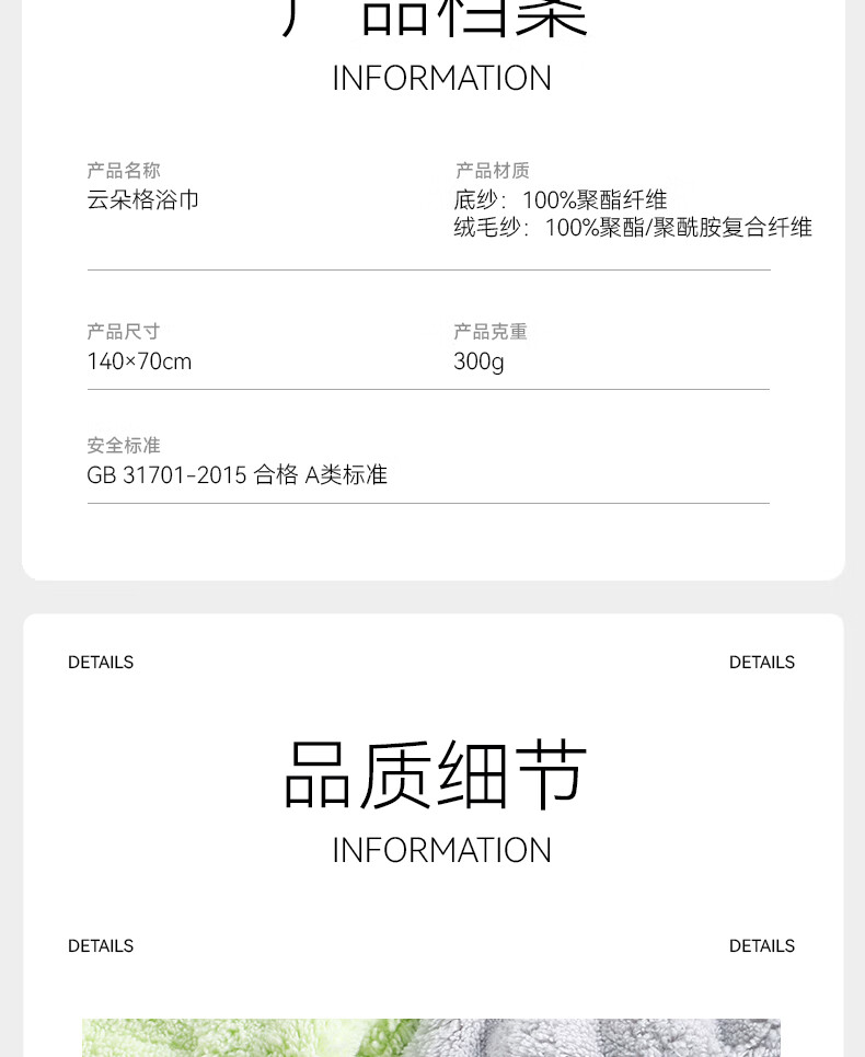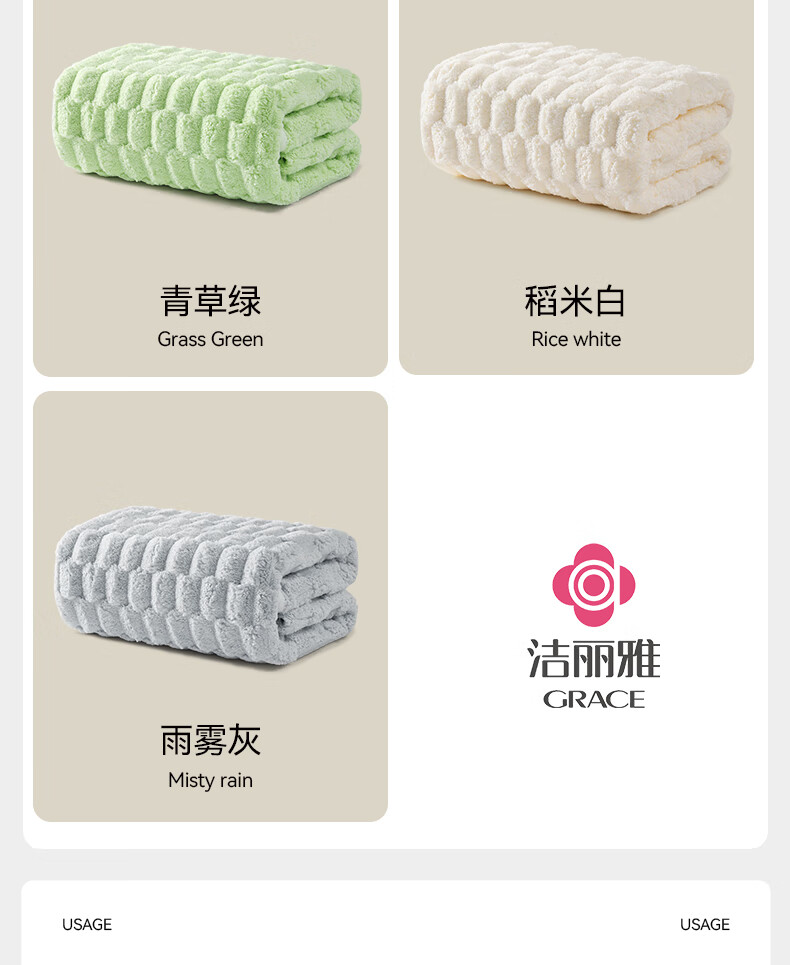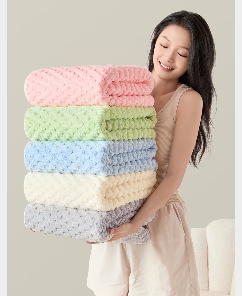 洁丽雅日式云朵格浴巾男女士7A级抗菌300克超强吸水柔软亲肤洗澡速干厚