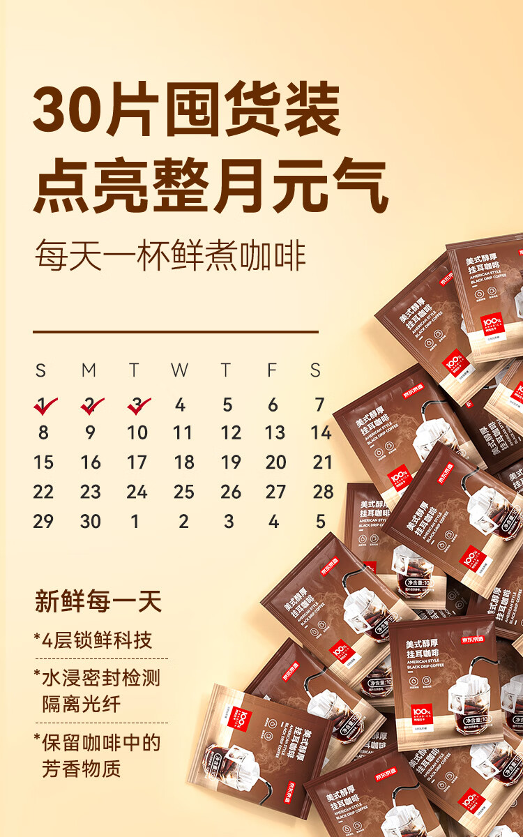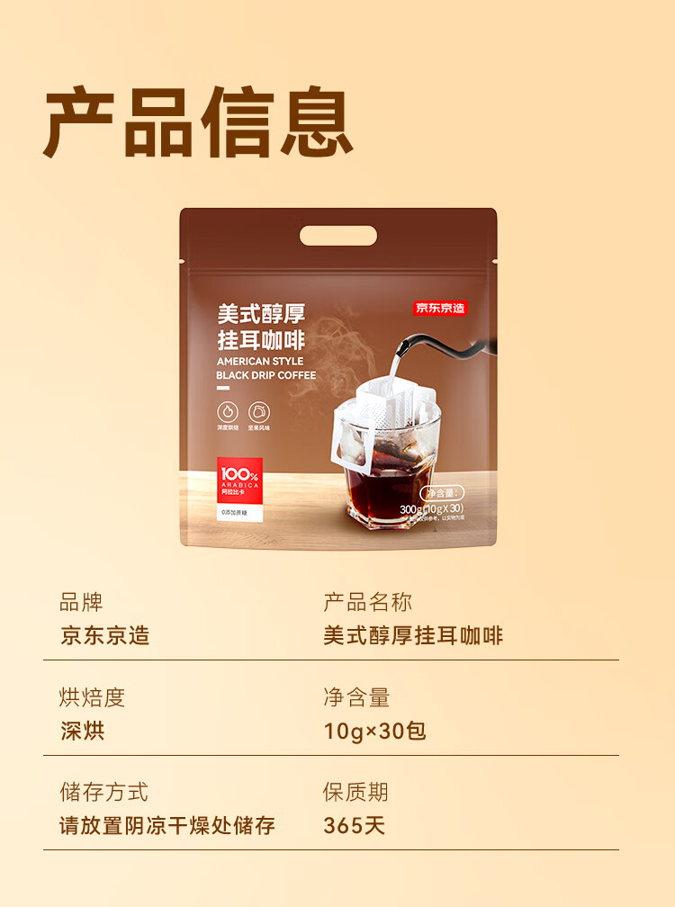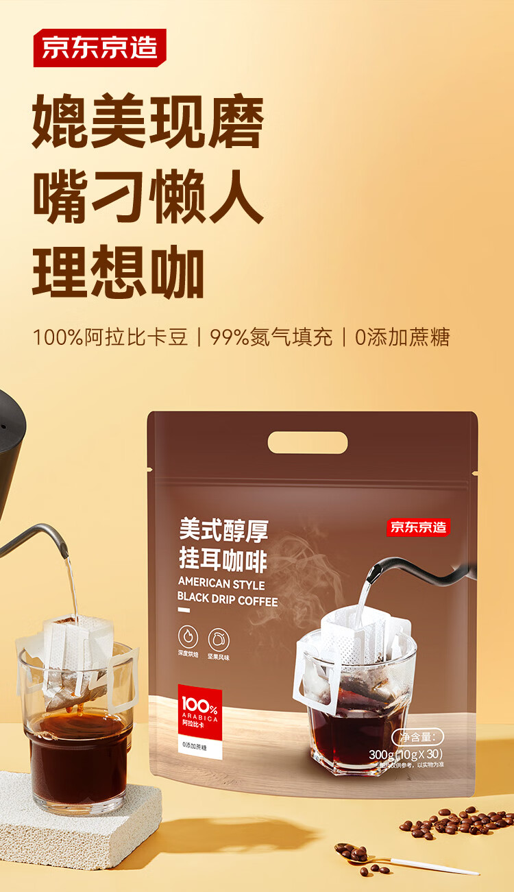京东京造鲜来多 美式醇厚挂耳咖啡10g*30包手冲0糖黑咖啡阿拉比卡健身减脂