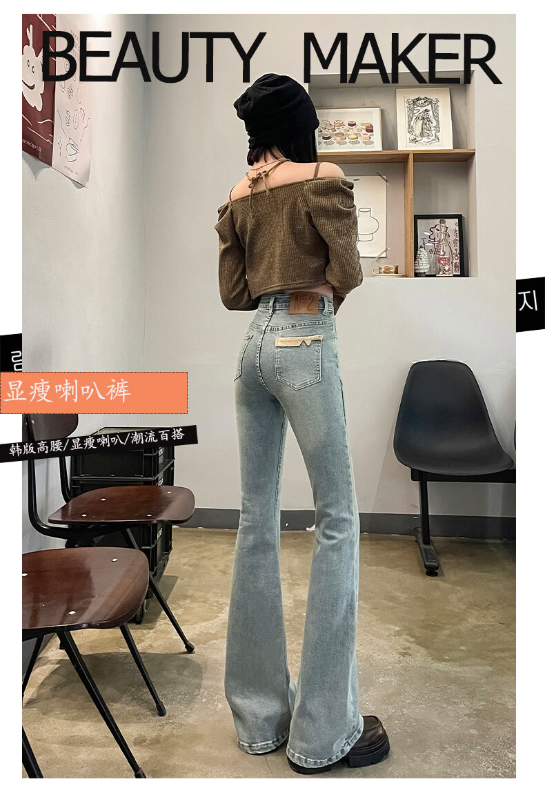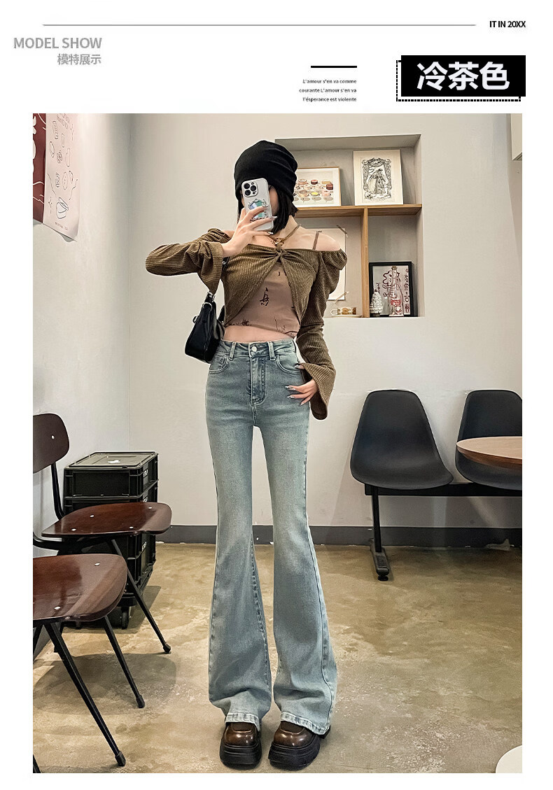 MODX牛仔裤女款喇叭裤女款2026年春夏薄款高腰显瘦毛边微喇叭裤子 冷茶色【长裤】 XS
