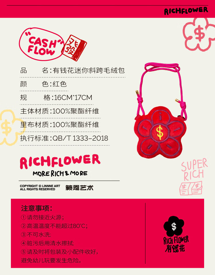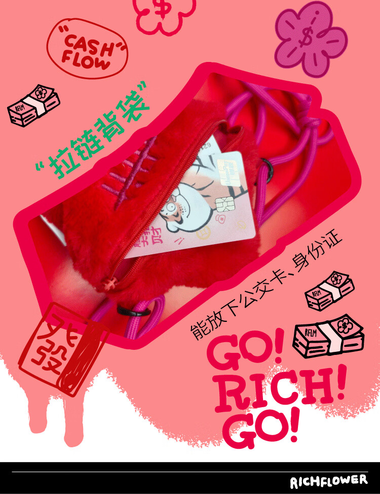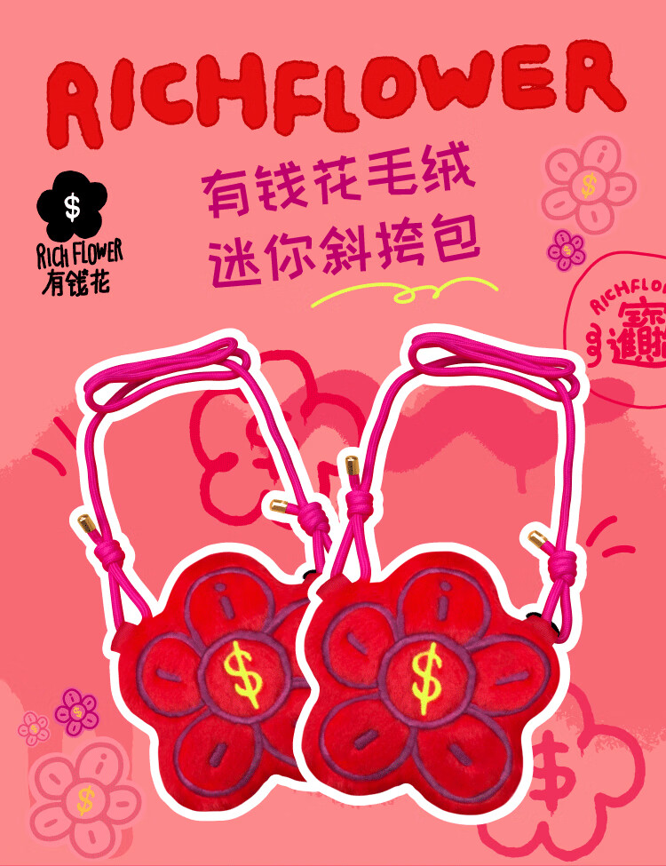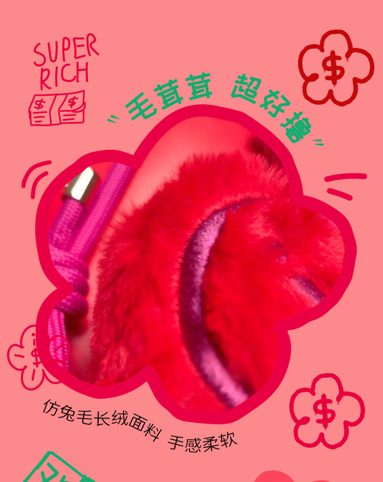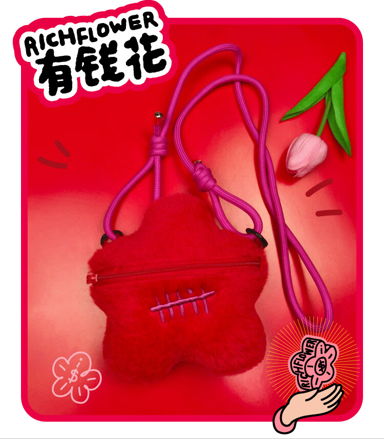 屈臣氏有钱花迷你斜跨毛绒包 红色