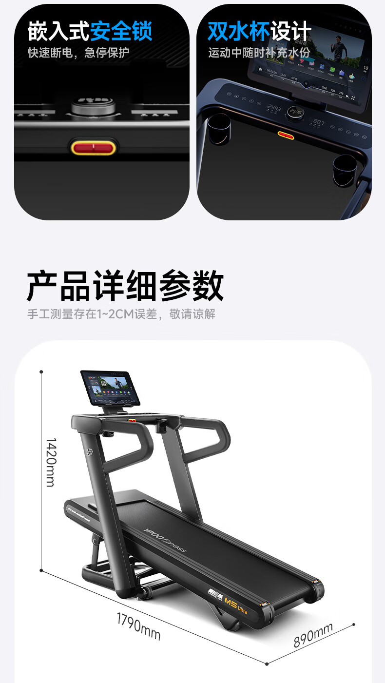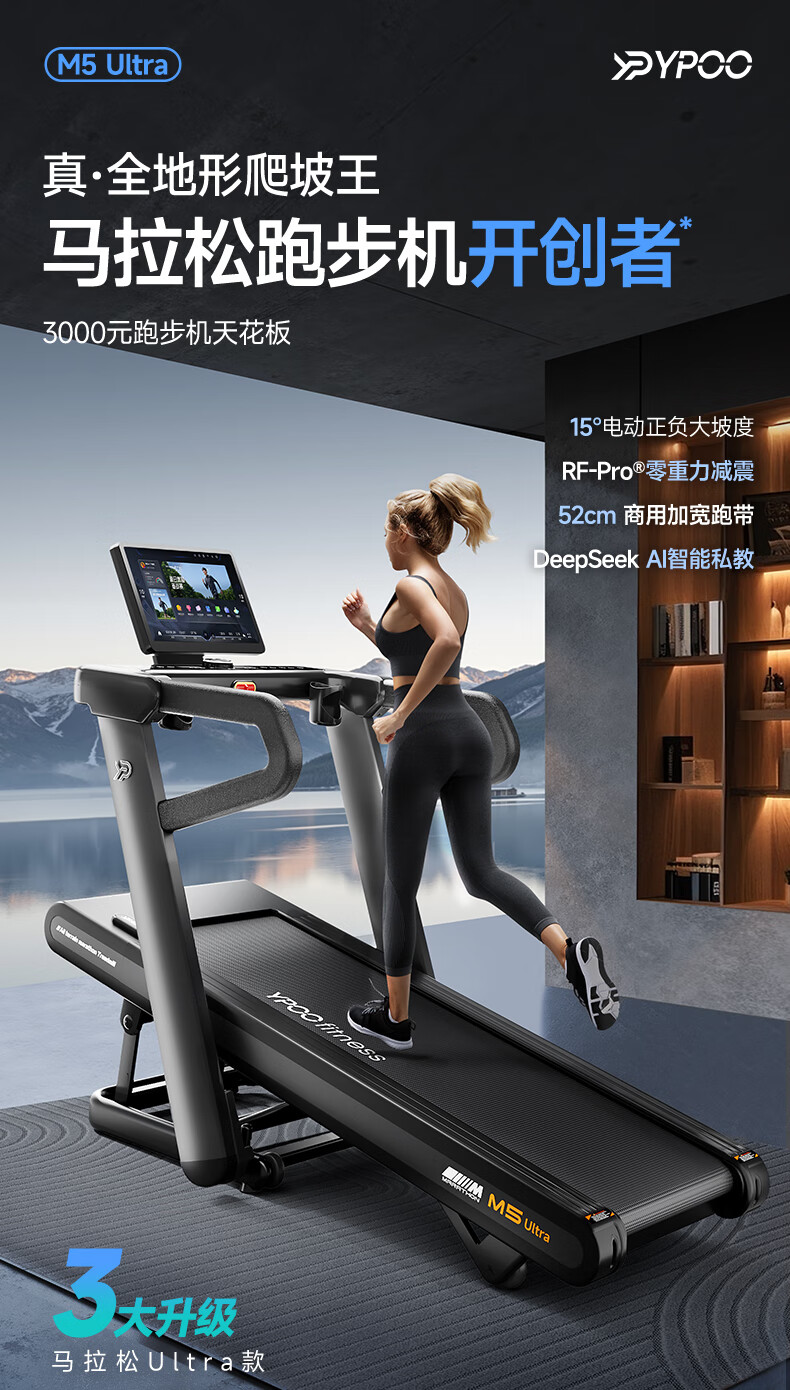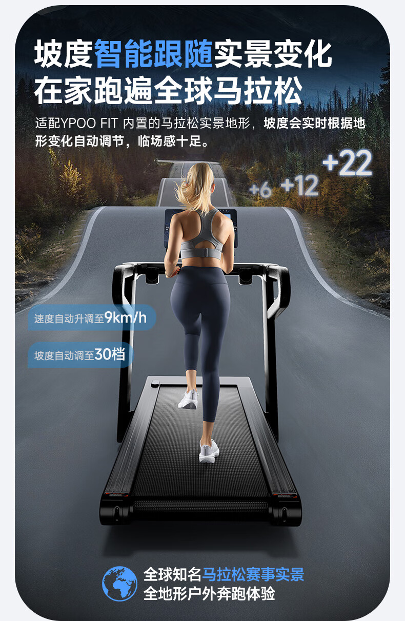 易跑YPOO马拉松跑步机家庭用爬坡折叠减震护膝静音高端健身房器材M5 马拉松Pro+版/13°大坡度/轻商级宽跑带