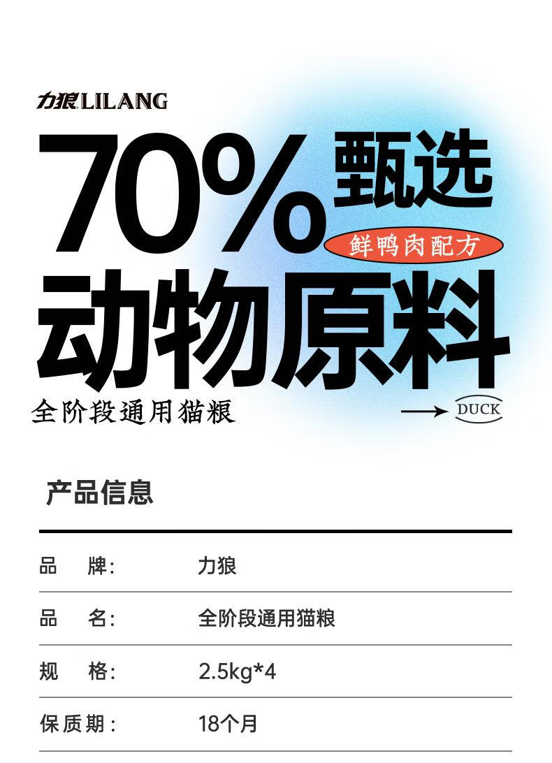 力狼(LILANG)e族全价幼猫成猫鲜肉粮通用型鸭肉味猫粮10kg