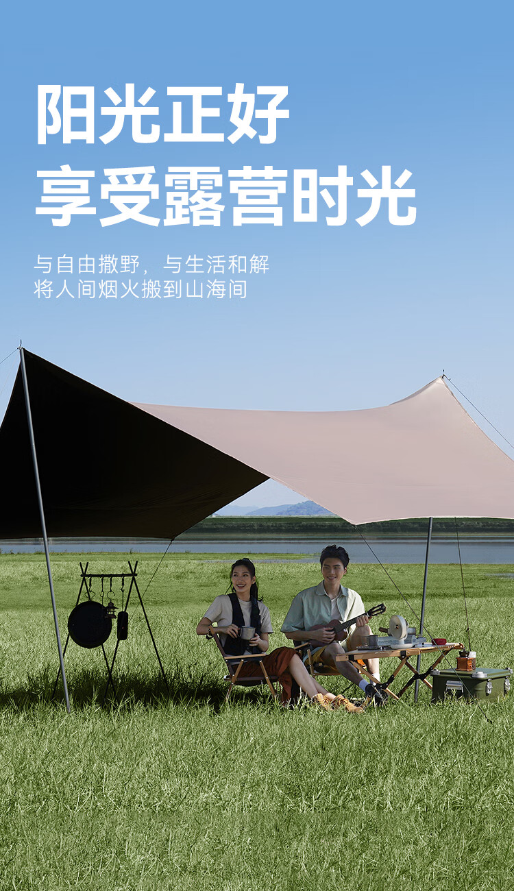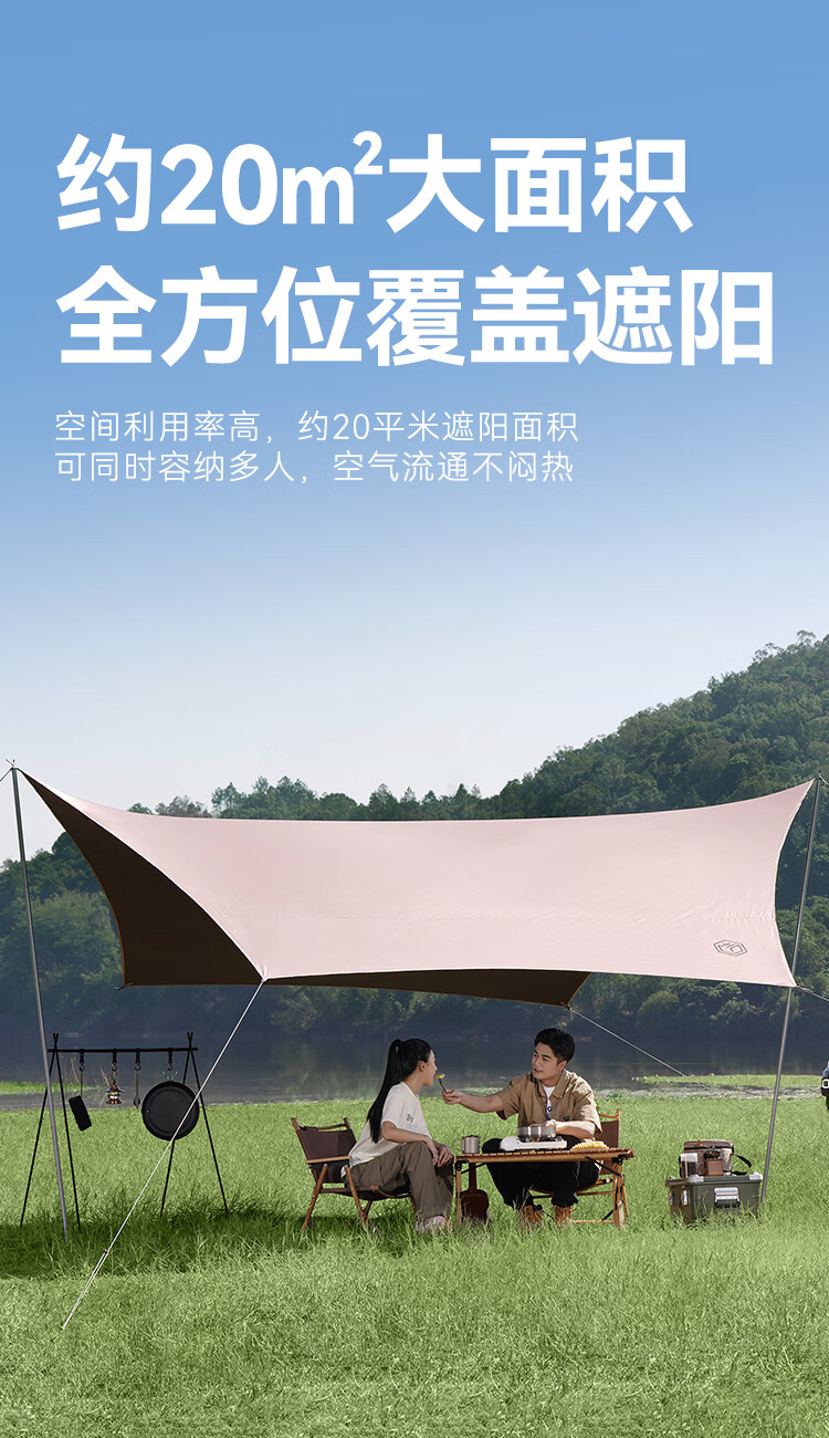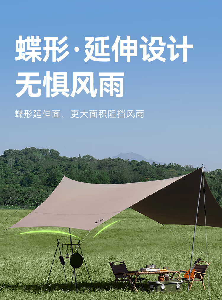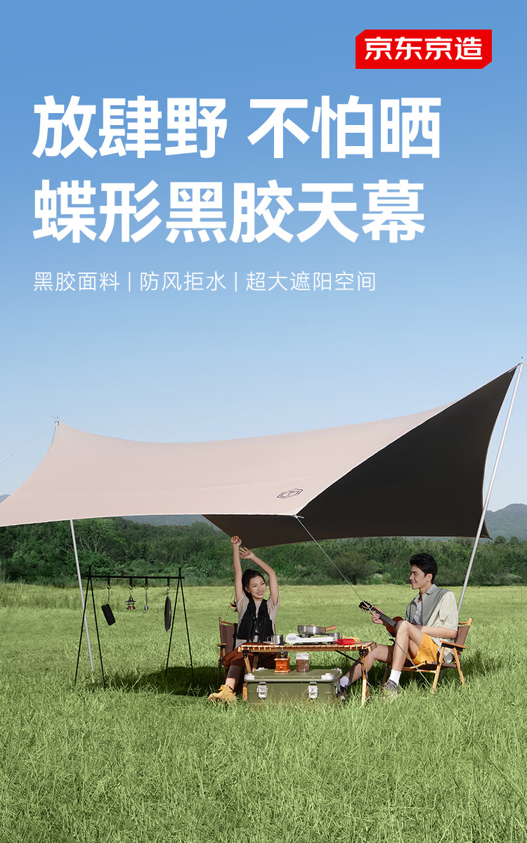 京东京造【6层黑胶真防晒】蝶形天幕20平户外露营装备遮阳防雨凉棚6-8人