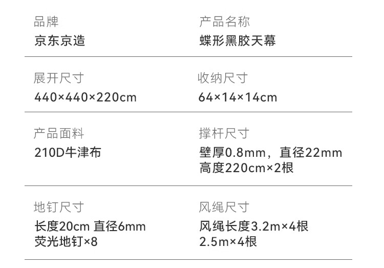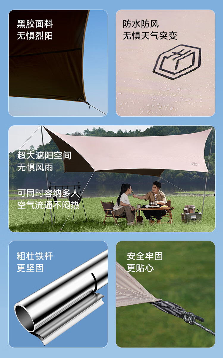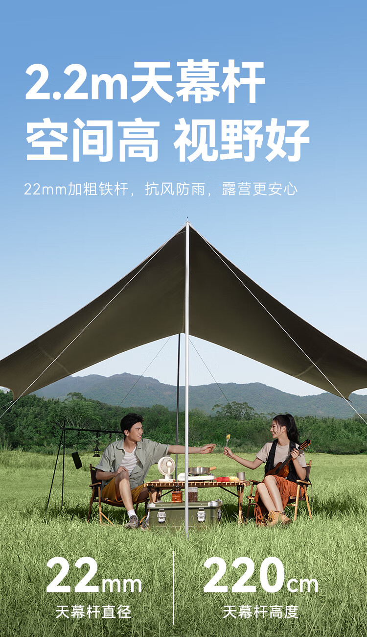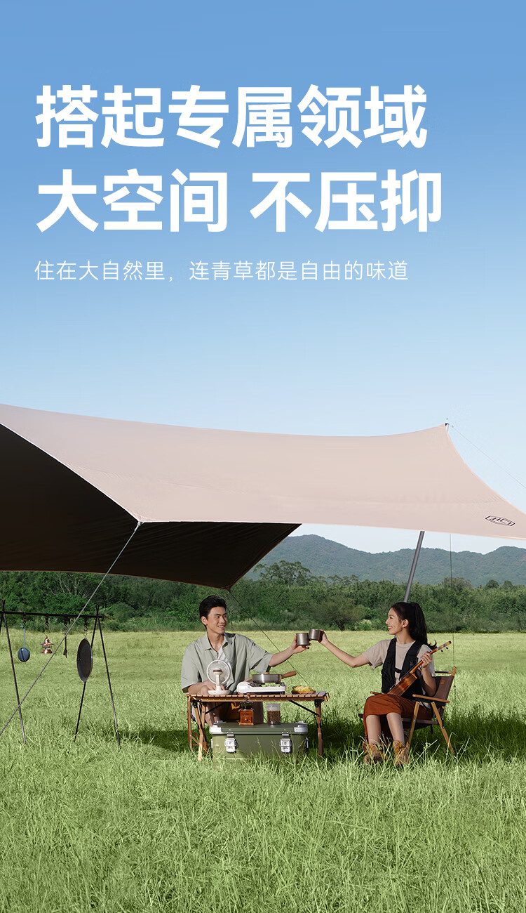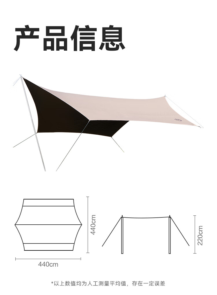 京东京造【6层黑胶真防晒】蝶形天幕20平户外露营装备遮阳防雨凉棚6-8人