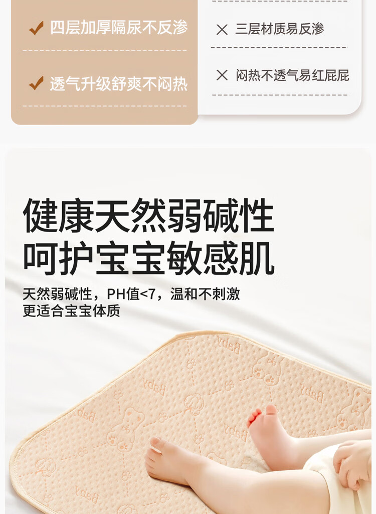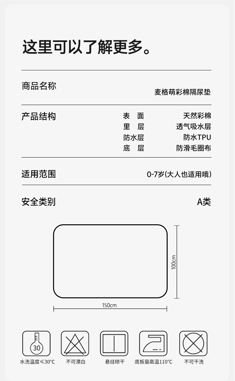 麦格萌隔尿垫婴儿童防水可洗透气大尺寸床单宝宝床垫护理垫100*150cm