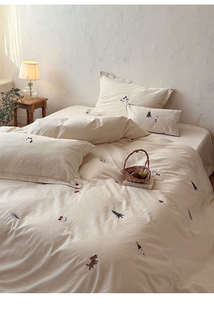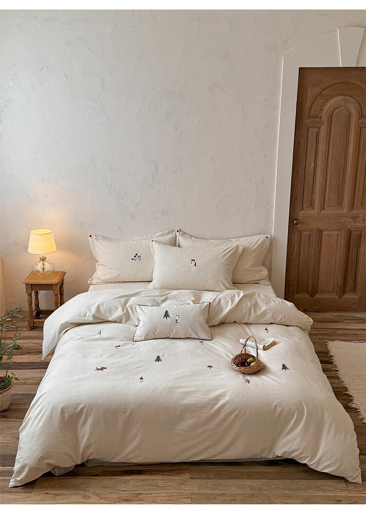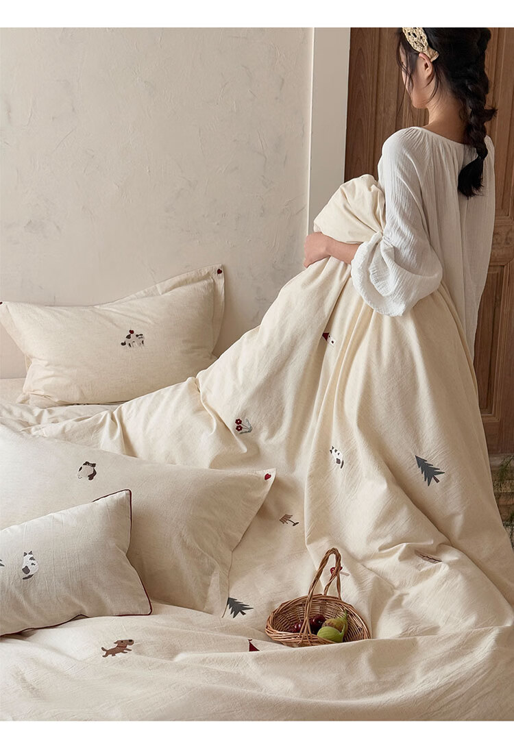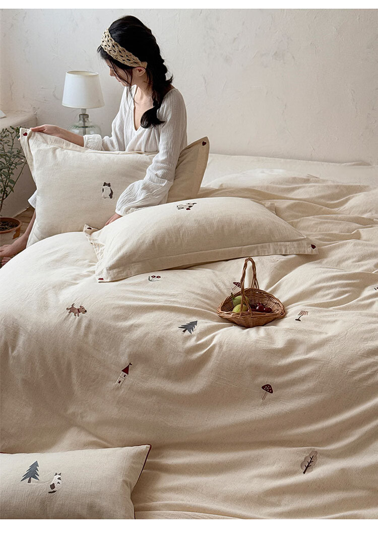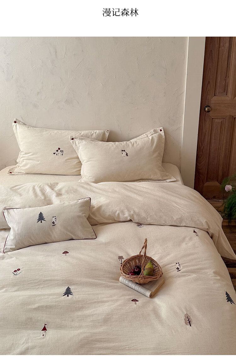 ROLAND LIVE春夏色织棉麻四件套精密刺绣被套四季透气家用简约风床上用品 LB 色织棉麻套件-漫记森林 1.2米床 床单款 【被套150*200cm】