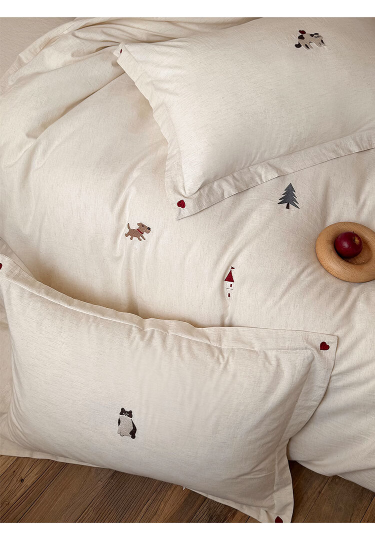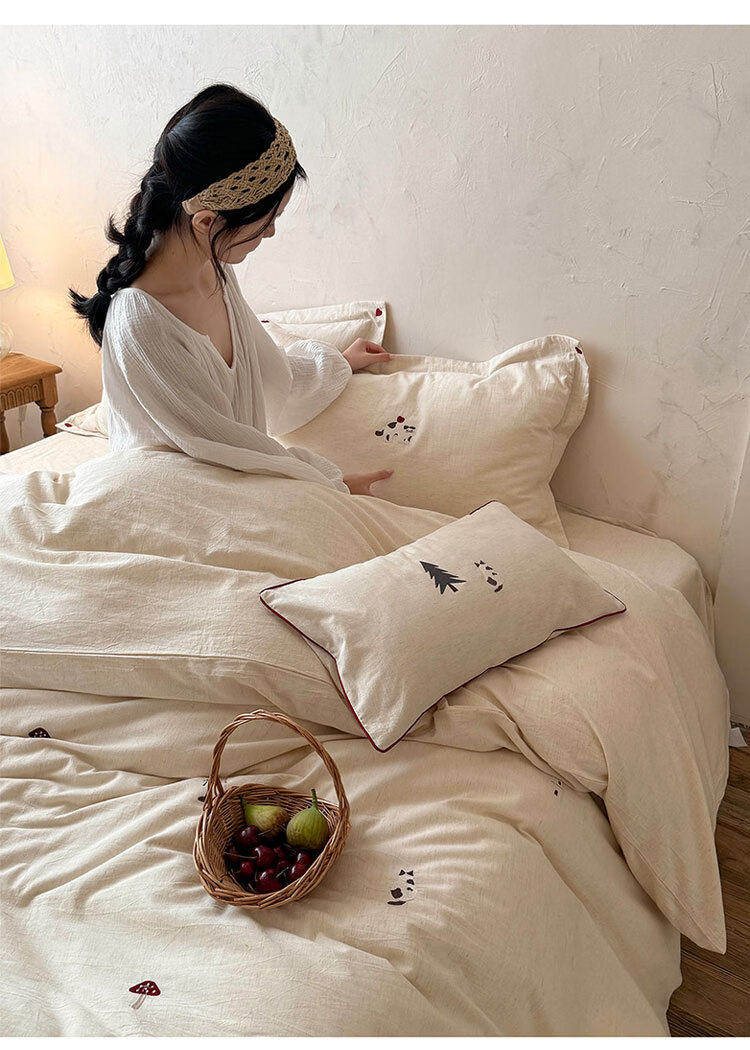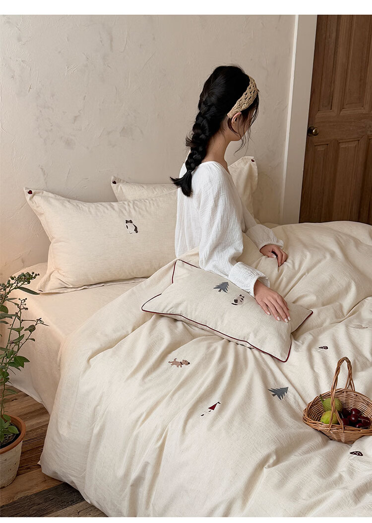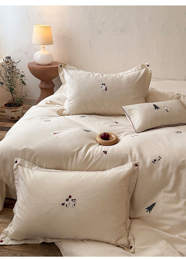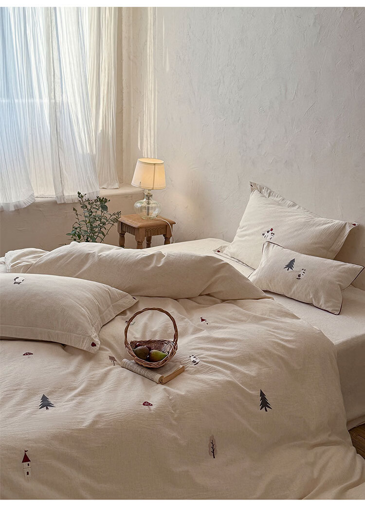 ROLAND LIVE春夏色织棉麻四件套精密刺绣被套四季透气家用简约风床上用品 LB 色织棉麻套件-漫记森林 1.2米床 床单款 【被套150*200cm】