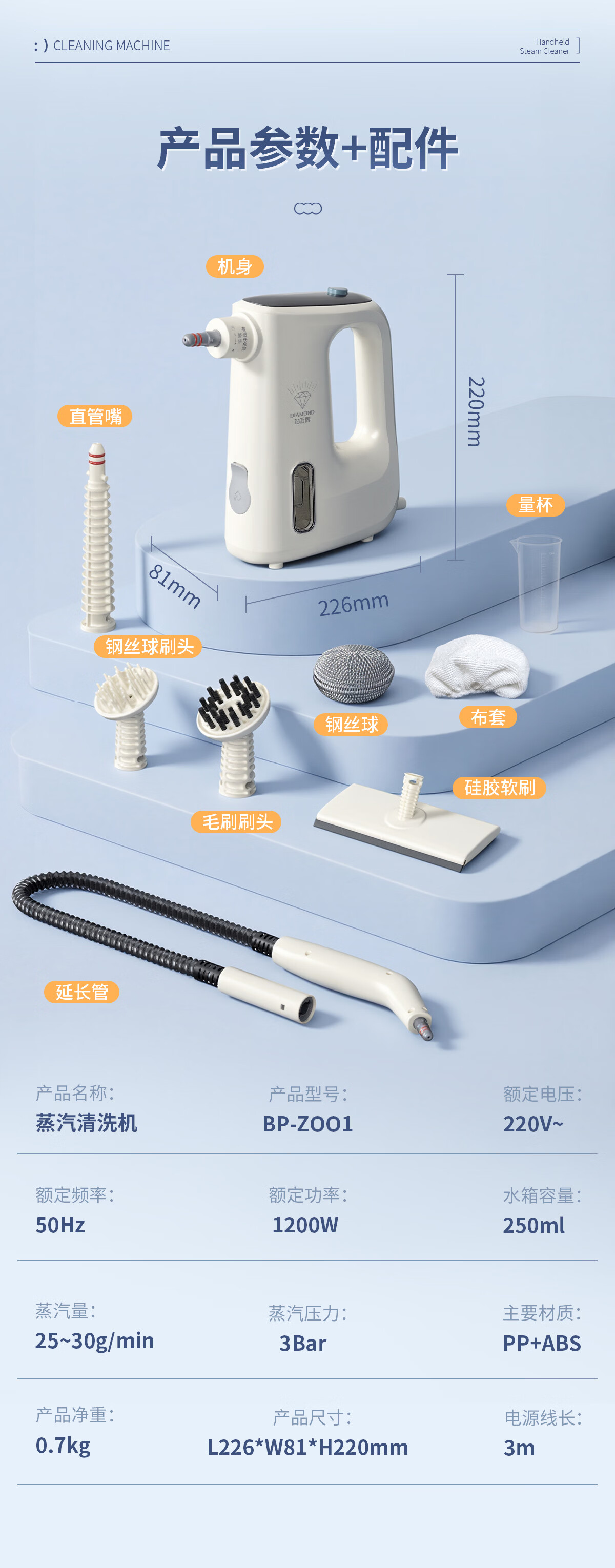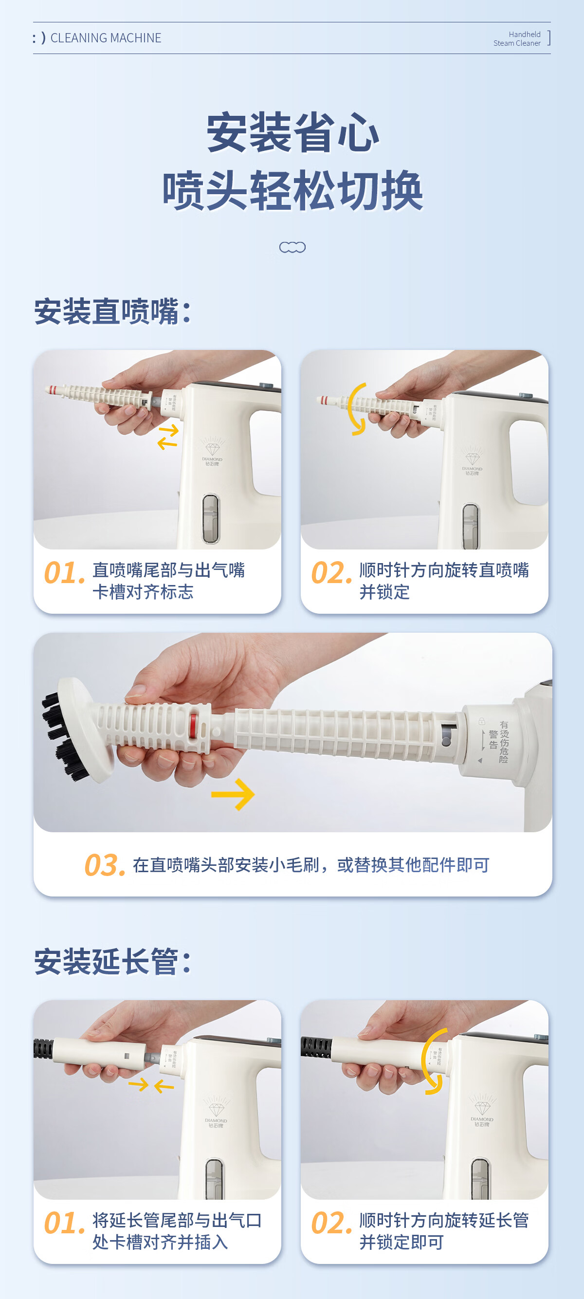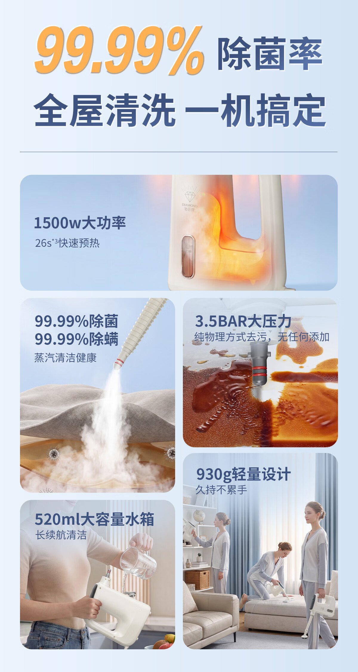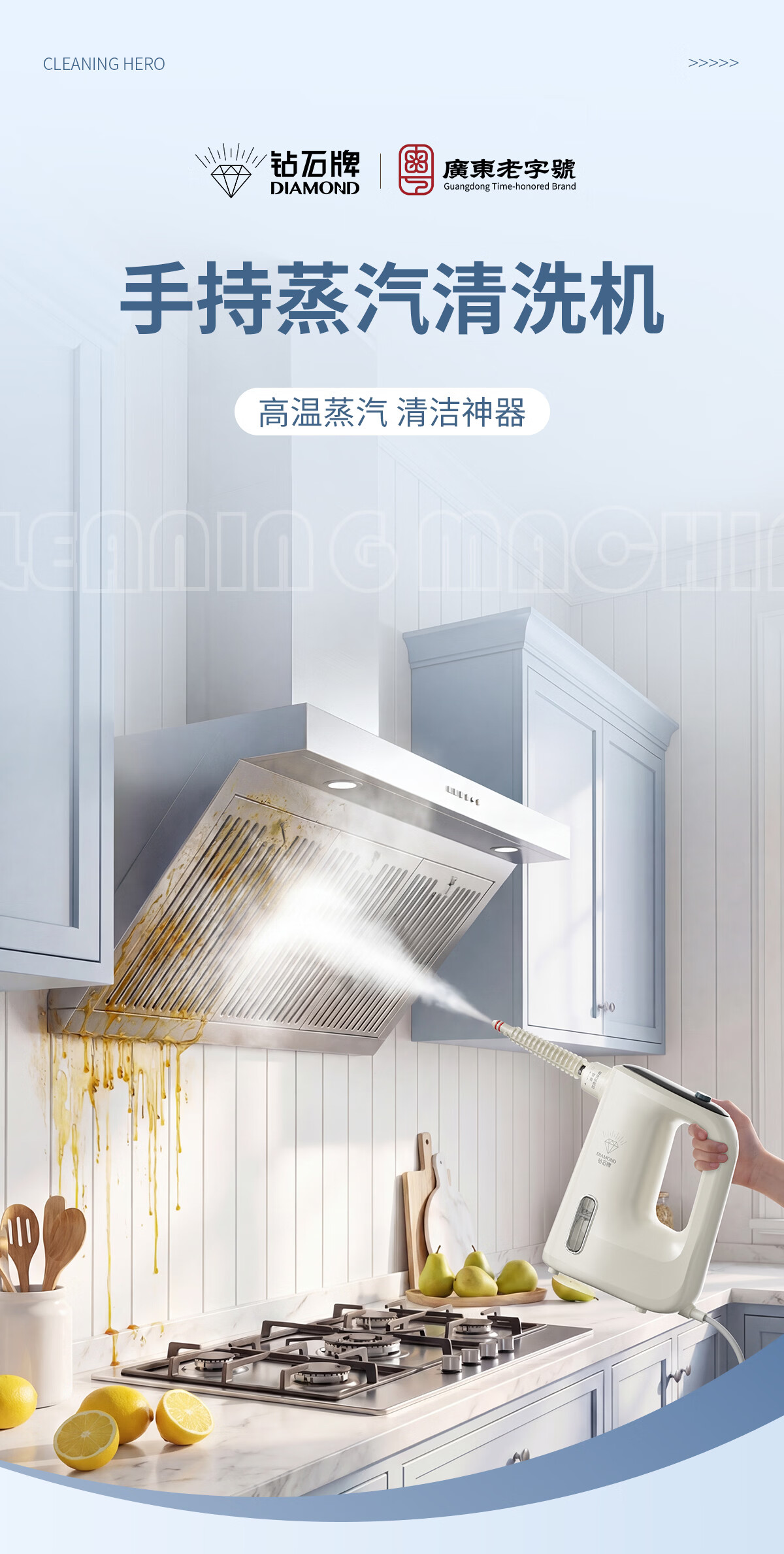 钻石牌蒸汽清洁机家用高温高压便携式杀菌厨房油烟机空调多功能清洗机 高温蒸汽清洗机【520ml大水箱】