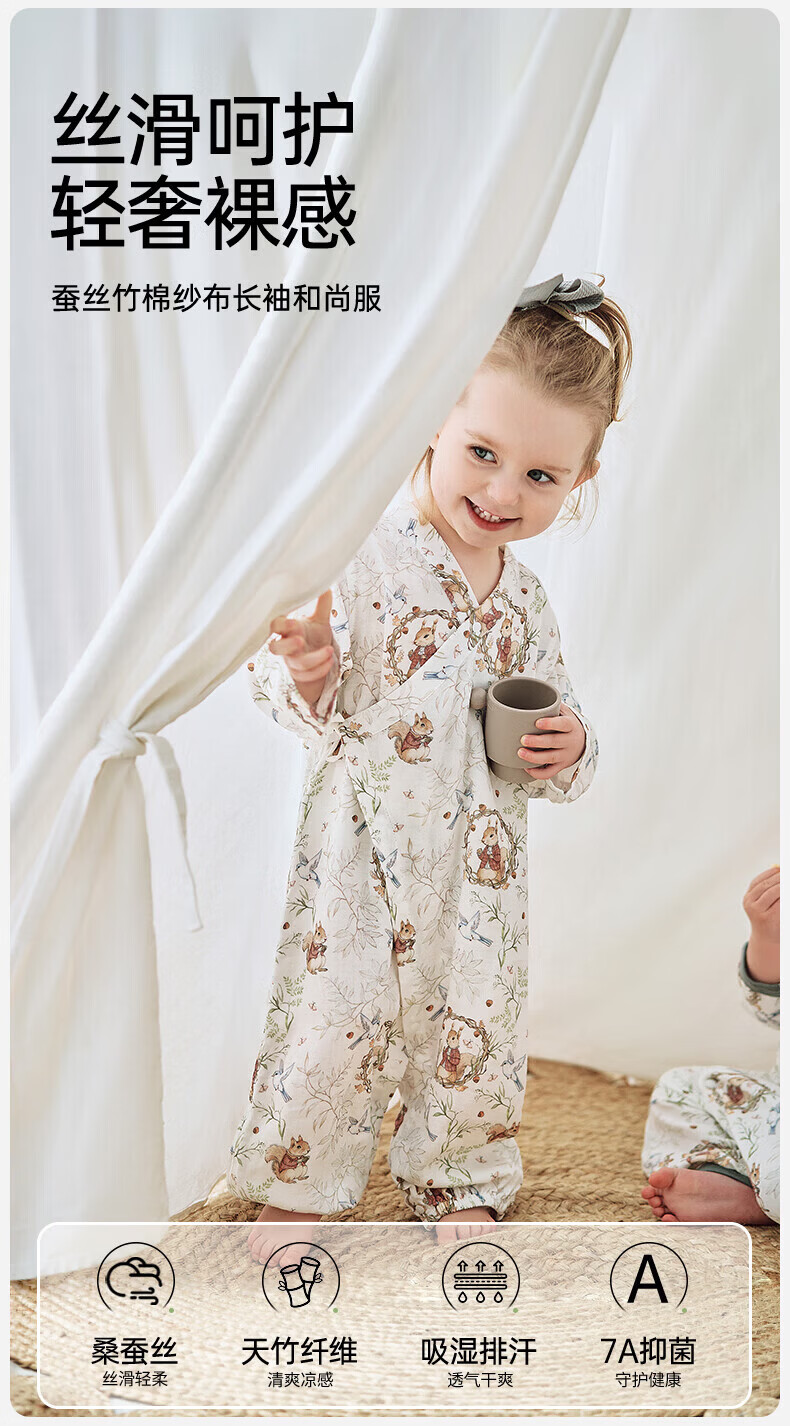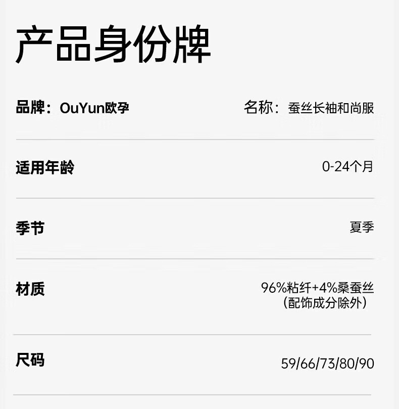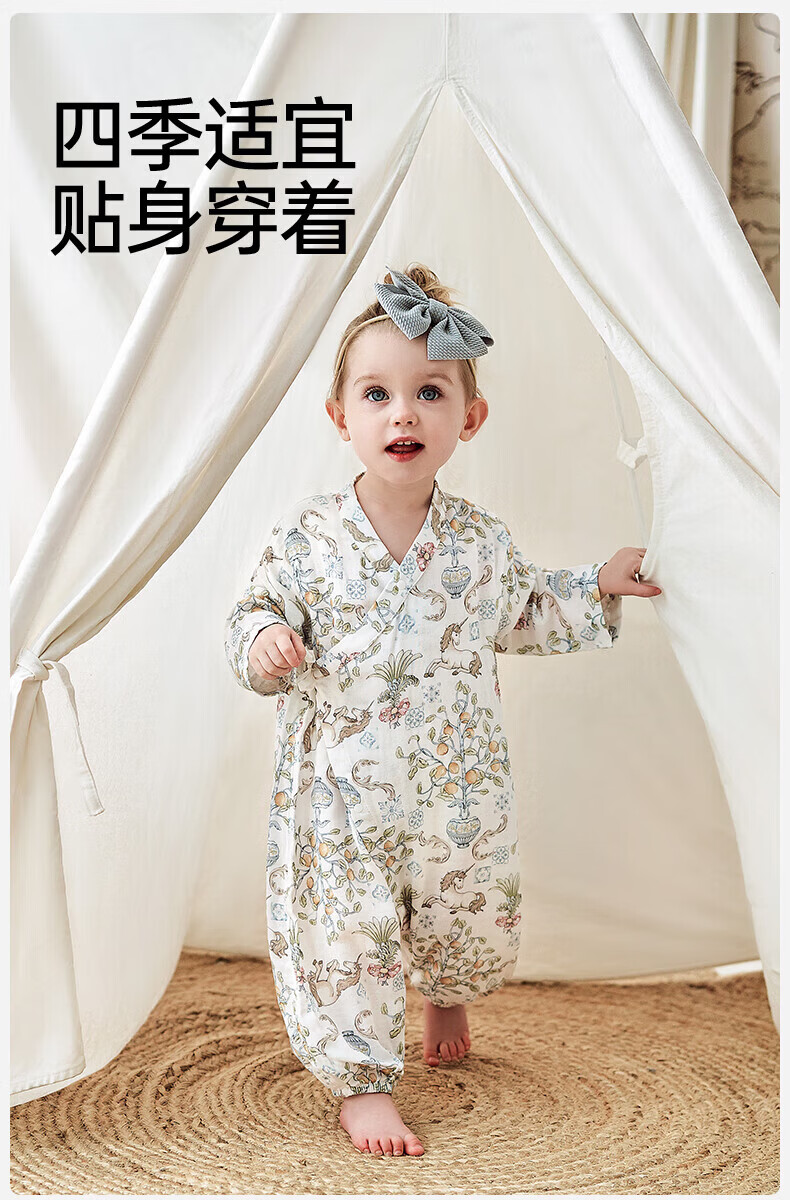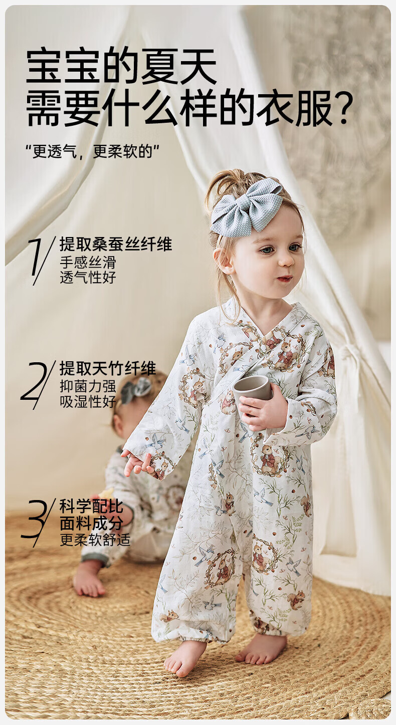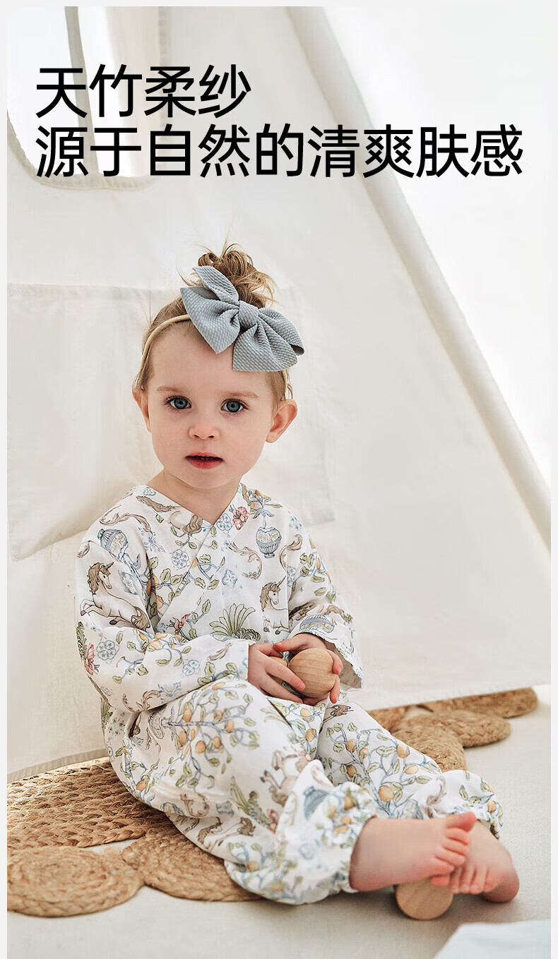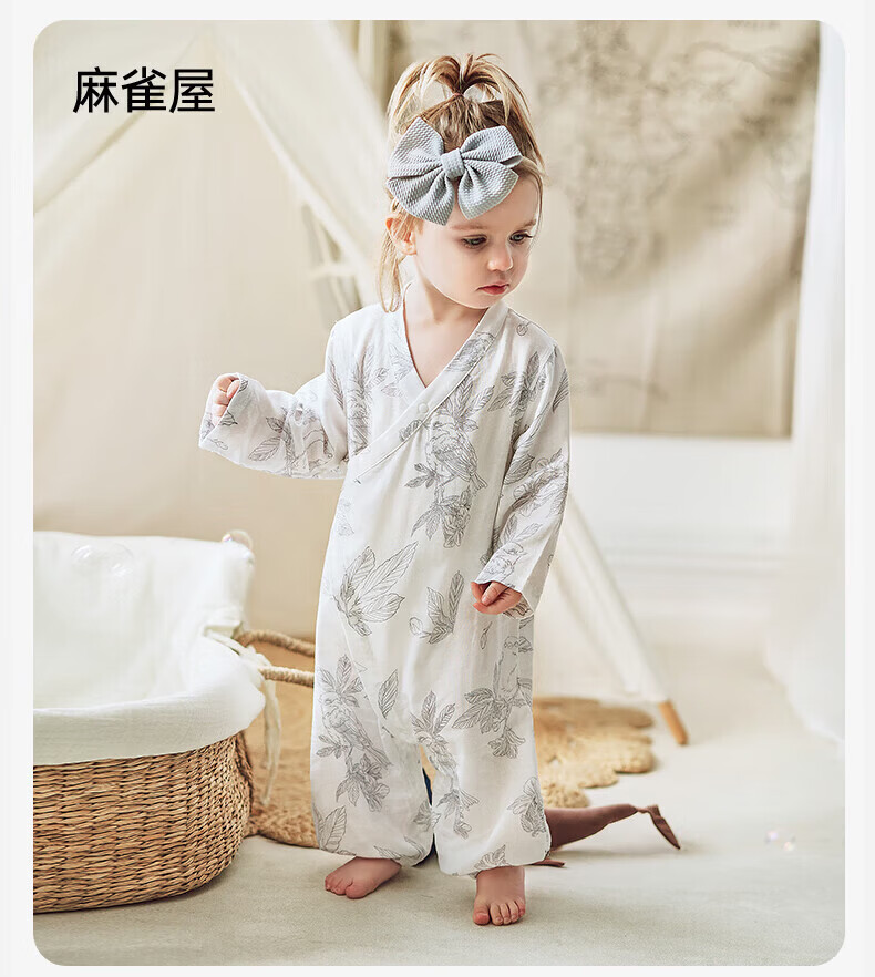 欧孕(OUYUN)婴儿连体衣夏季宝宝衣服薄款桑蚕丝和尚服长袖哈衣爬服空调服 麻雀屋【蚕丝竹棉-柔软透气】 90cm