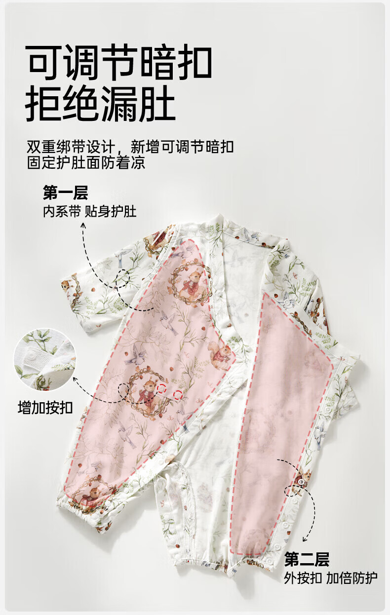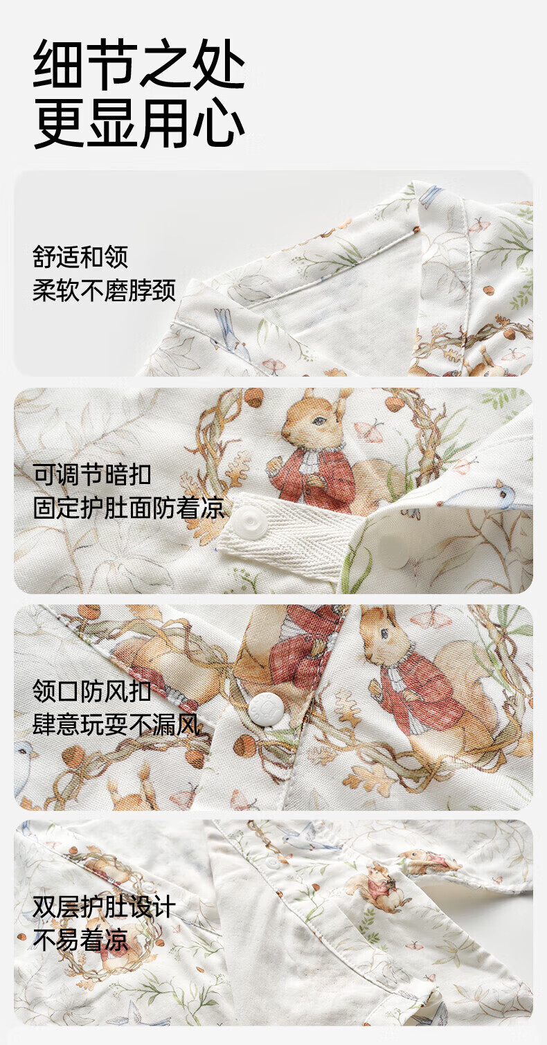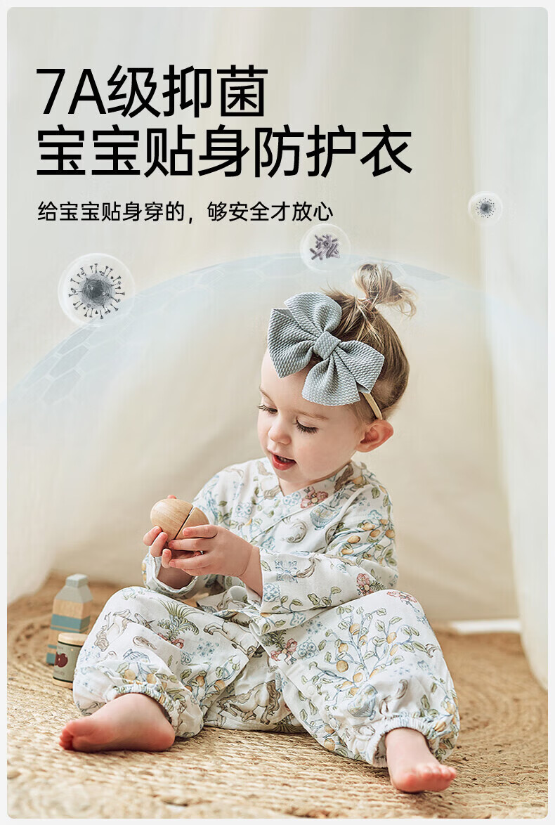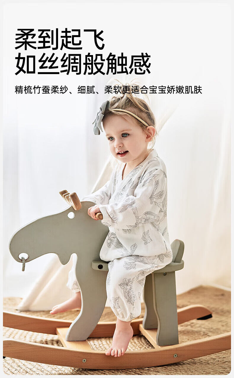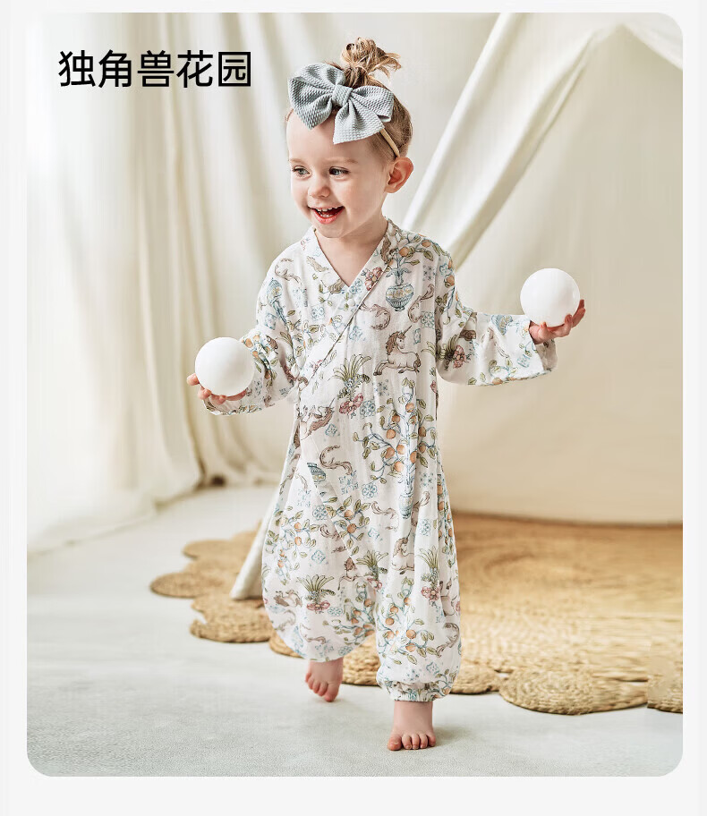 欧孕(OUYUN)婴儿连体衣夏季宝宝衣服薄款桑蚕丝和尚服长袖哈衣爬服空调服 麻雀屋【蚕丝竹棉-柔软透气】 90cm