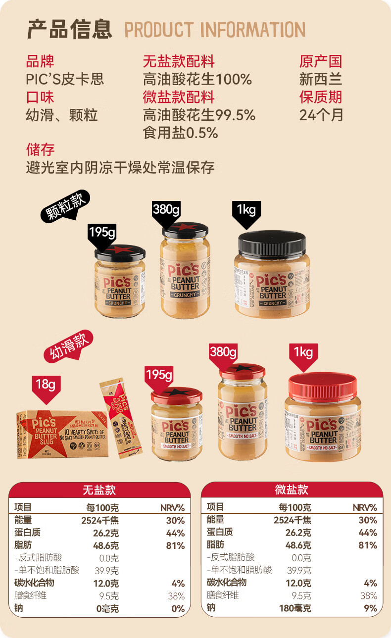 皮卡思花生酱380g 有盐颗粒 微盐无添加糖新西兰进口火锅蘸料宝宝拌面酱