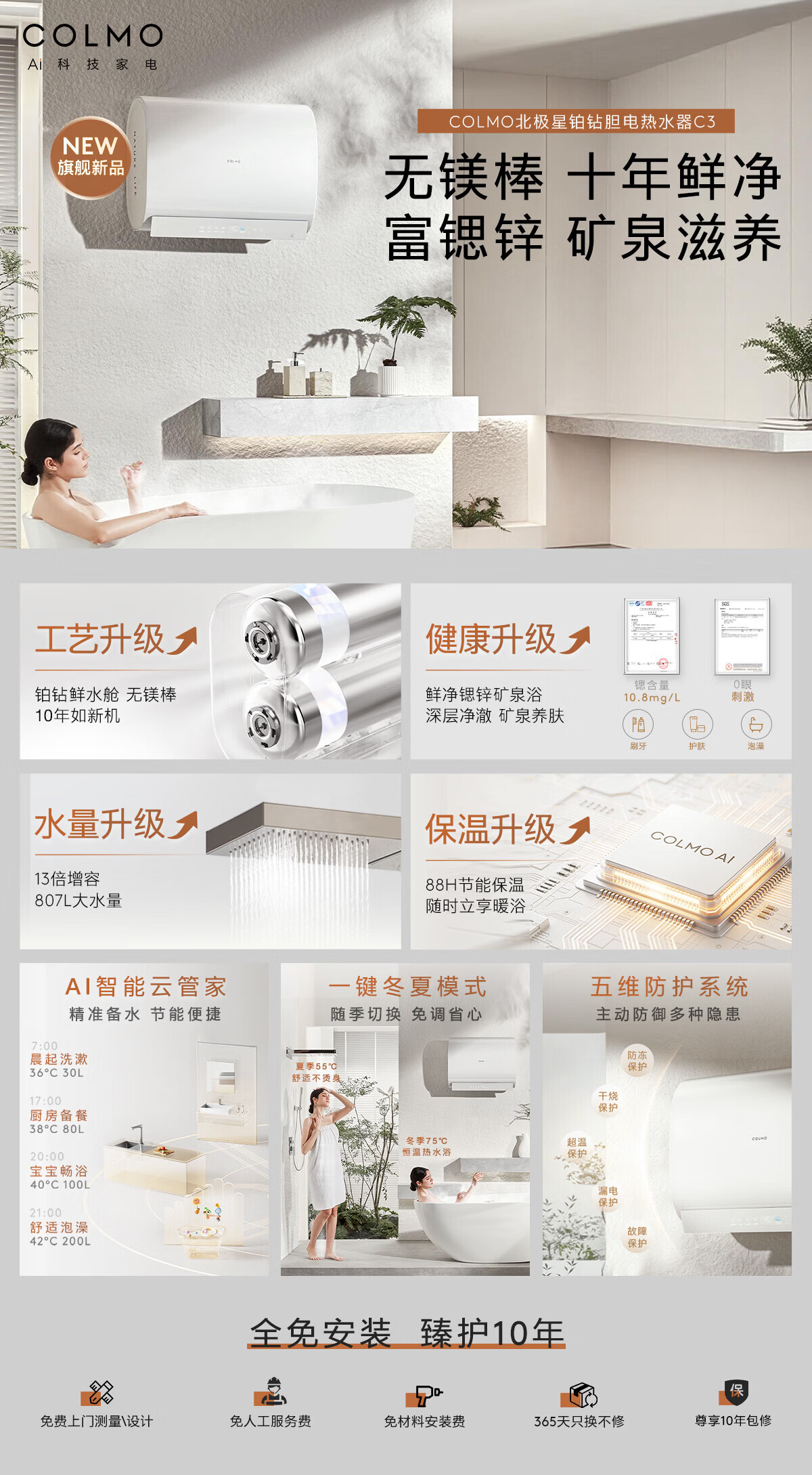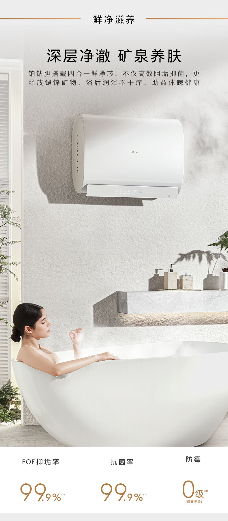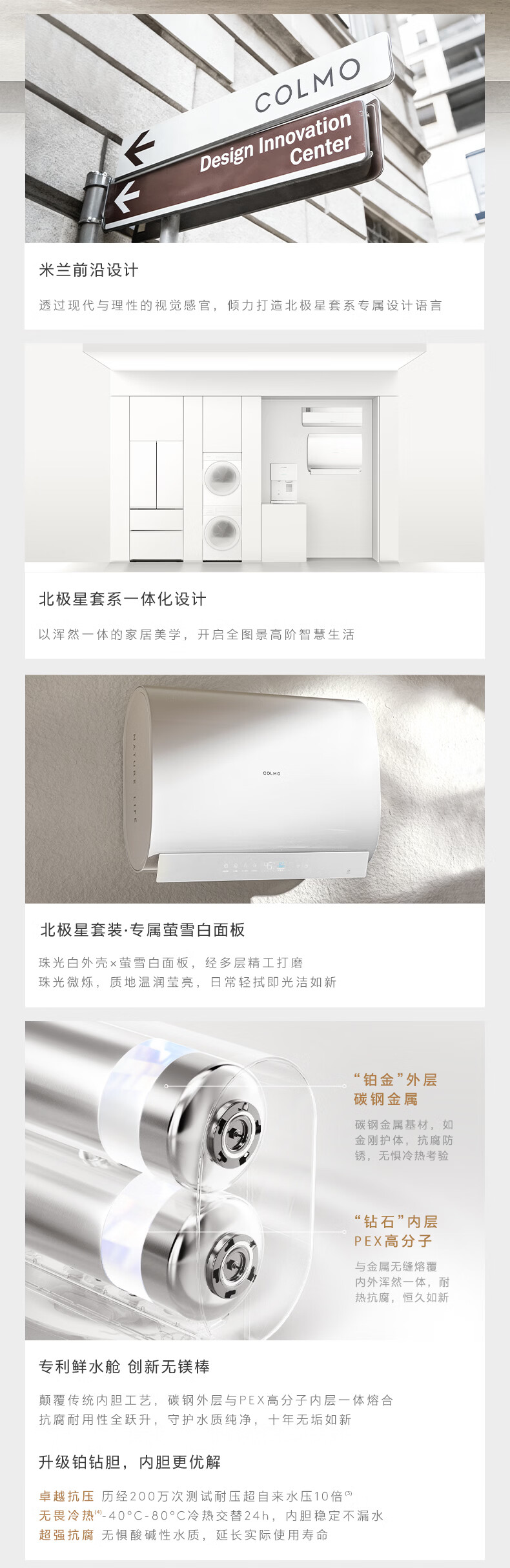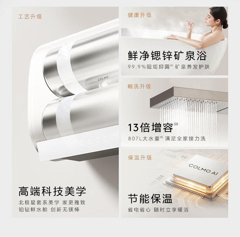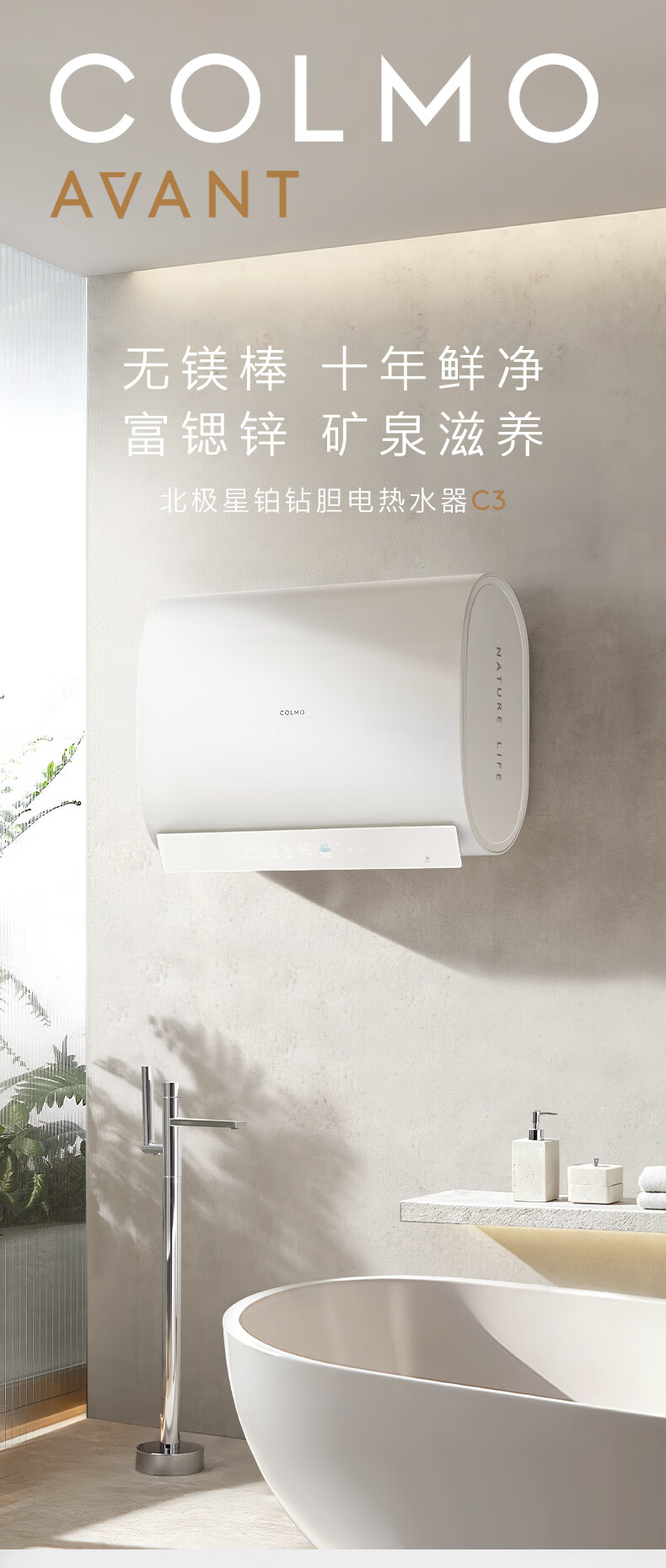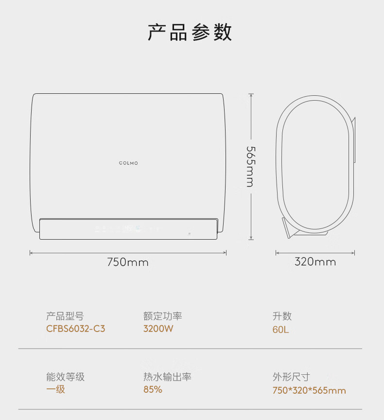 COLMO【重磅新品】北极星铂钻胆电热水器C3 60L扁桶家用速热热水器 十年守护鲜水舱 无镁棒锶锌矿泉浴 60L 3200W 北极星电热水器C3