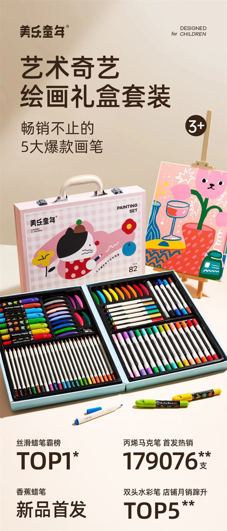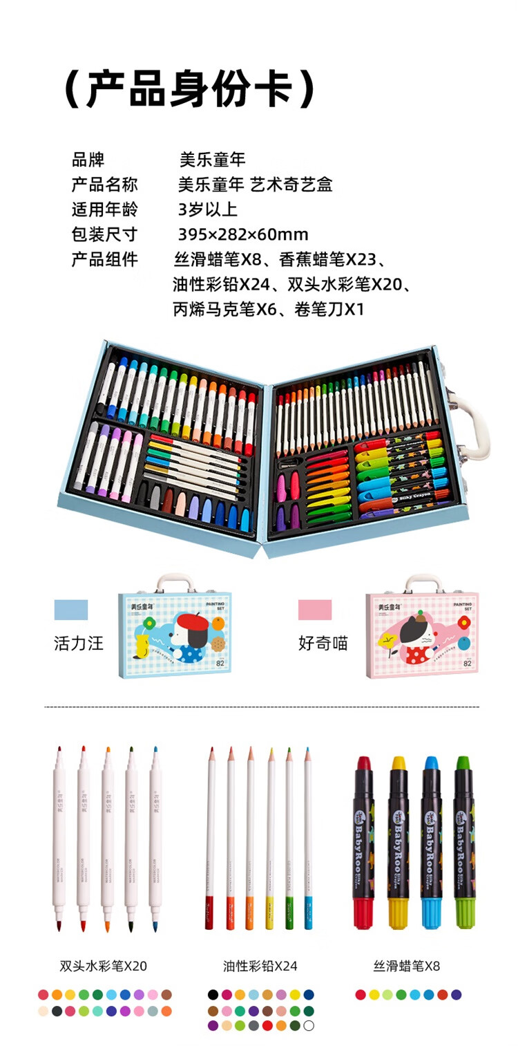 美乐童年儿童画笔绘画画套装马克笔水彩笔3-6岁男孩生日礼物礼盒