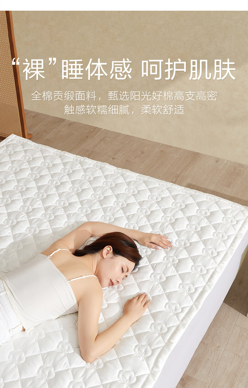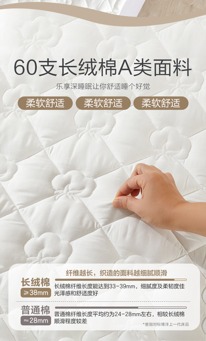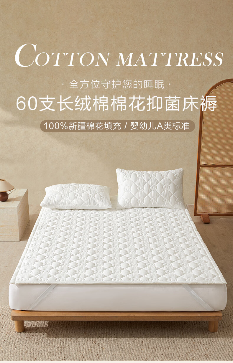 博洋(BEYOND)全棉棉花夹棉加厚床罩单双人床笠可水洗席梦思保护榻榻米垫子褥子 100支长绒棉可水洗棉花床褥—云絮 150*200cm