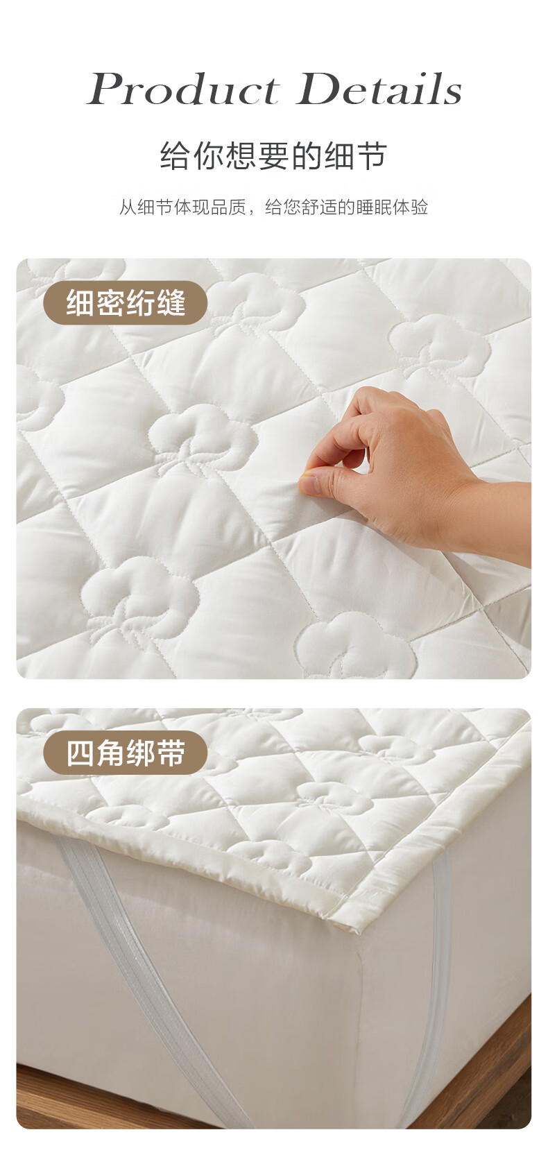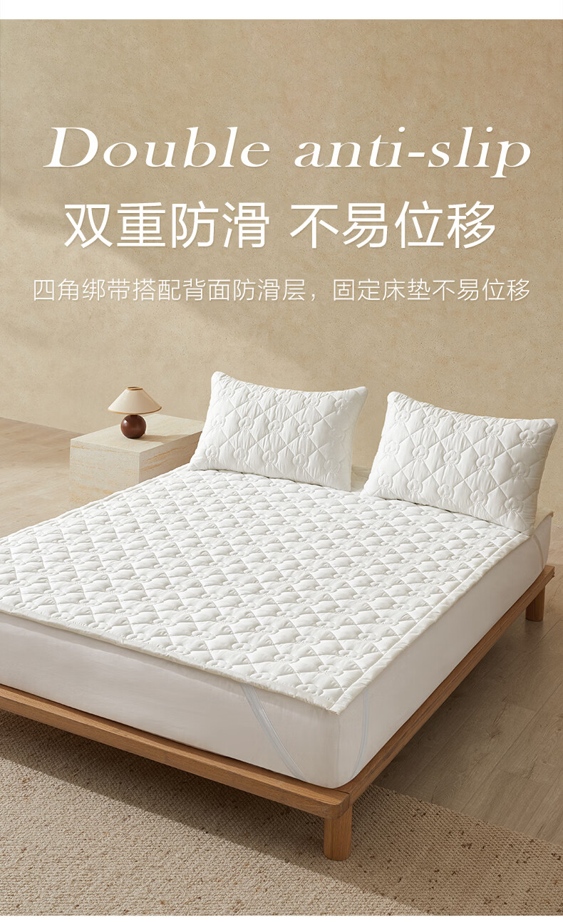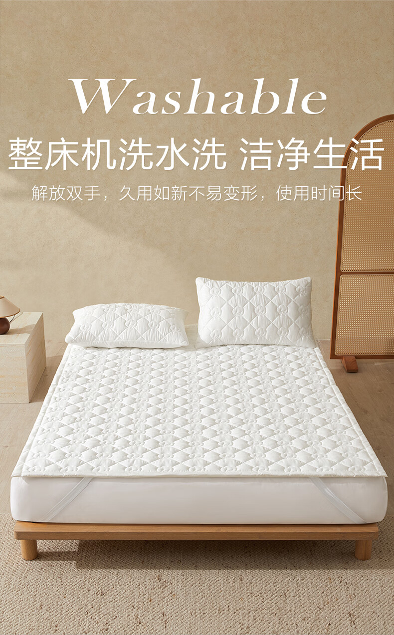 博洋(BEYOND)全棉棉花夹棉加厚床罩单双人床笠可水洗席梦思保护榻榻米垫子褥子 100支长绒棉可水洗棉花床褥—云絮 150*200cm