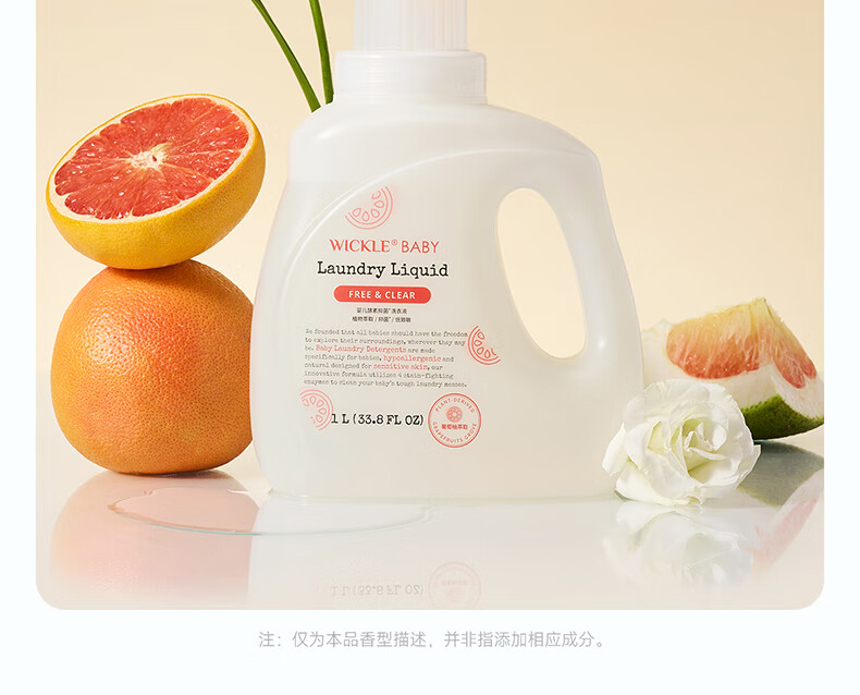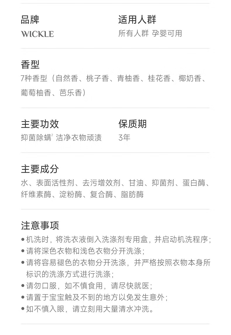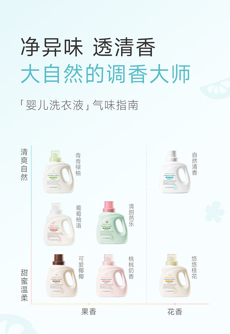 WICKLE婴儿洗衣液新生婴儿专用酵素洗衣液1瓶+6袋组合装 4L(自然香型)