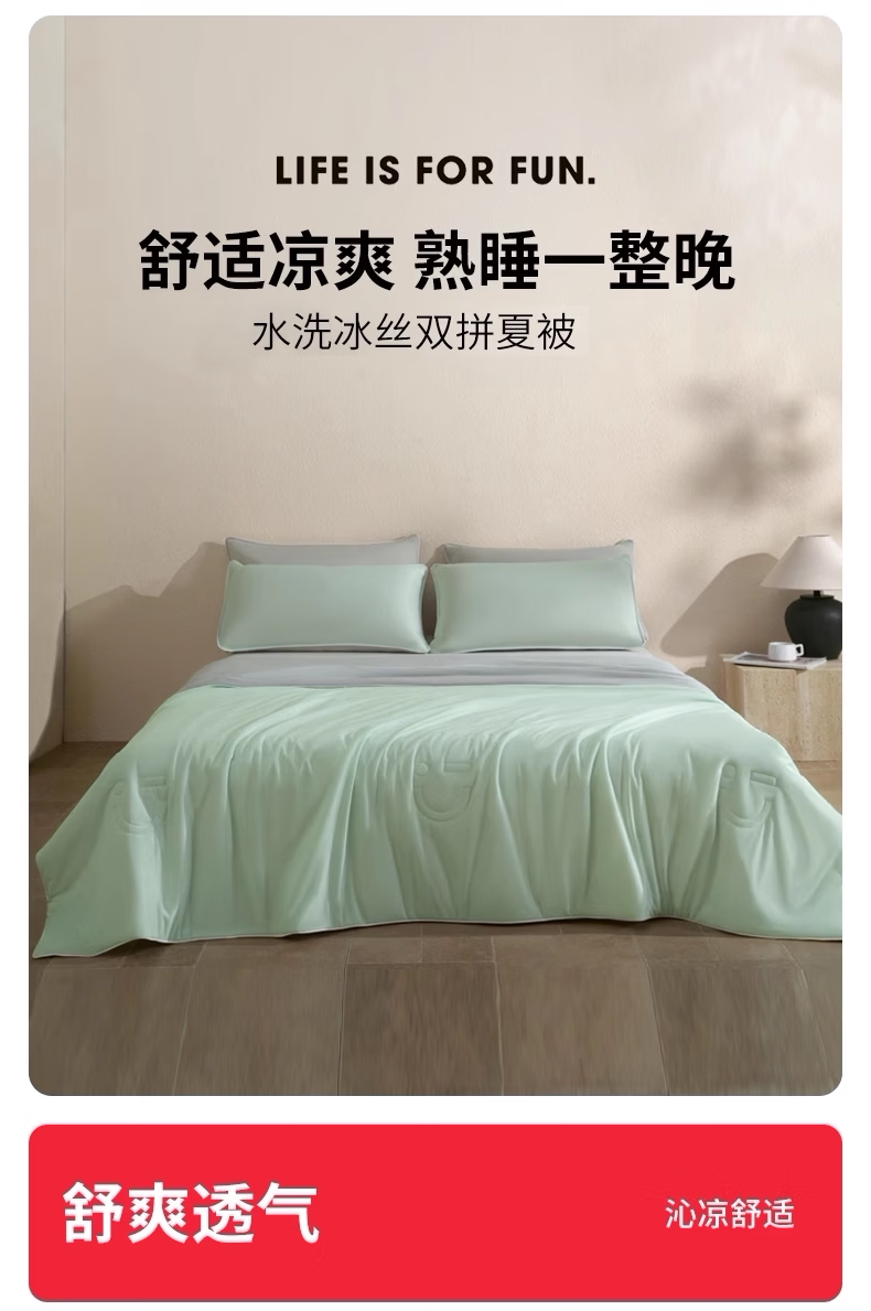 名创优品(MINISO)冰丝夏凉被空调被 夏季宿舍单双人薄被子夏天被芯被褥 双拼-绿拼灰 150x200cm单夏被