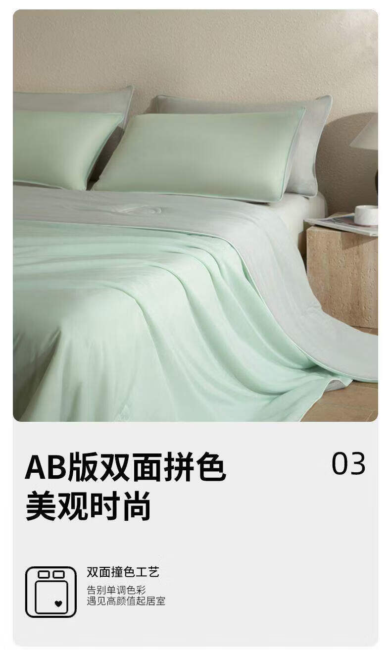 水星家纺被子夏凉被 空调被可机洗凉感天丝棉夏被 A类夏被 植愈舒爽【60S莱赛尔纤维/A类抑菌】绿 200cm*230cm
