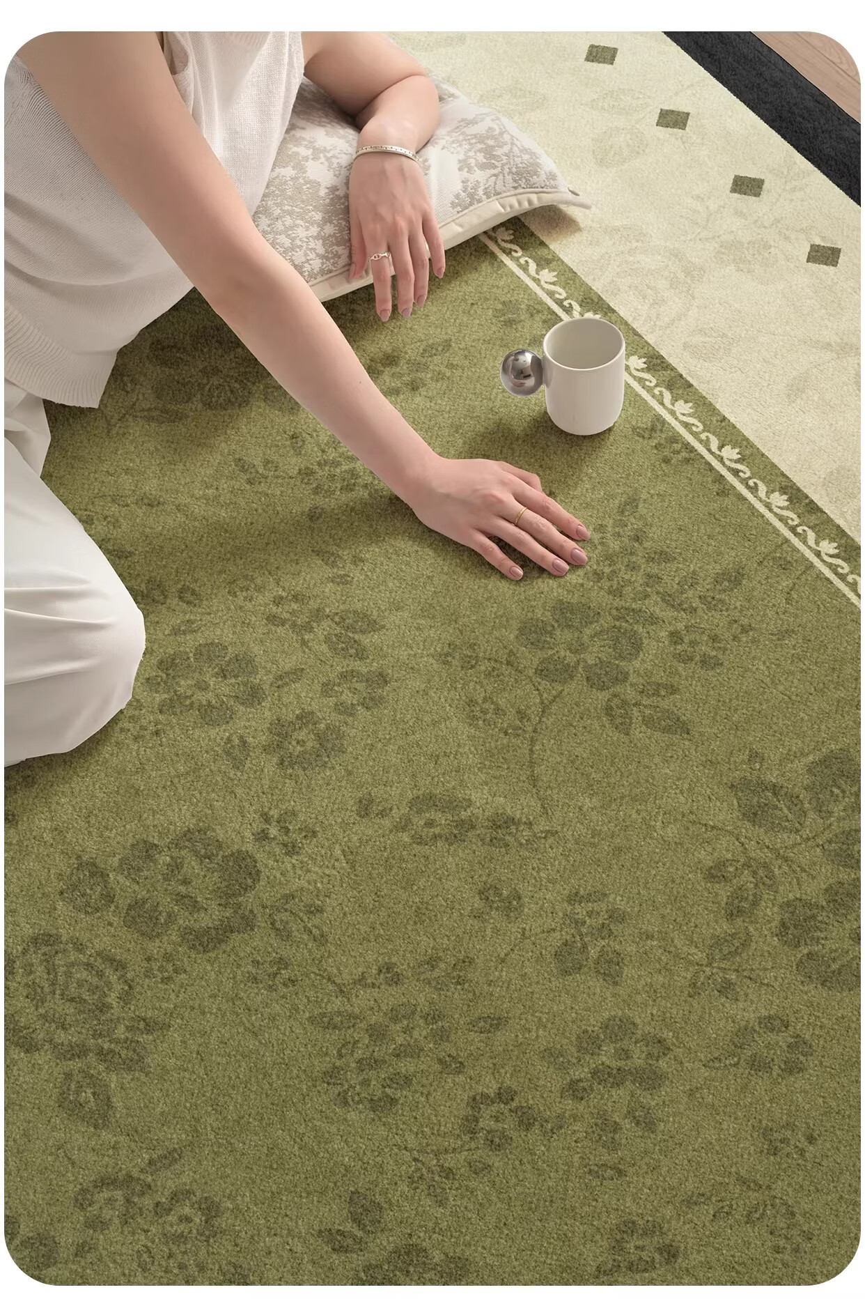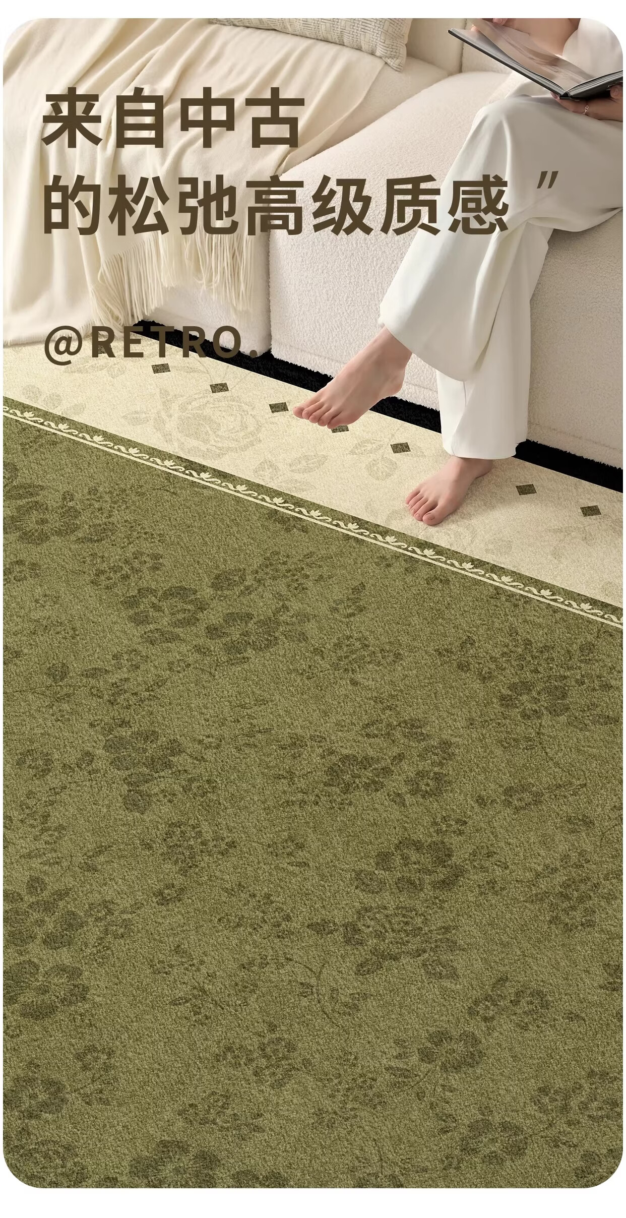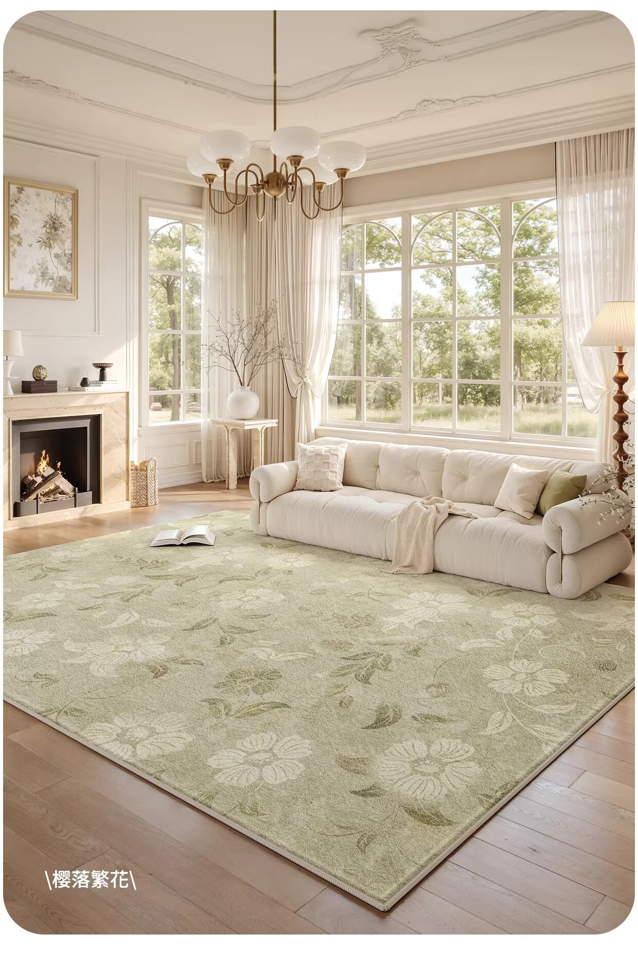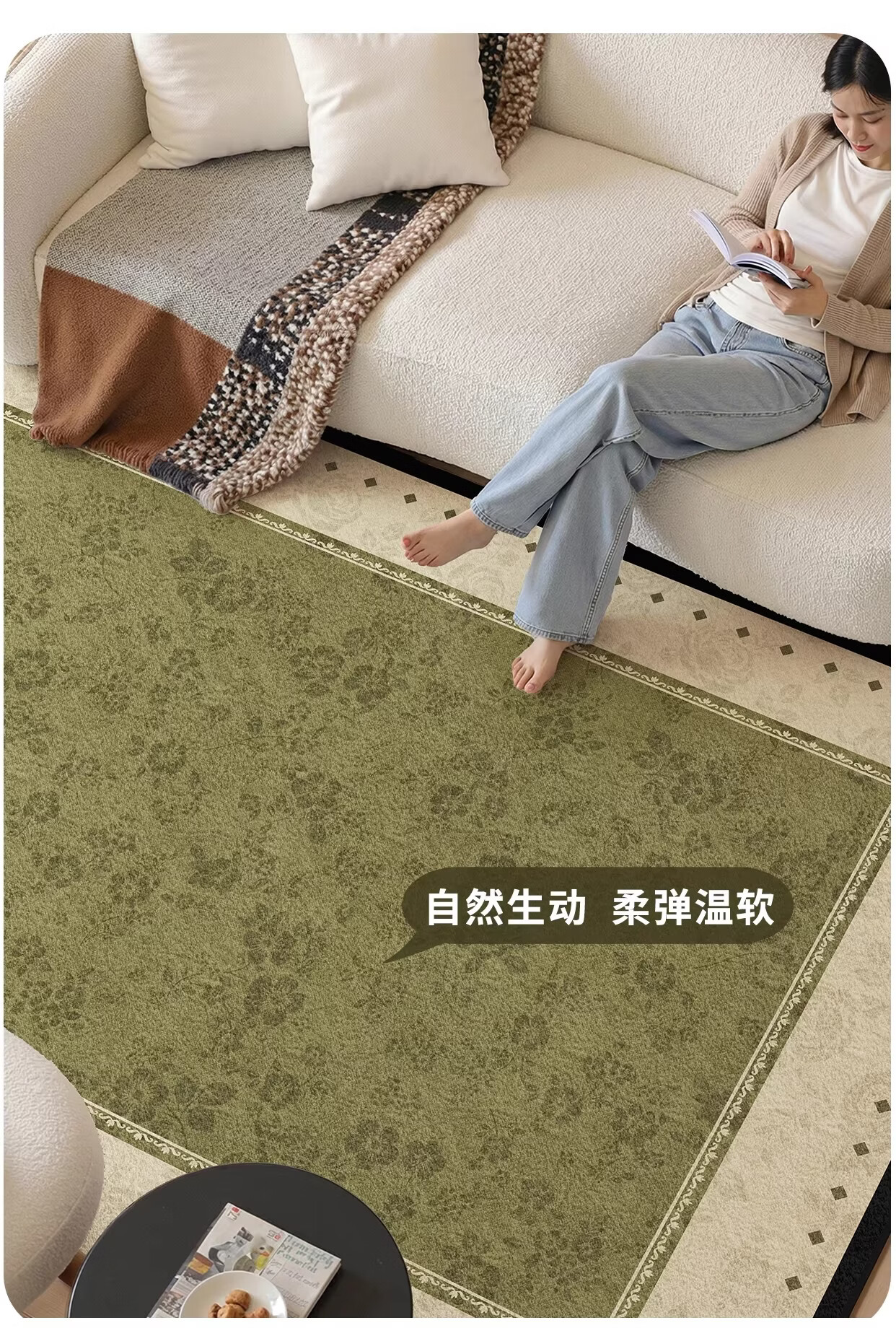 Y U-LIVE地毯客厅绿色中古风2026新款复古免洗可擦轻奢高级感沙发卧室地垫 S仿羊绒-樱落繁花 定制请联系客服【享优惠】