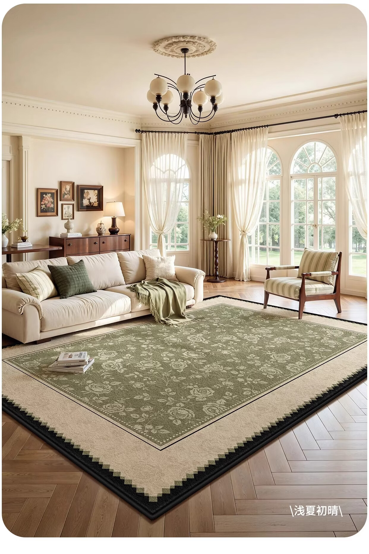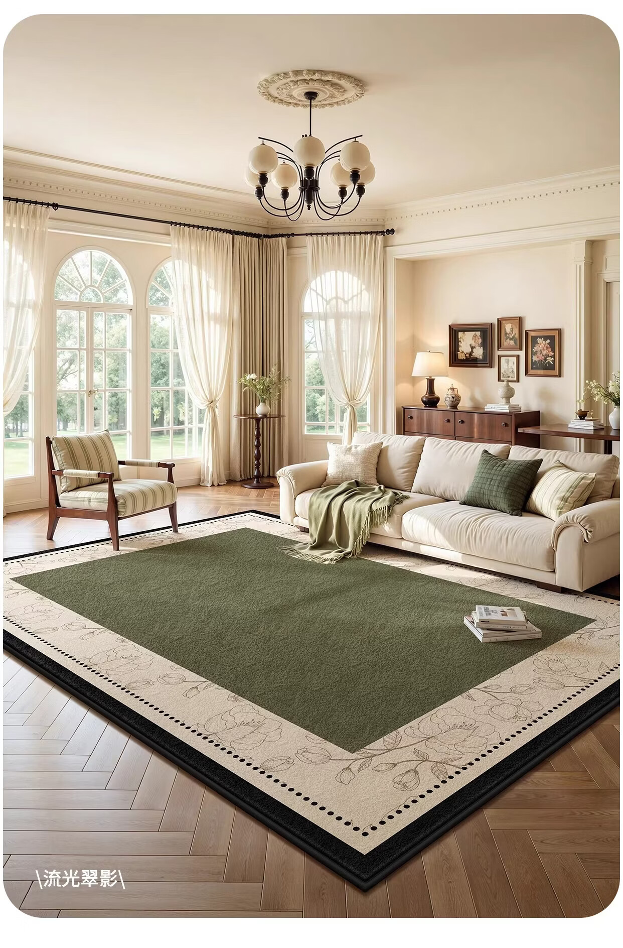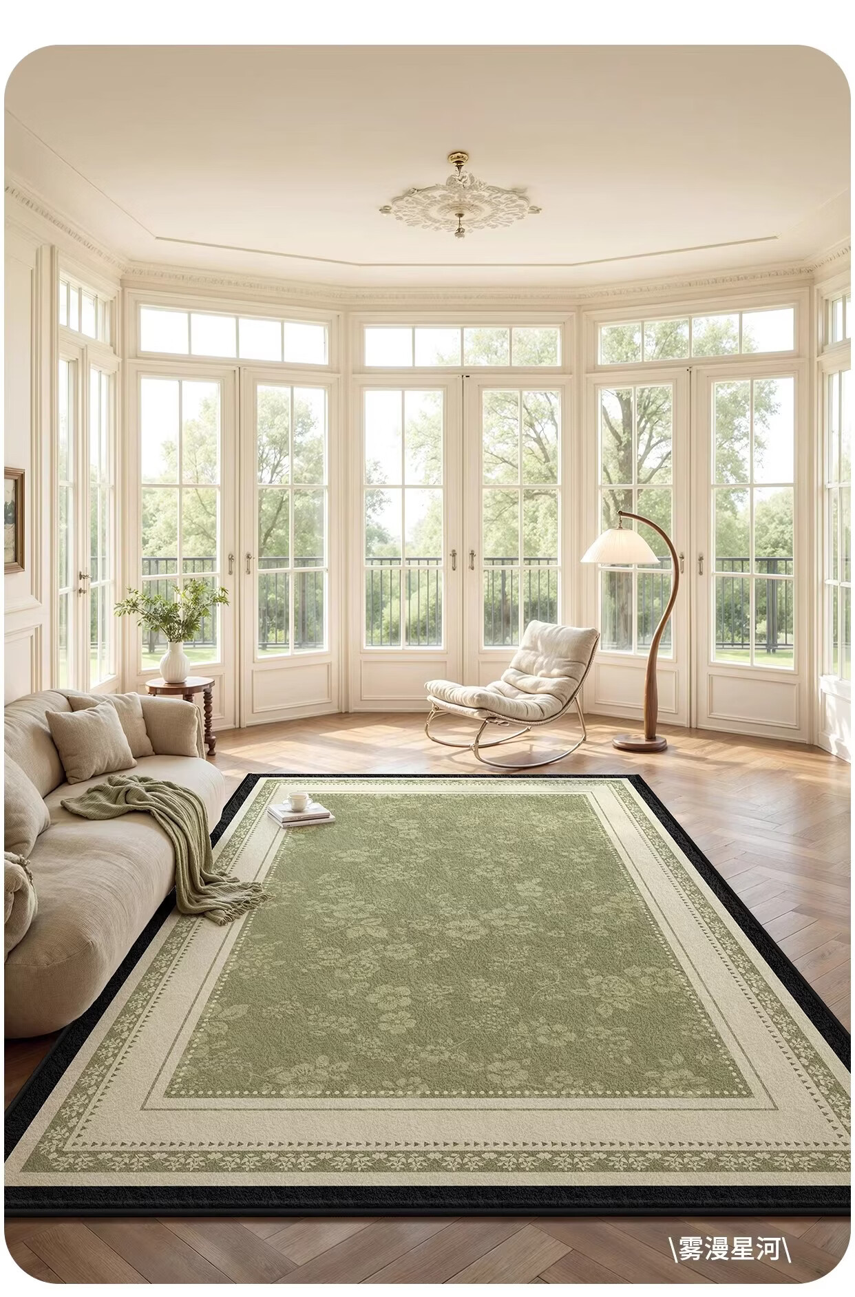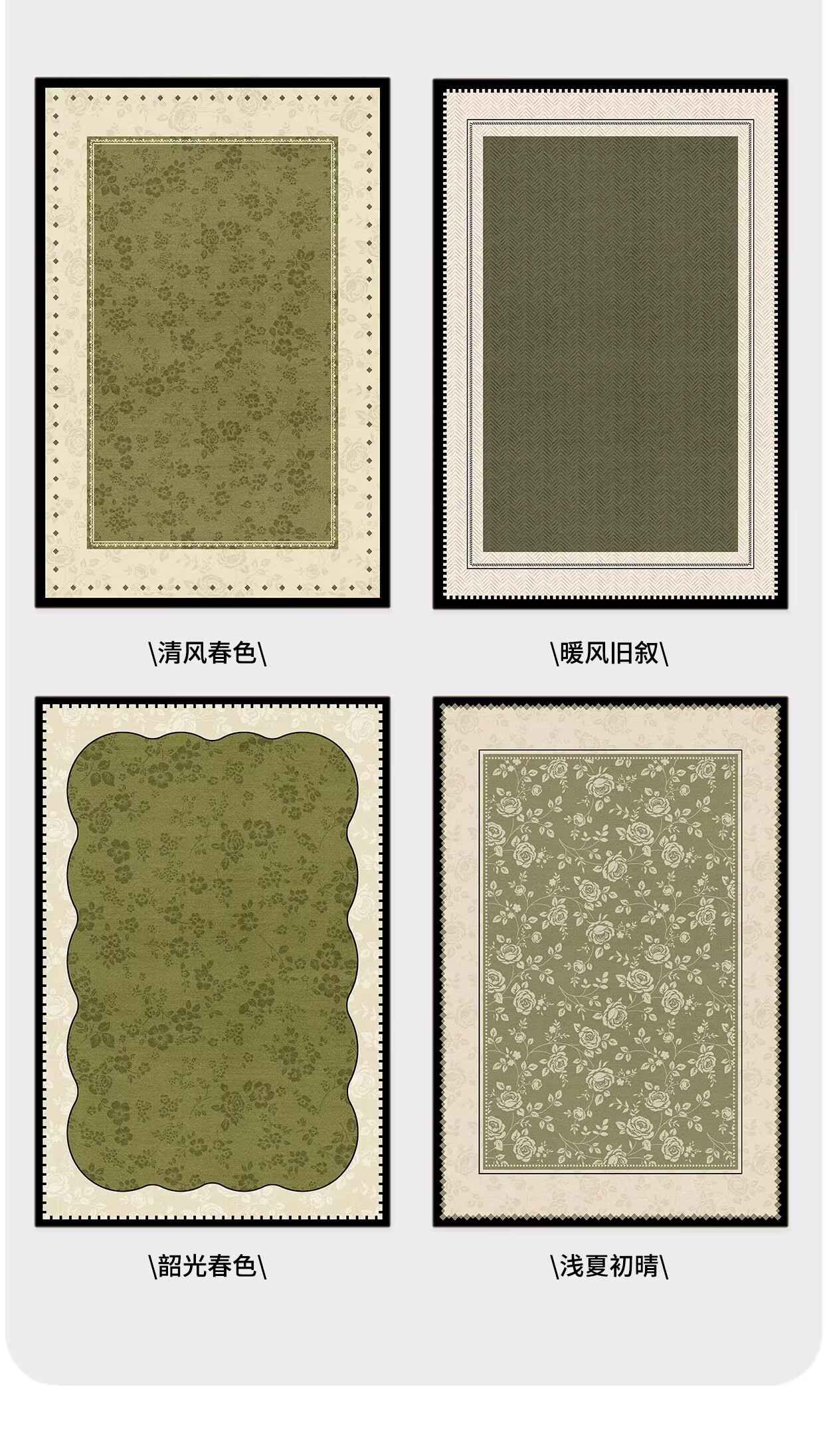Y U-LIVE地毯客厅绿色中古风2026新款复古免洗可擦轻奢高级感沙发卧室地垫 S仿羊绒-樱落繁花 定制请联系客服【享优惠】
