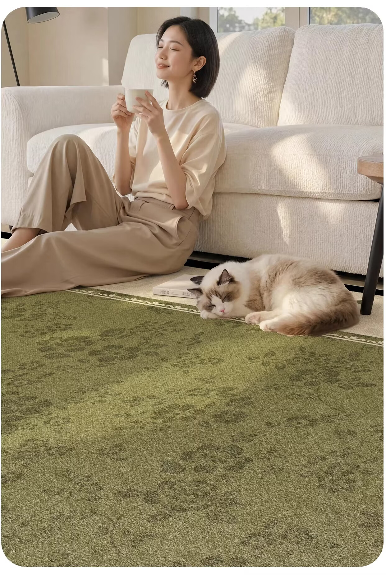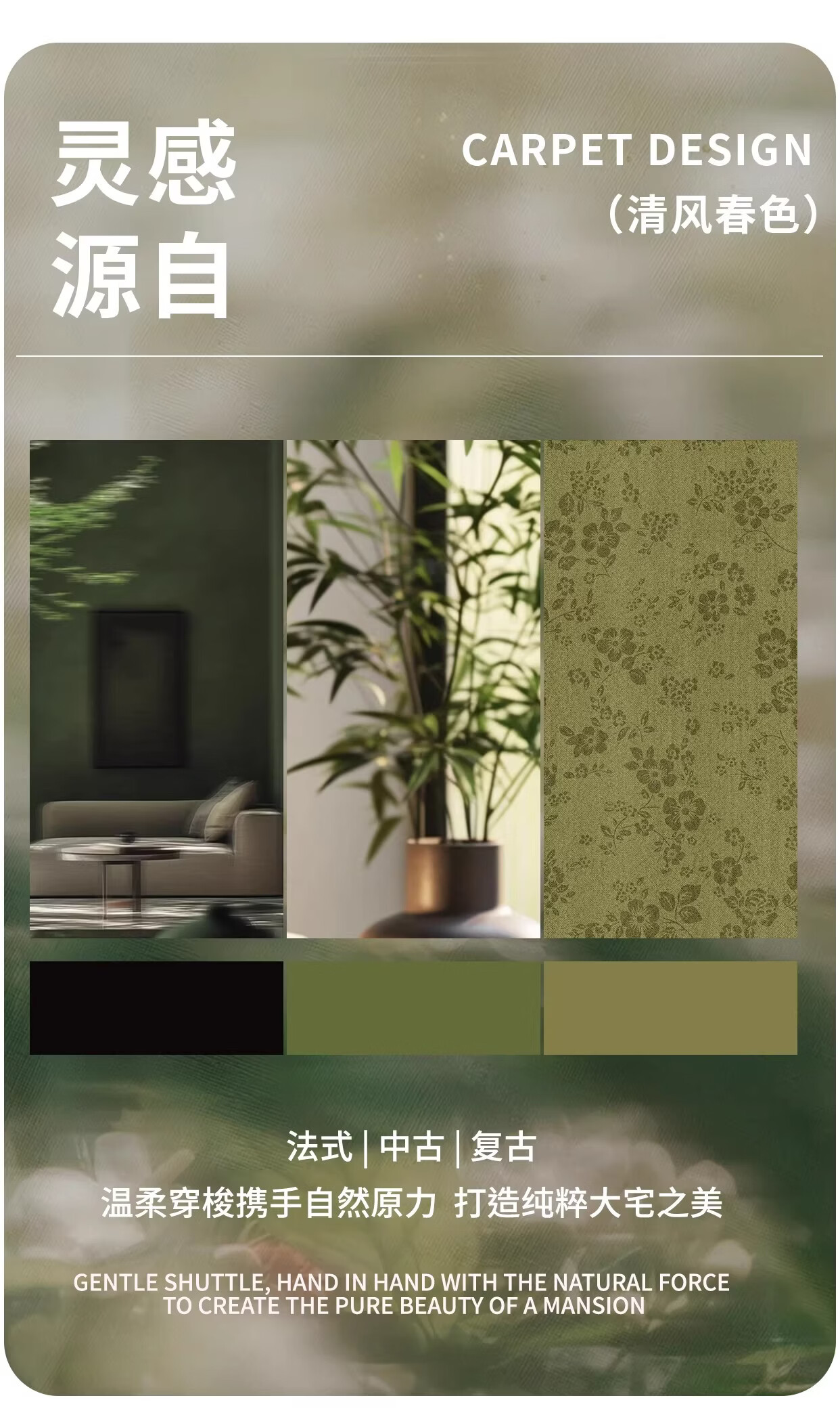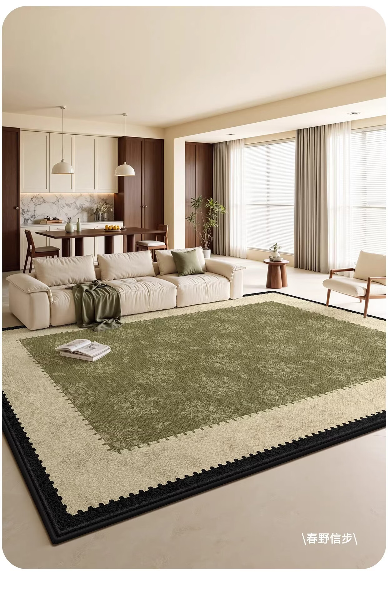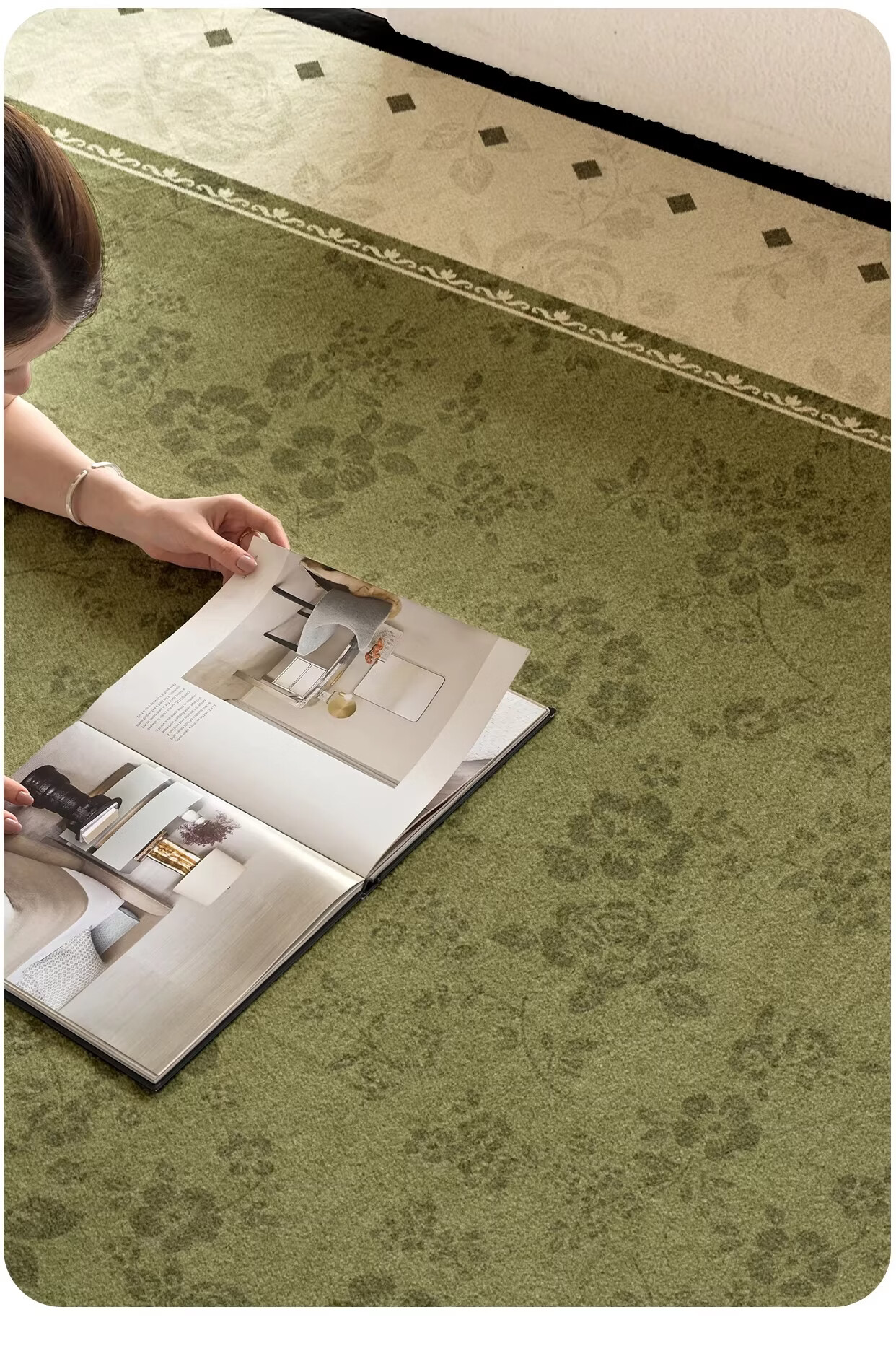 Y U-LIVE地毯客厅绿色中古风2026新款复古免洗可擦轻奢高级感沙发卧室地垫 S仿羊绒-樱落繁花 定制请联系客服【享优惠】