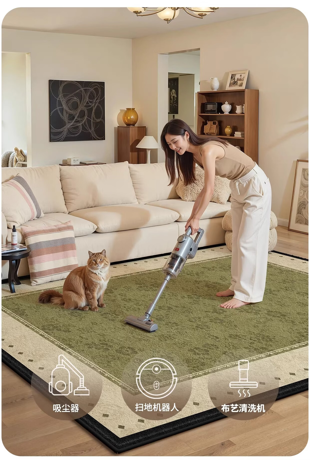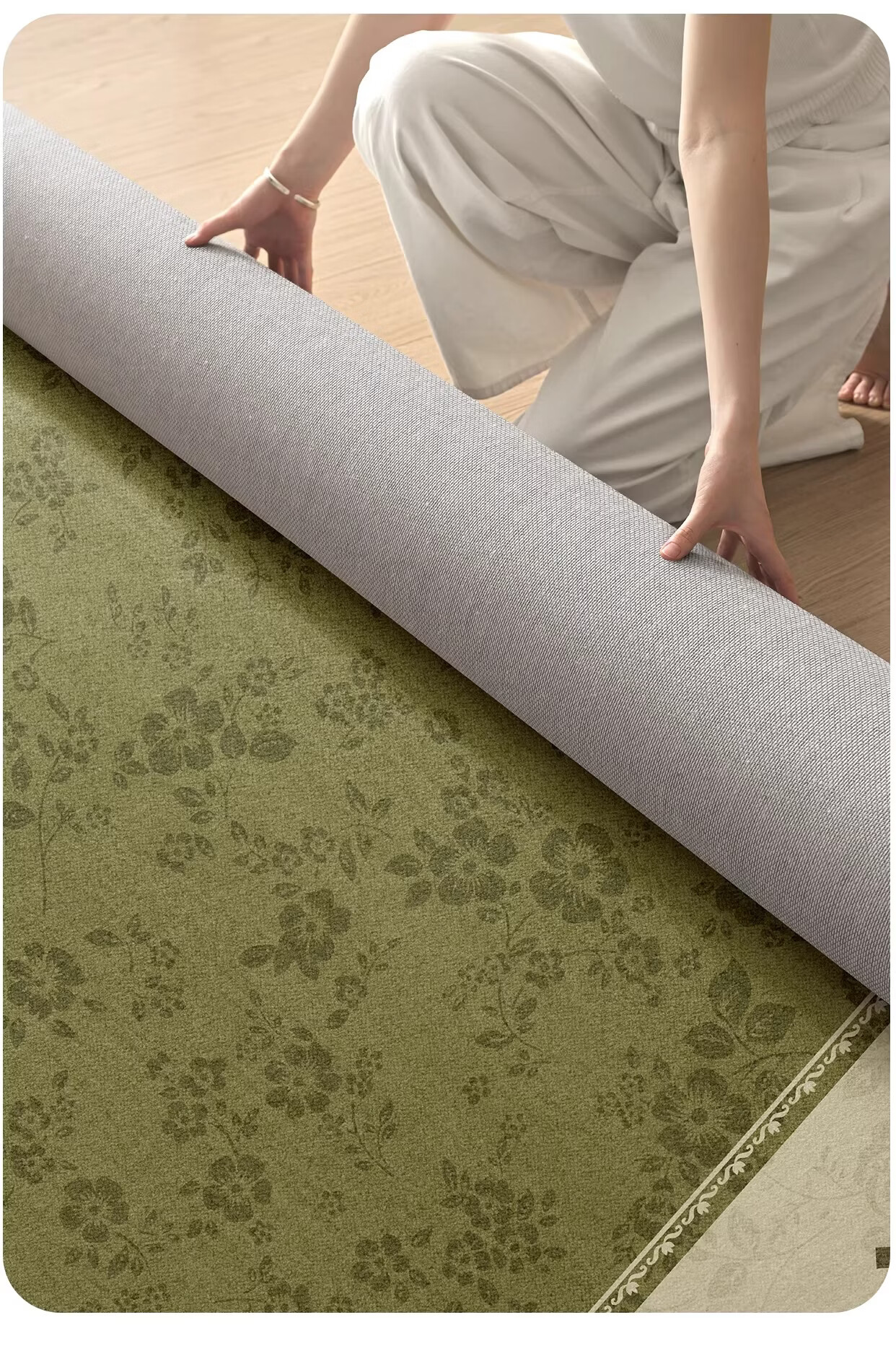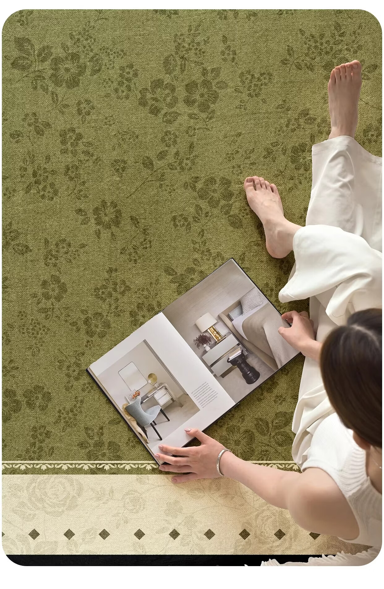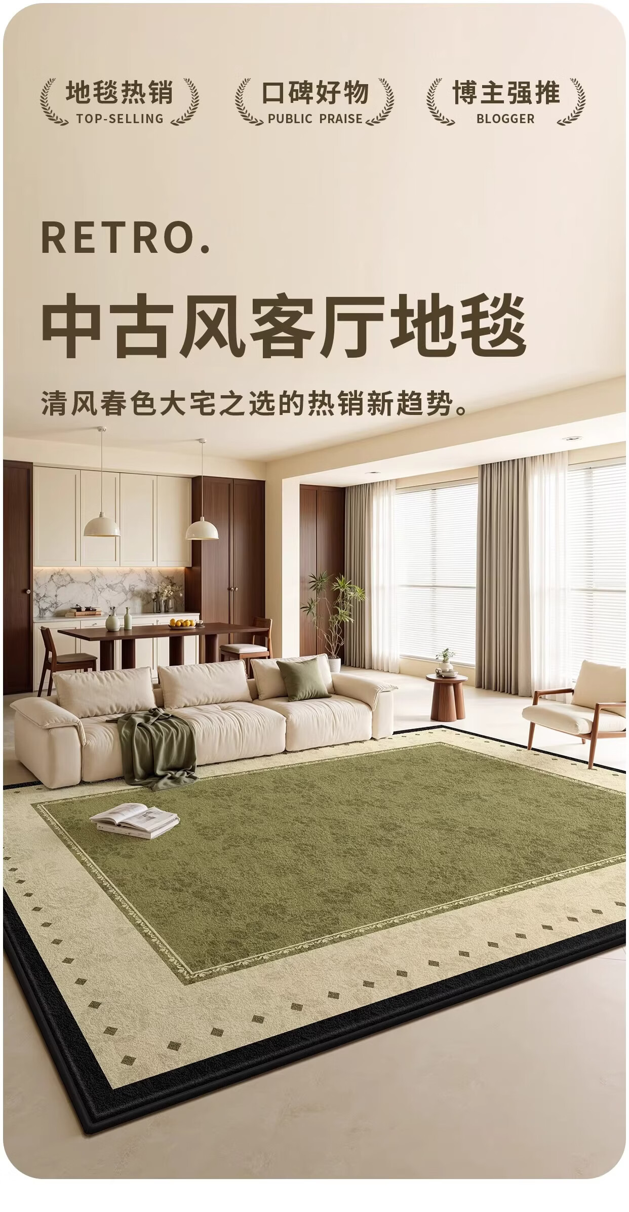 Y U-LIVE地毯客厅绿色中古风2026新款复古免洗可擦轻奢高级感沙发卧室地垫 S仿羊绒-樱落繁花 定制请联系客服【享优惠】