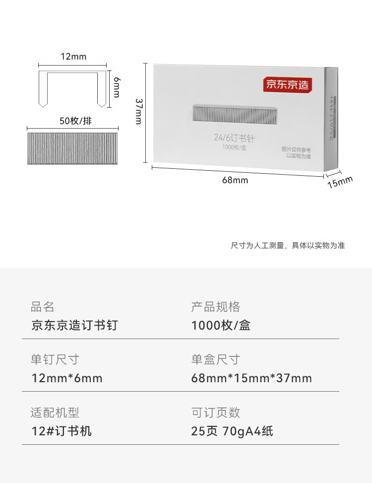 京东京造【热门商品】24/6订书钉 12#易穿透订书针 1000枚/盒 单盒装 可订25页 办公文具用品