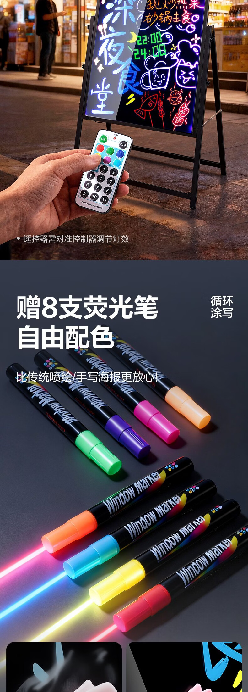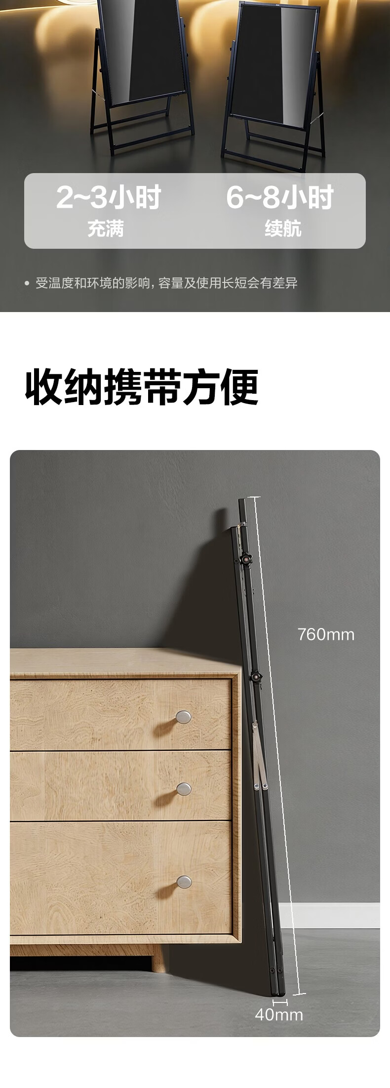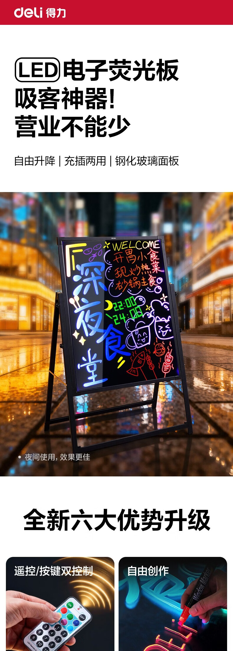 得力电子荧光板70*50cm 充电款发光广告板led广告牌支架型摆摊夜市荧光屏商用升降调节钢化面板