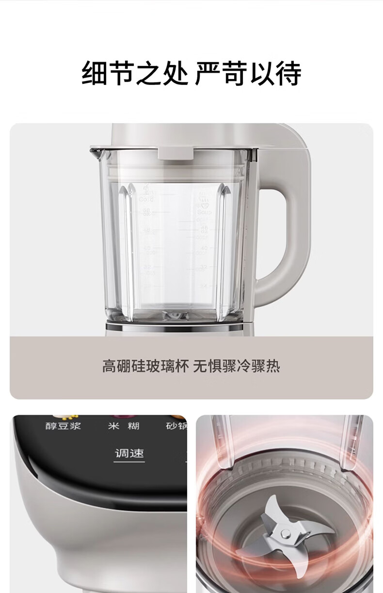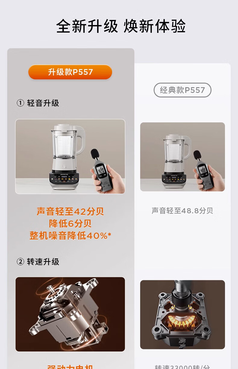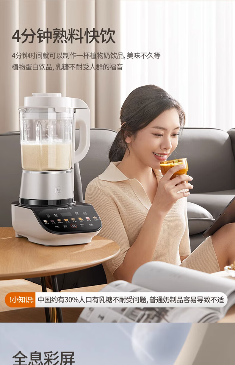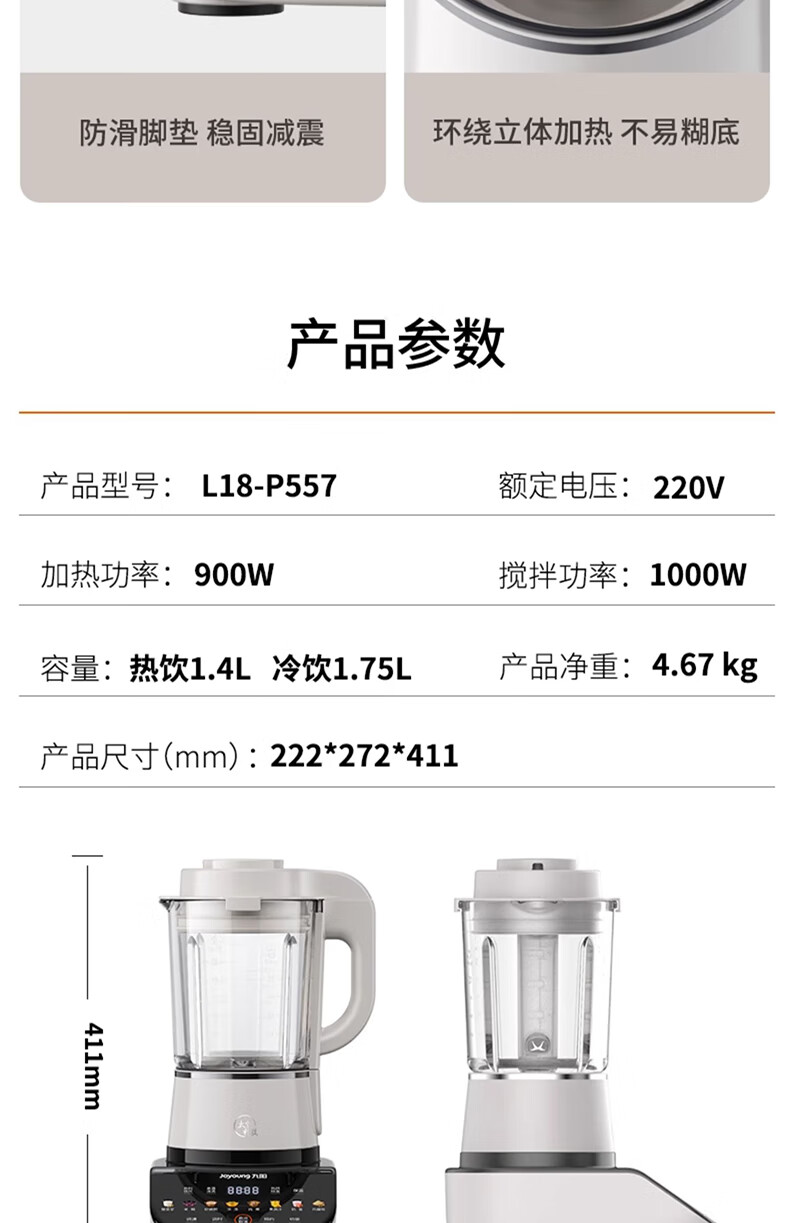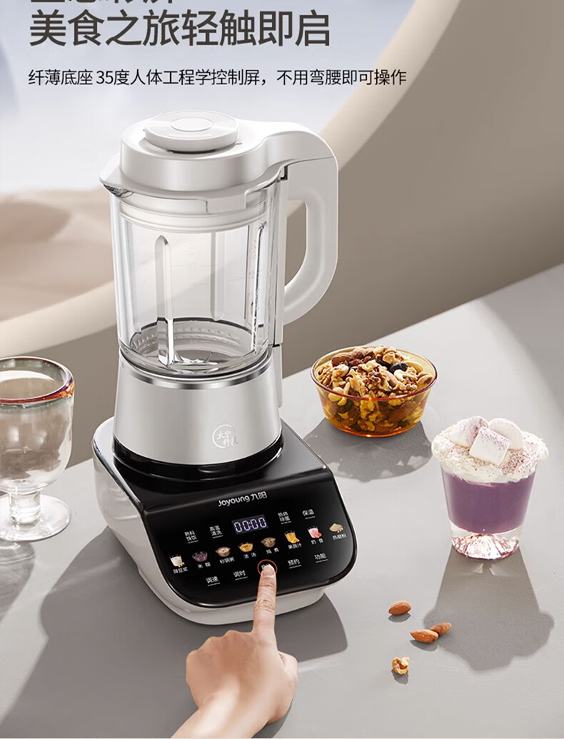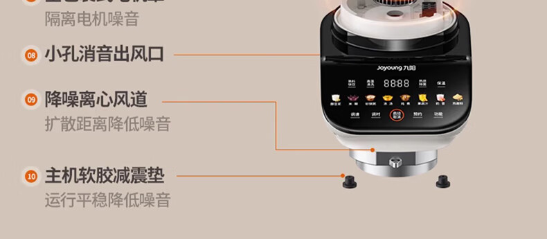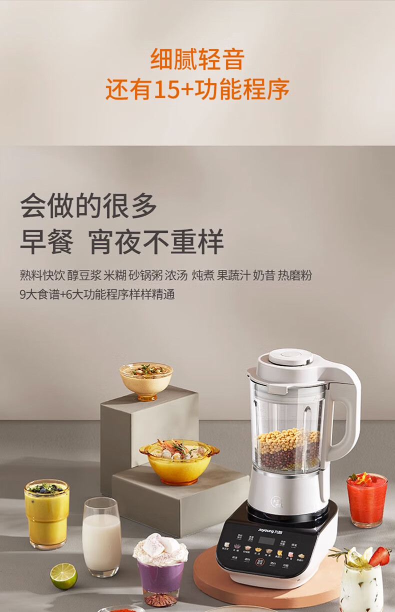 九阳轻音破壁机家用全自动榨汁豆浆机多功能降噪彩屏纤薄1.75L五谷杂粮3-5人用P557国家补贴