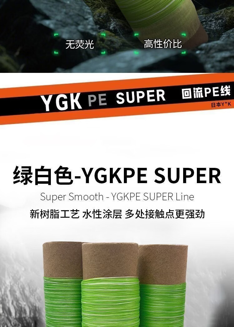 YGK BKUPE日产YGK回流拆机线pe线路亚远投顺滑耐磨无荧光pe线钓鱼主线 绿白色【YGK-BKUPE拆机回流】440-445米左右 6.0号【正品无荧光】