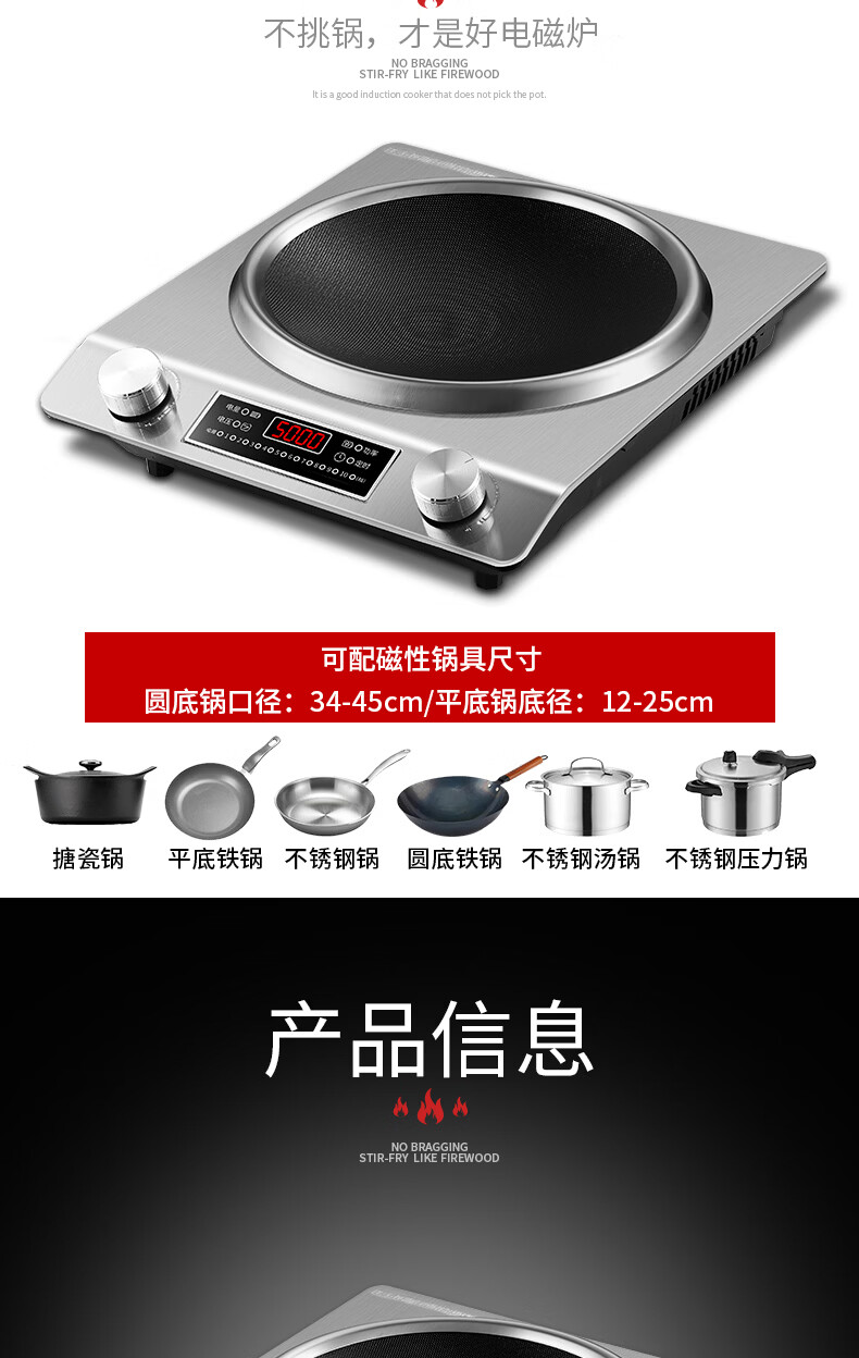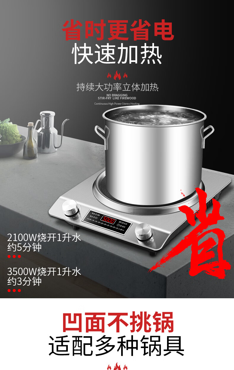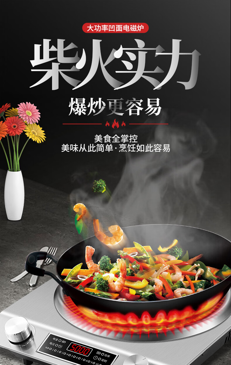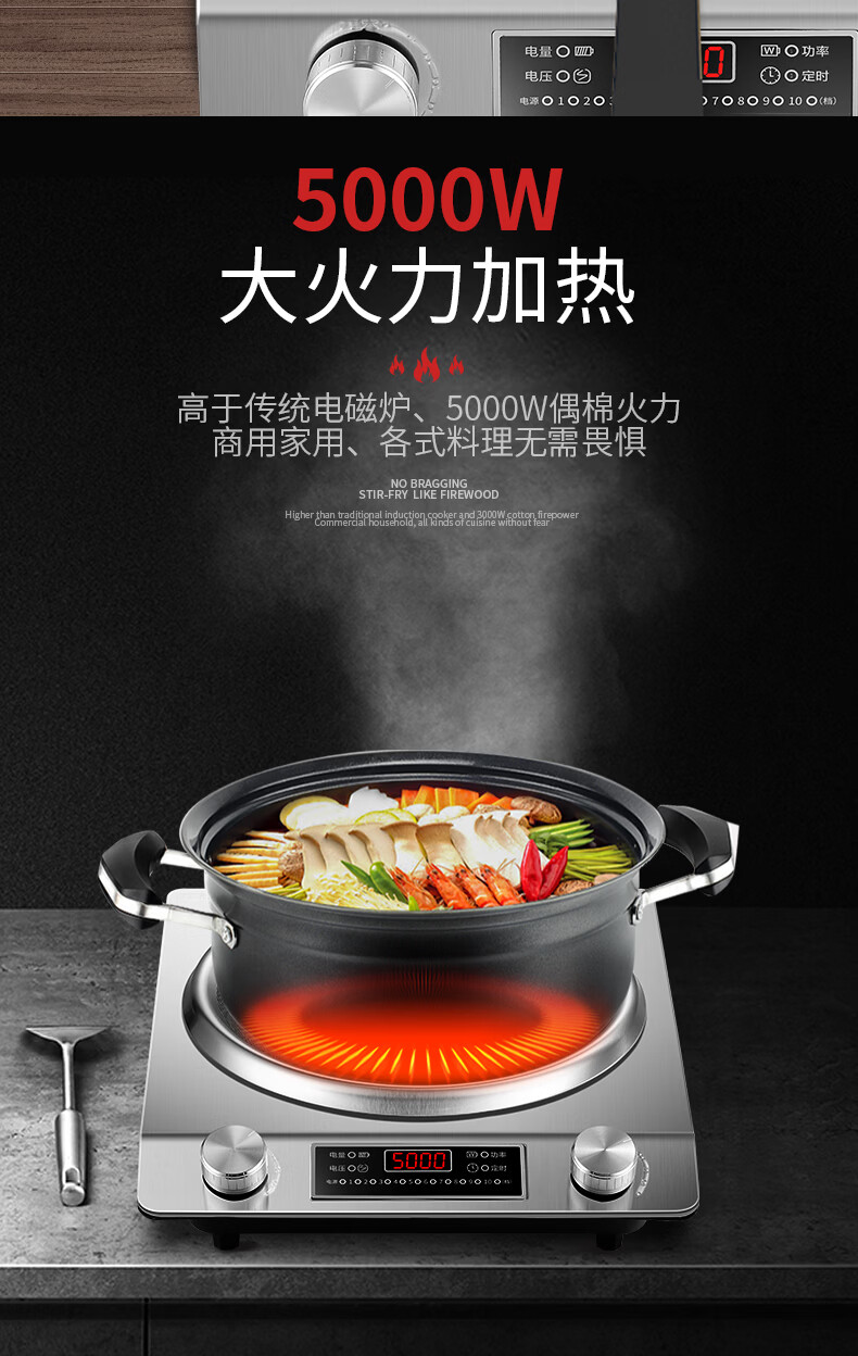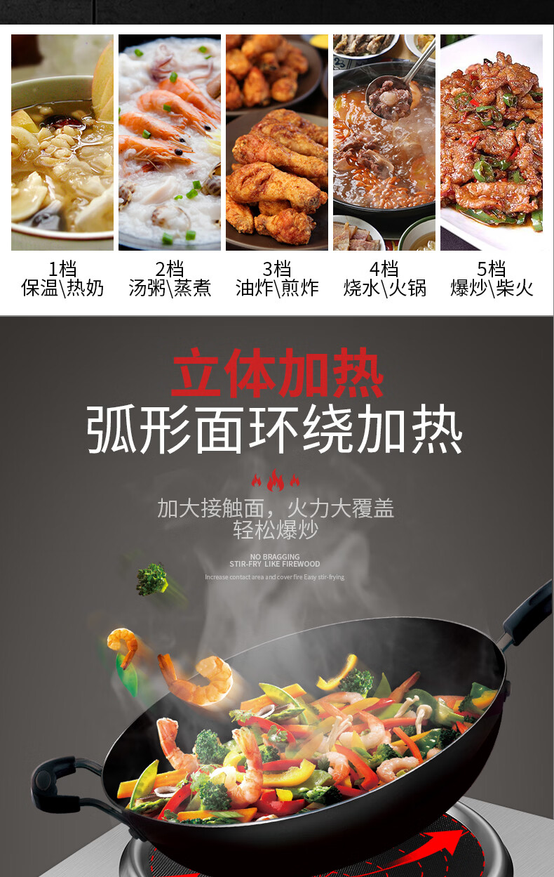 美的多采电磁炉家用3500W凹面大功率猛火多功能一体全套炒菜锅5000W 3500W单机+精铁双锅