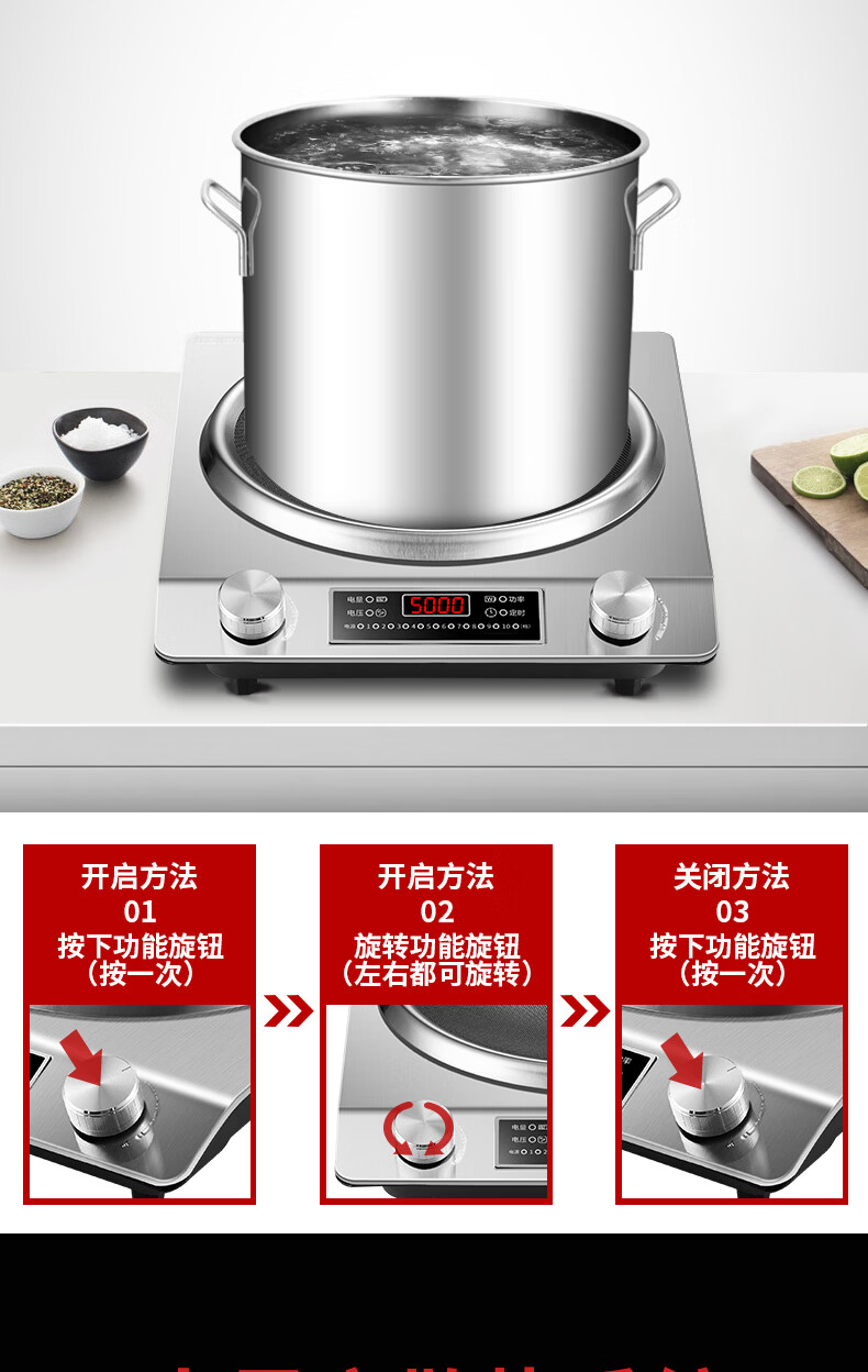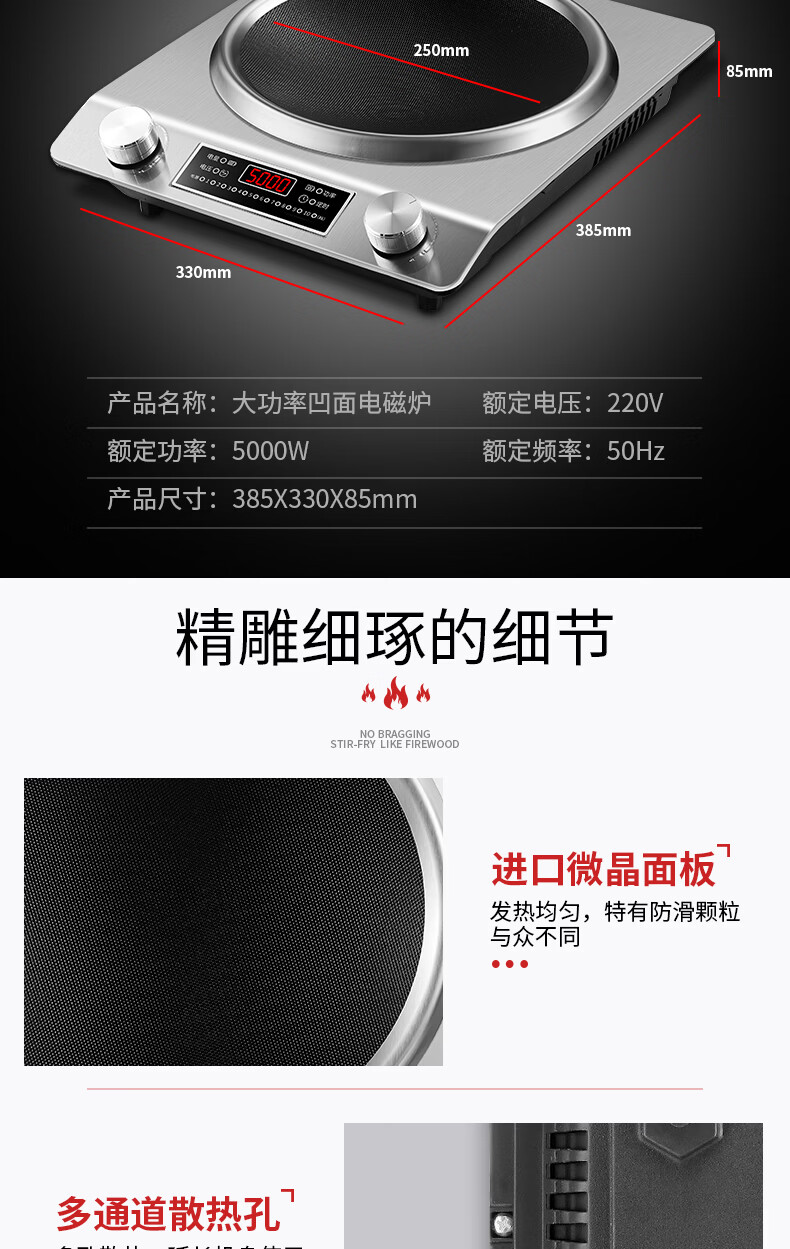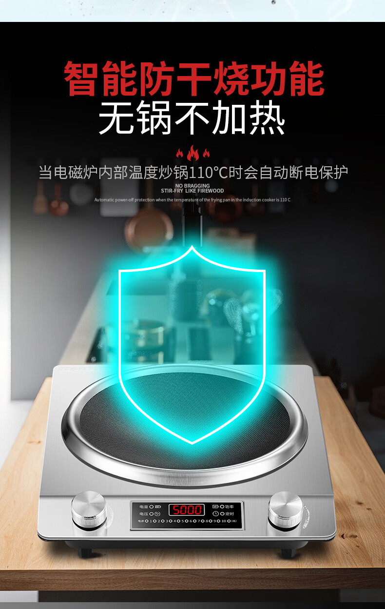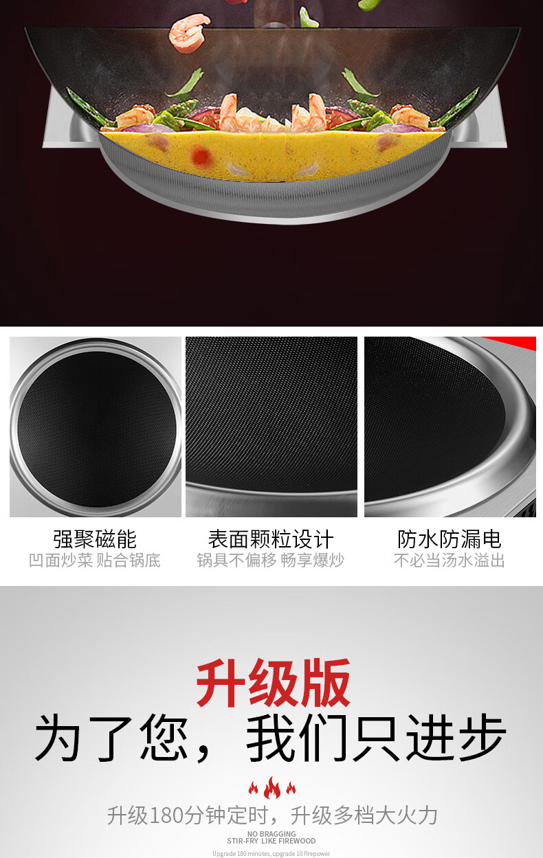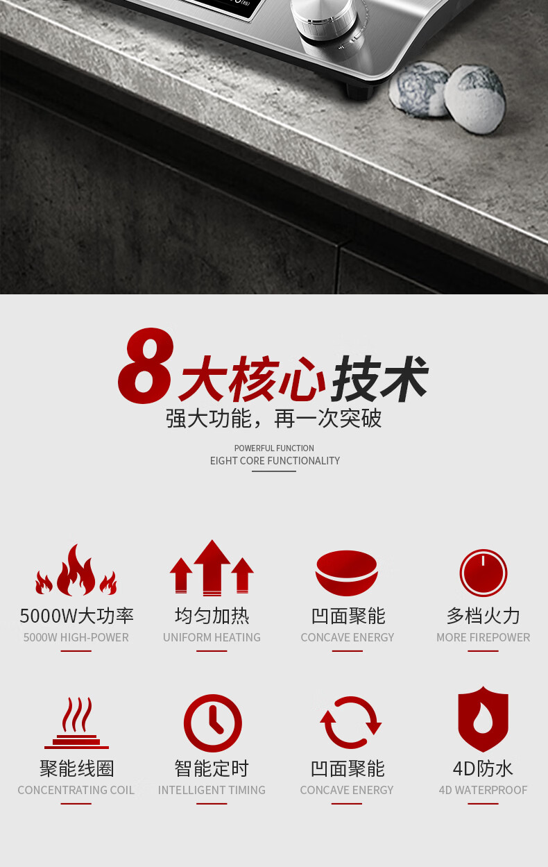 美的多采电磁炉家用3500W凹面大功率猛火多功能一体全套炒菜锅5000W 3500W单机+精铁双锅