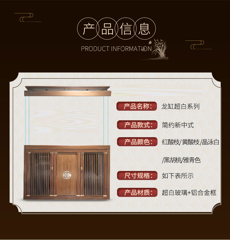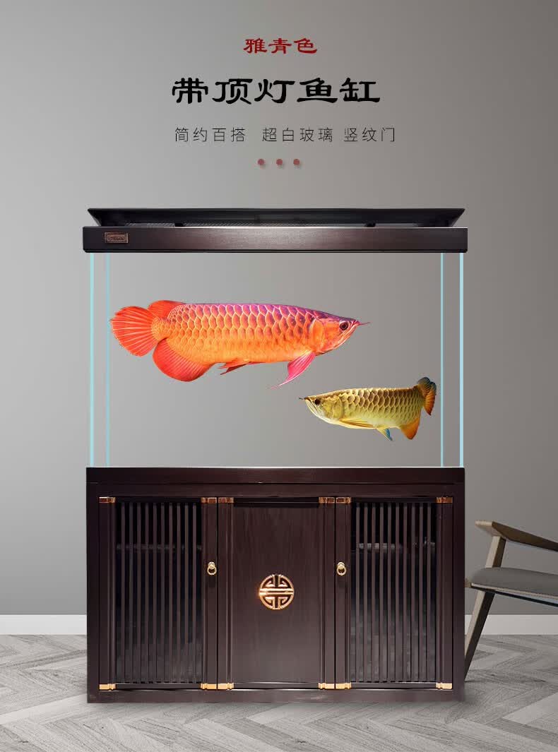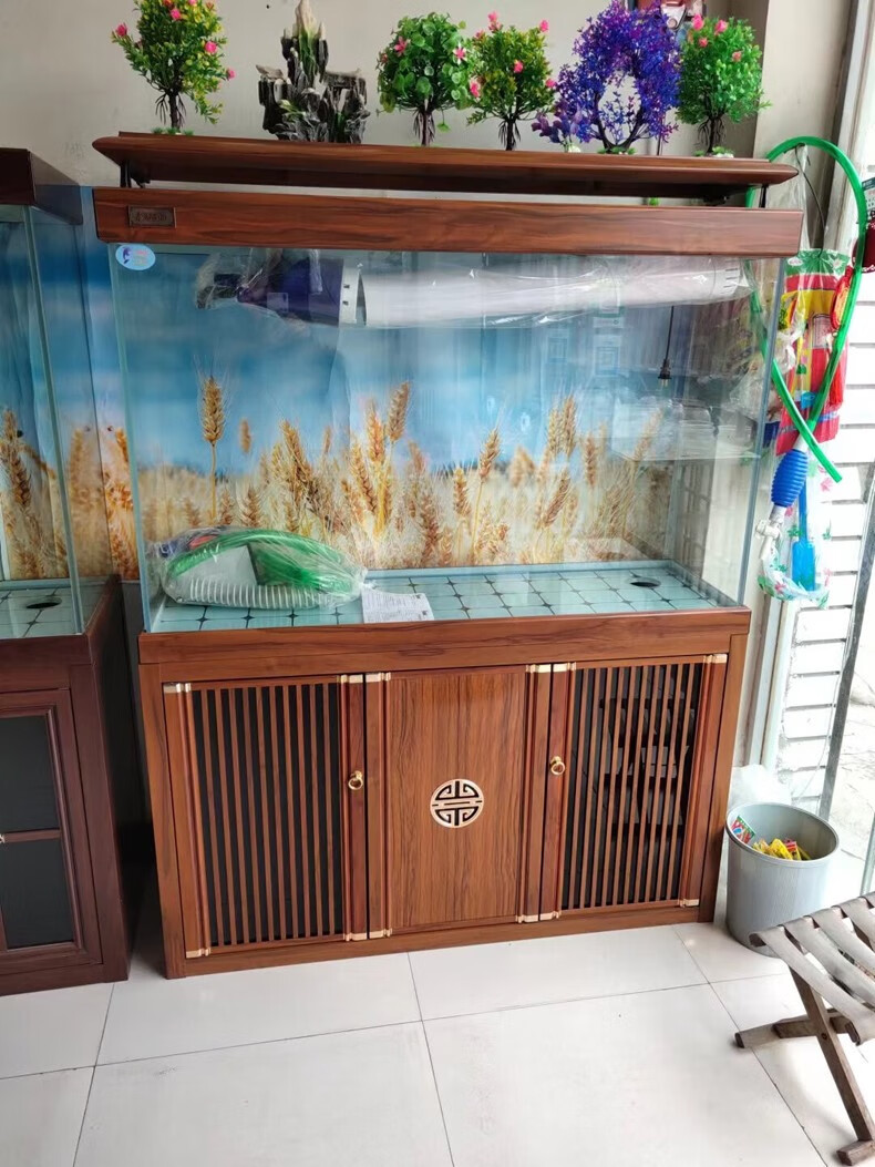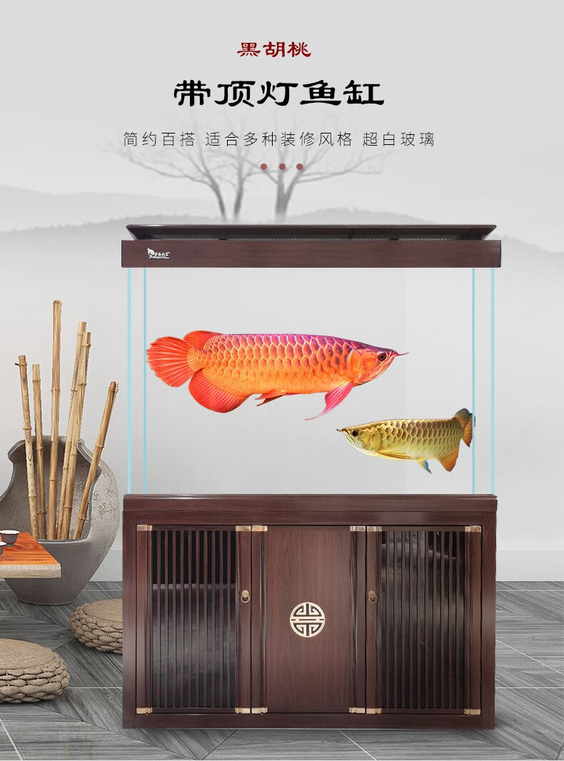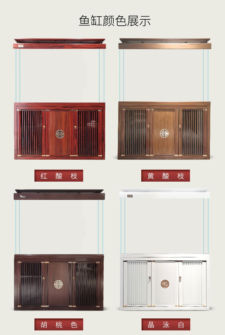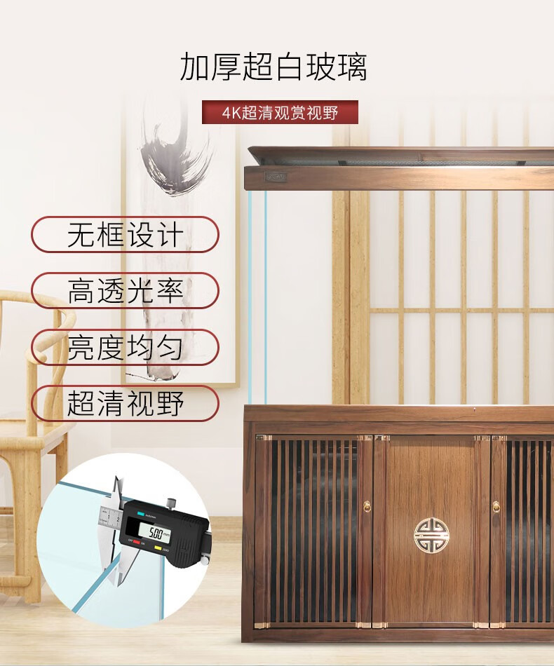 宝贝故事(BABY STORY)超白鱼缸客厅家用 中式龙鱼缸免换水鱼缸屏风鱼缸生态鱼缸底滤 黑胡桃款全套底滤底柜鱼缸 120*50*(75缸高/85柜高)三门柜