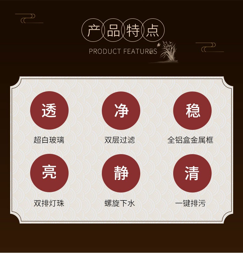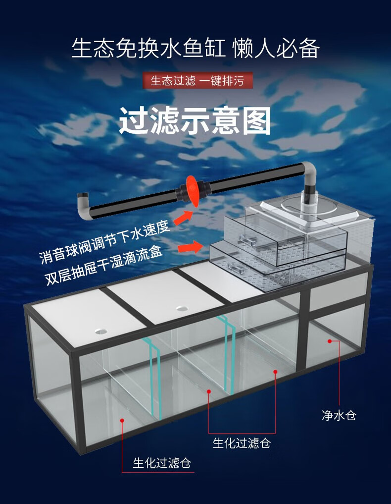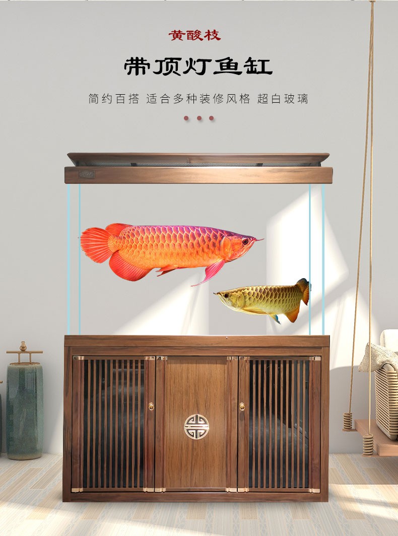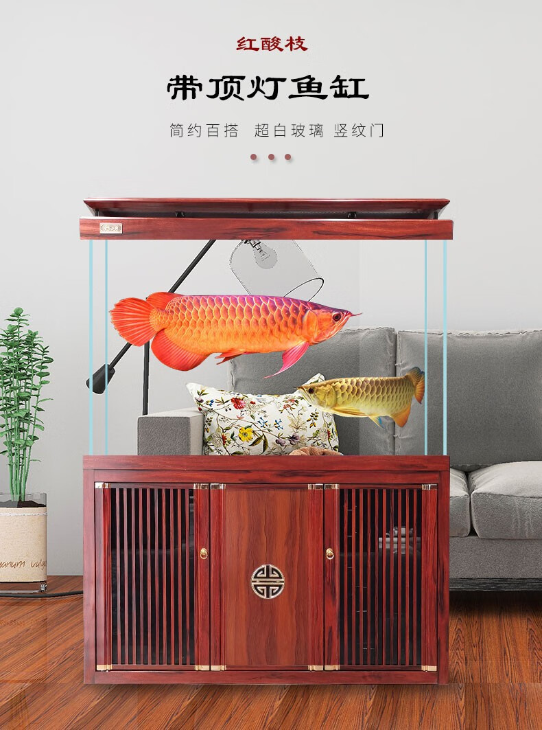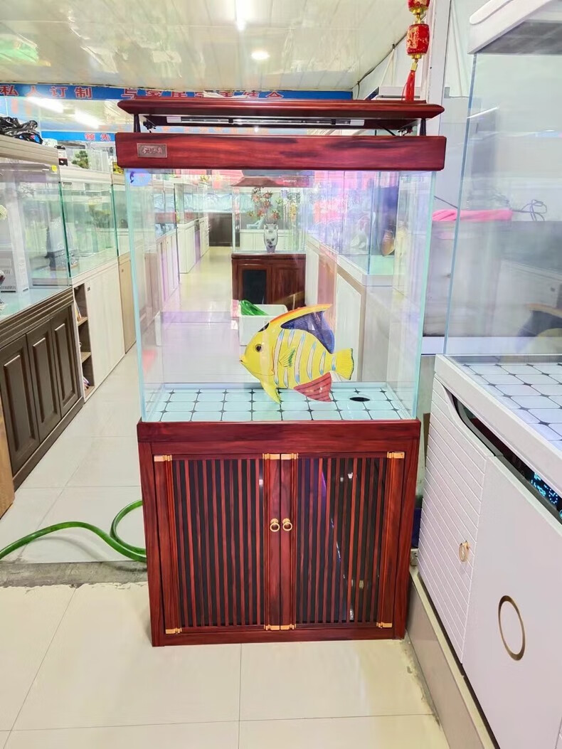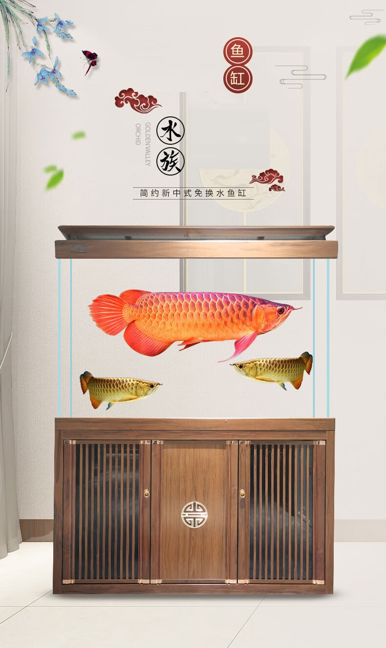 宝贝故事(BABY STORY)超白鱼缸客厅家用 中式龙鱼缸免换水鱼缸屏风鱼缸生态鱼缸底滤 黑胡桃款全套底滤底柜鱼缸 120*50*(75缸高/85柜高)三门柜