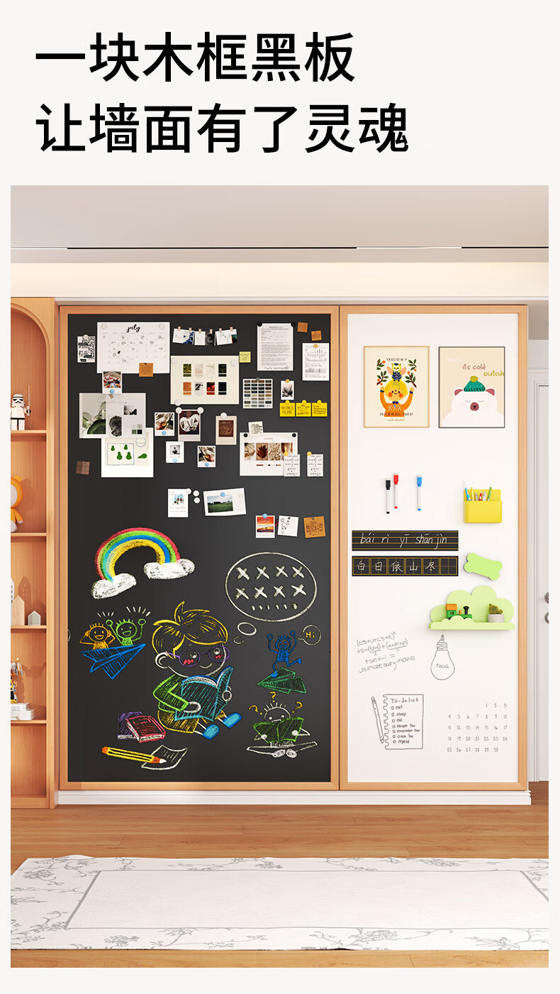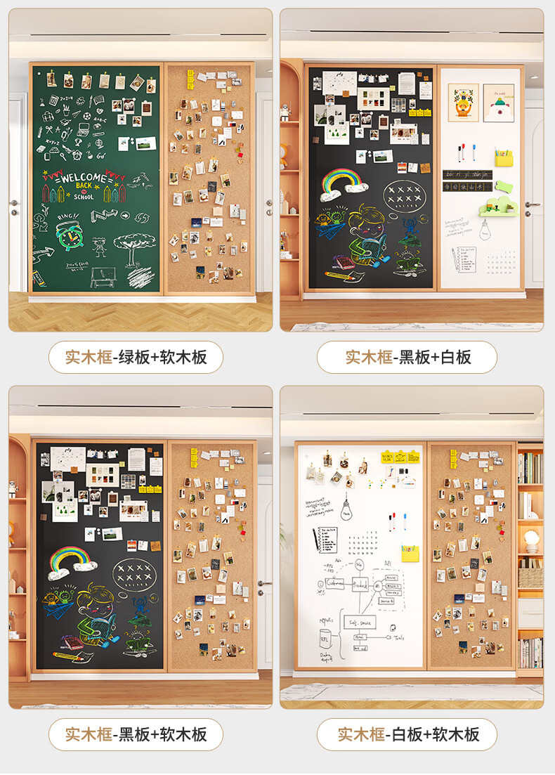 磁博士ciboshi家用软木板挂墙式实木框磁性黑板磁力写字板儿童组合黑板墙白板挂式定制磁吸多功能板墙照片墙定制 软木板【黑木咖啡】框 60x180cm