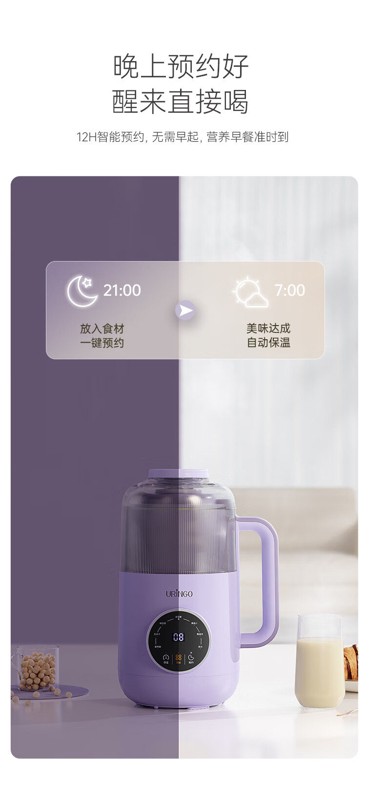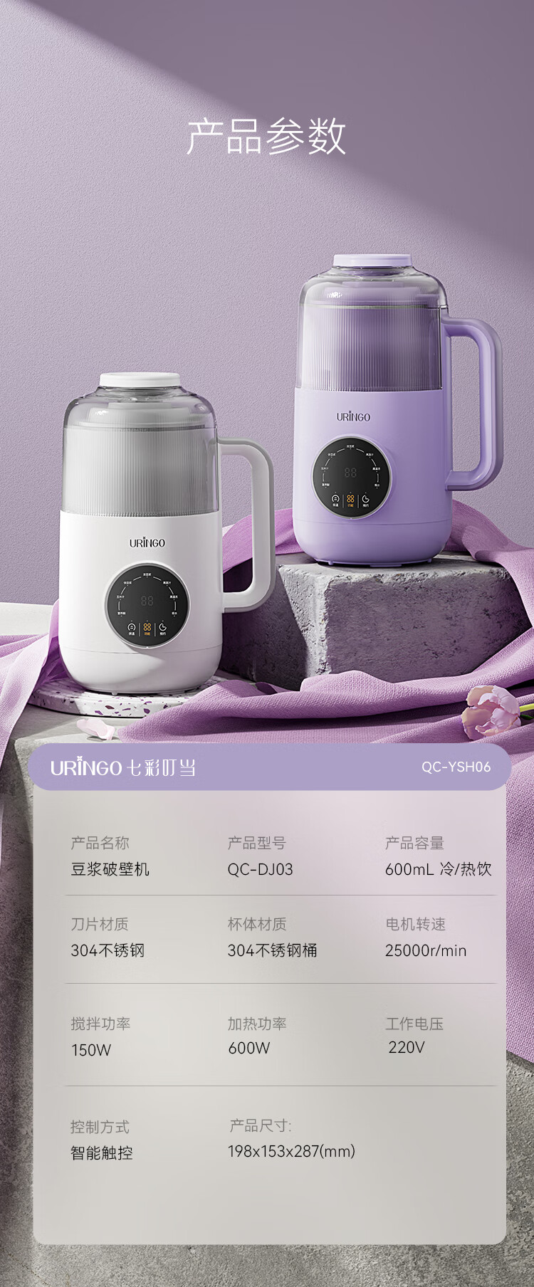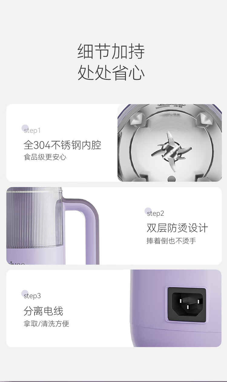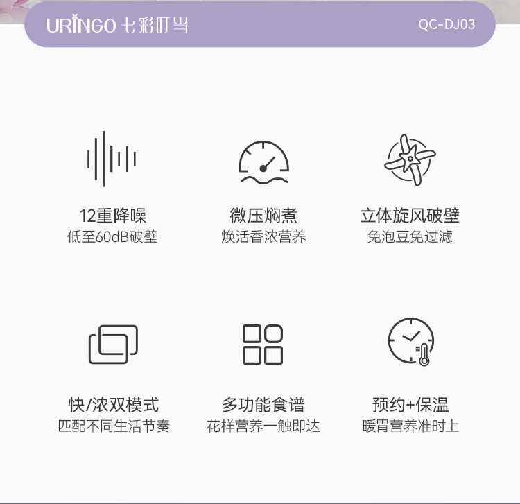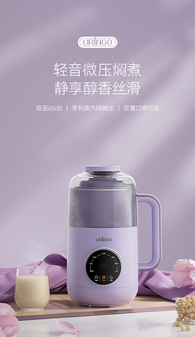 七彩叮当家用破壁机小型豆浆机全自动迷你款新款低噪音榨汁米糊机 【星云紫】1-3人用 0.6L