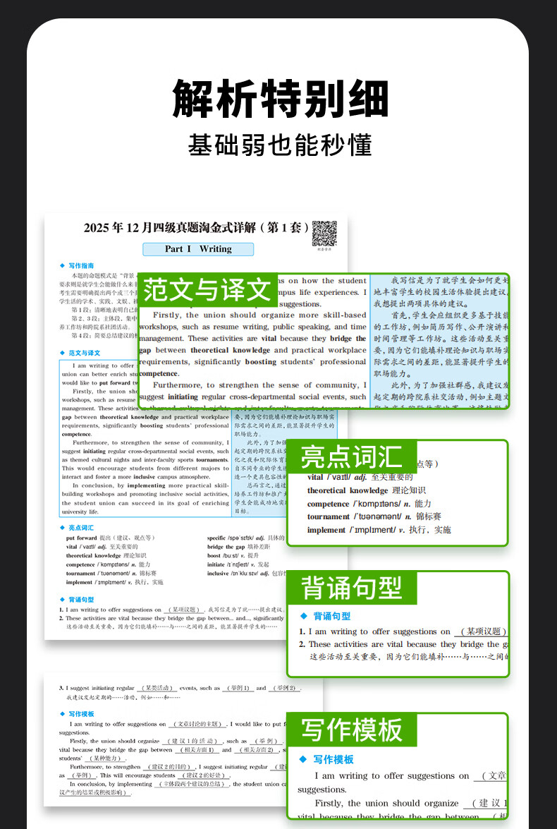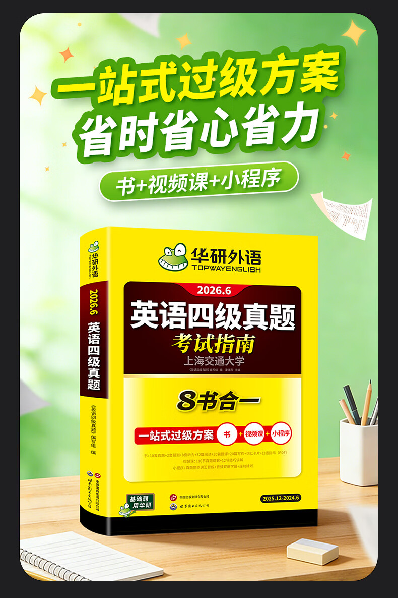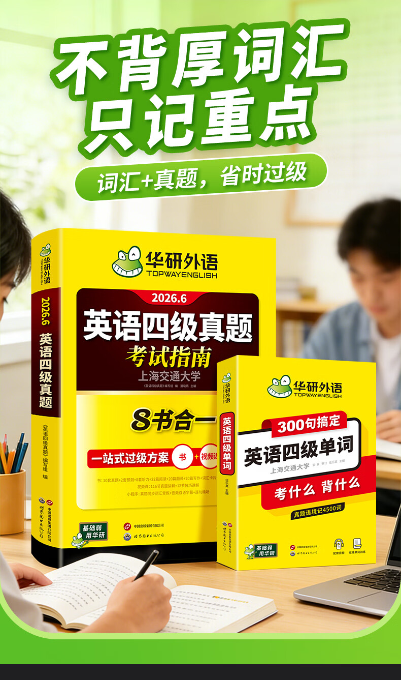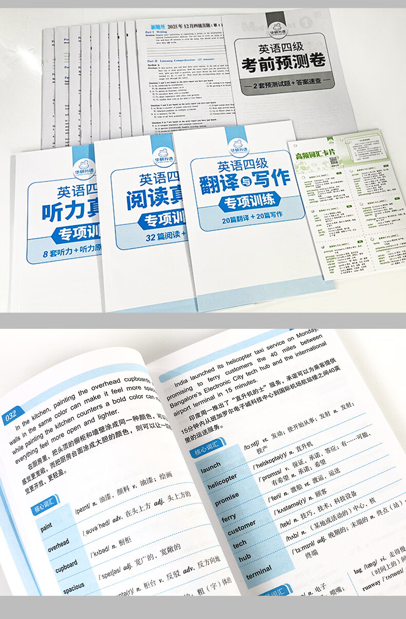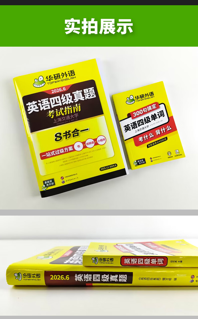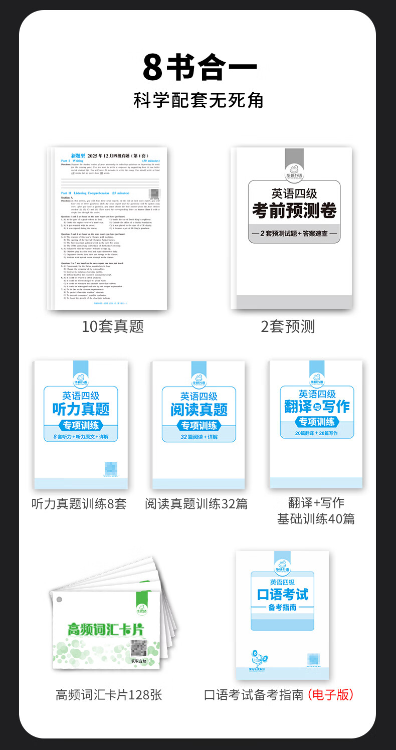【含12月新真题】英语四级真题考试 备考2026年6月 华研外语4级历年真题试卷 新题型 大学CET4级模拟试卷预测词汇单词阅读理解听力翻译写作文专项训练书全套资料八书合一 四级真题 英语四级试卷 四