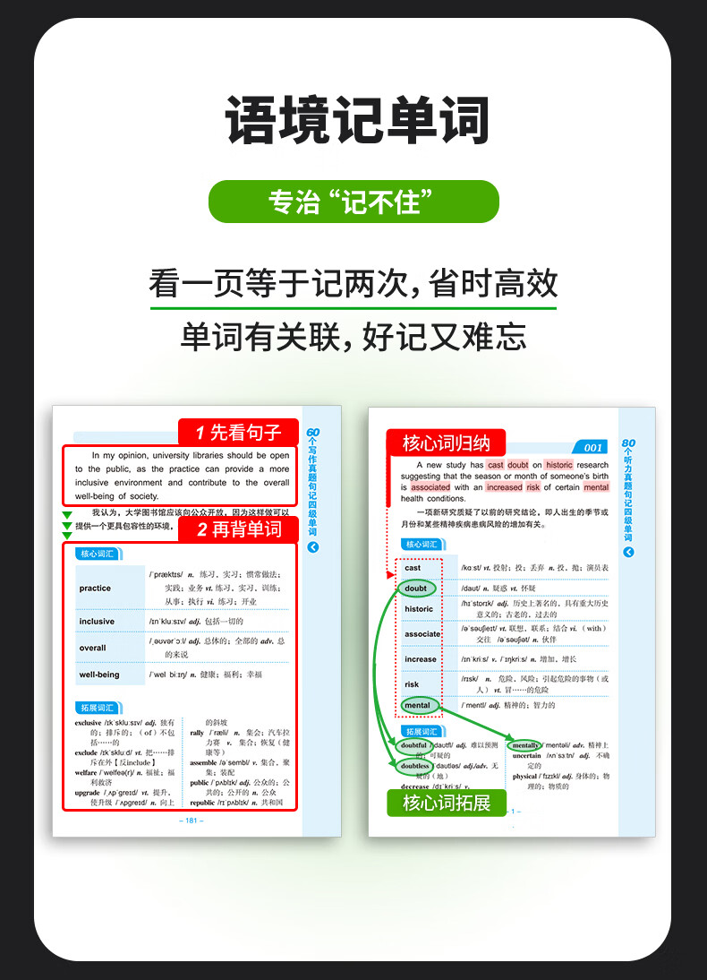 当天发货】高顿备考2025四六级真题高顿大学英语四六级真题词汇考试突破单词书高顿四六级躺赢包四六级书课包备考资料真题试卷英语四六级专项训练全套 备考2025四级·词汇