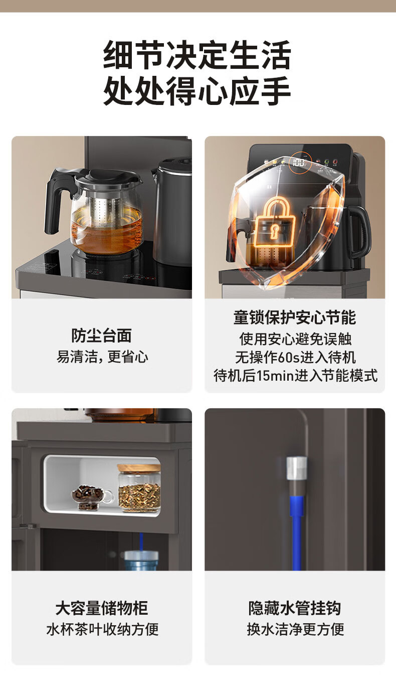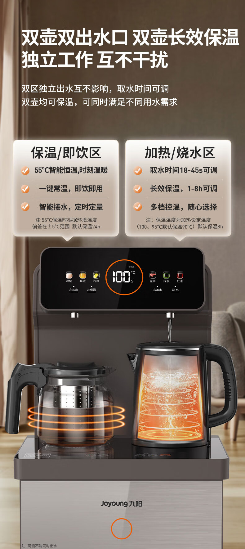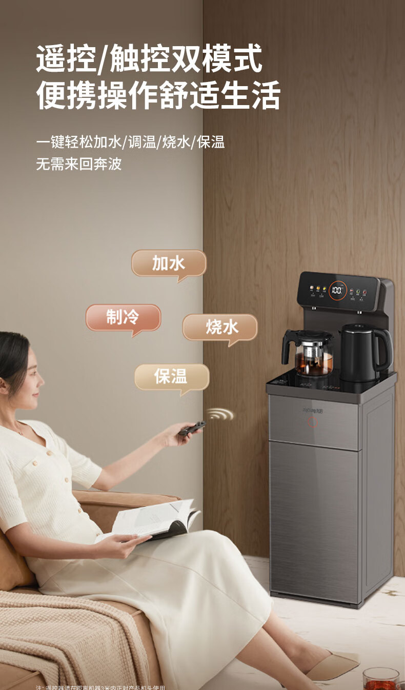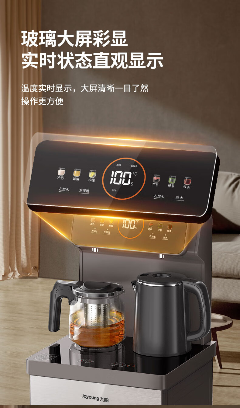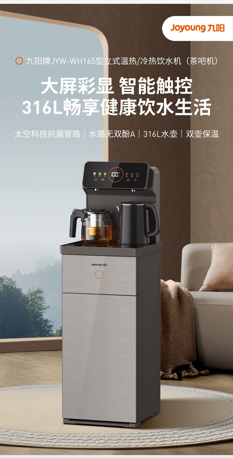 九阳(Joyoung)茶吧机 彩屏 316L 烧水壶 电热水壶 双壶双保温 远程遥控 抗菌管路 家用茶吧机 秋叶棕 制热型 WH165