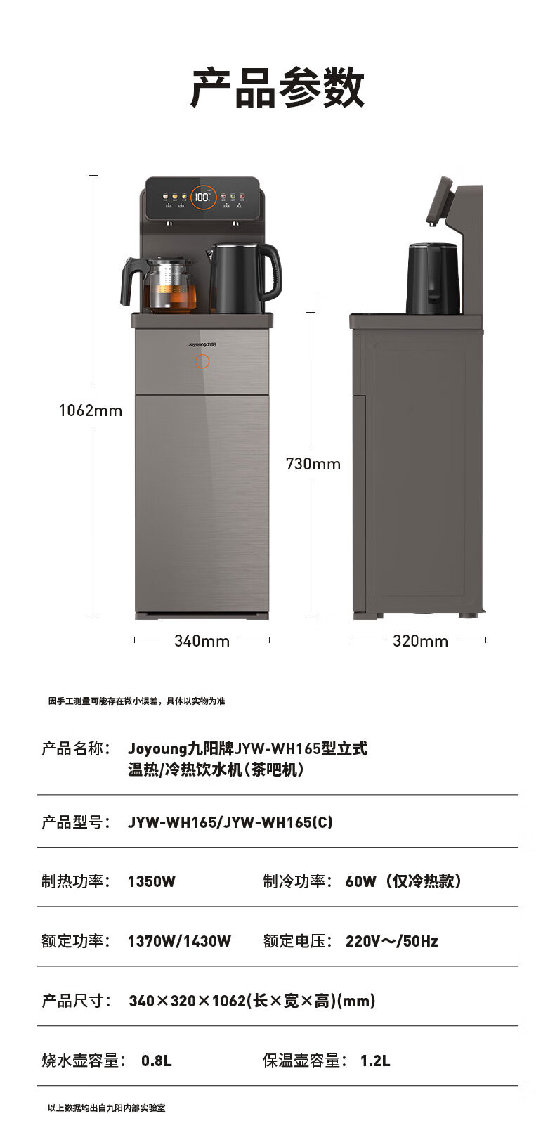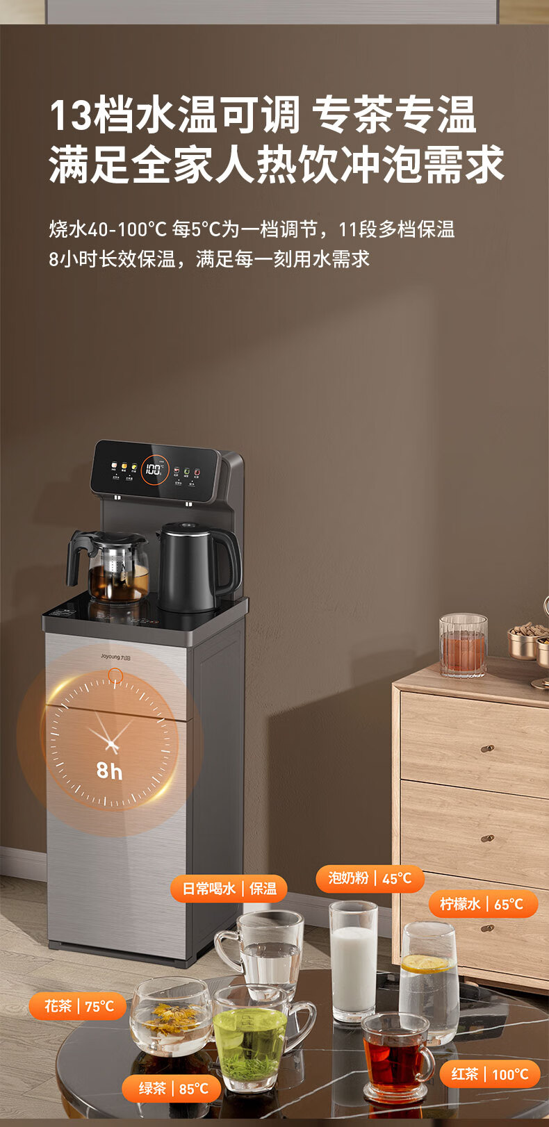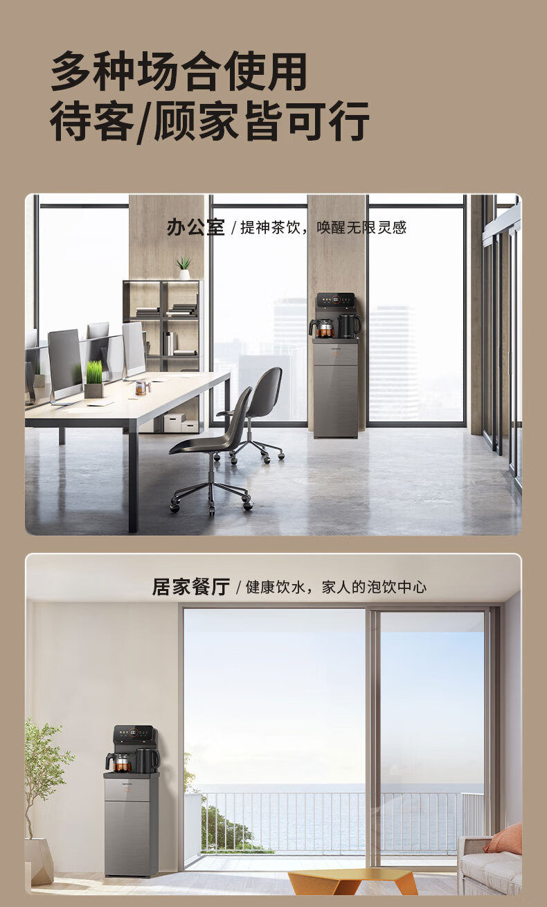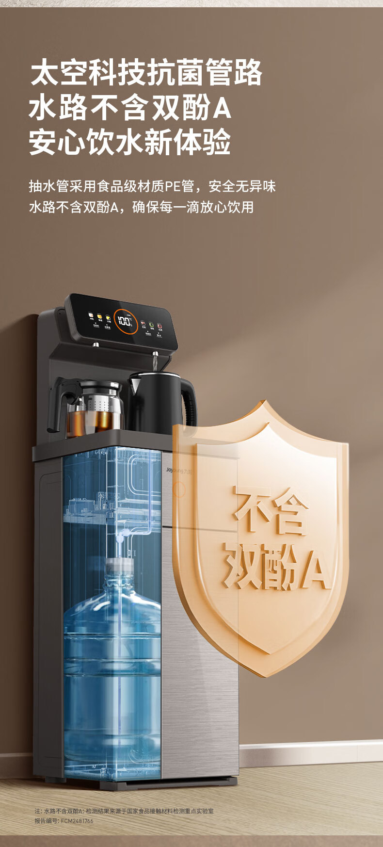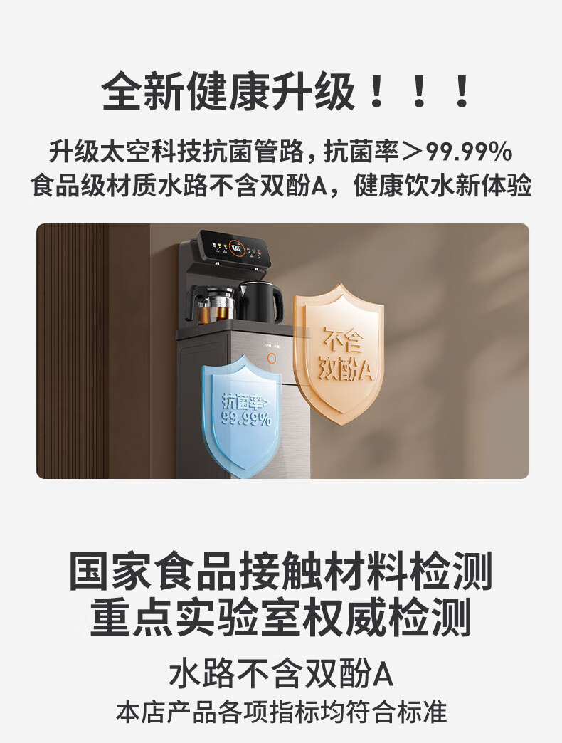 九阳(Joyoung)茶吧机 彩屏 316L 烧水壶 电热水壶 双壶双保温 远程遥控 抗菌管路 家用茶吧机 秋叶棕 制热型 WH165