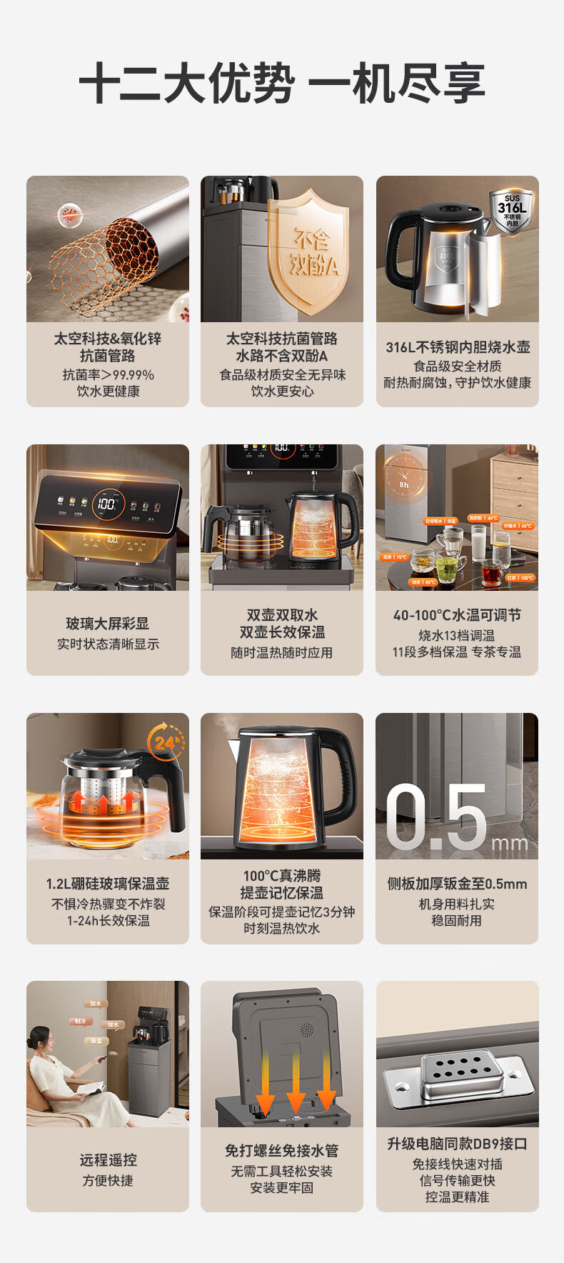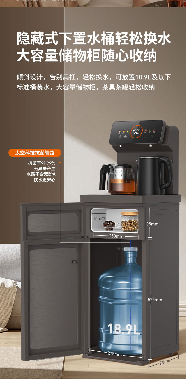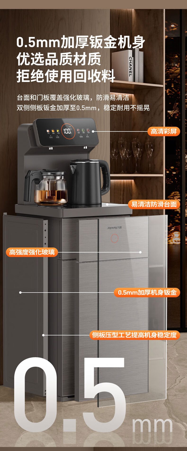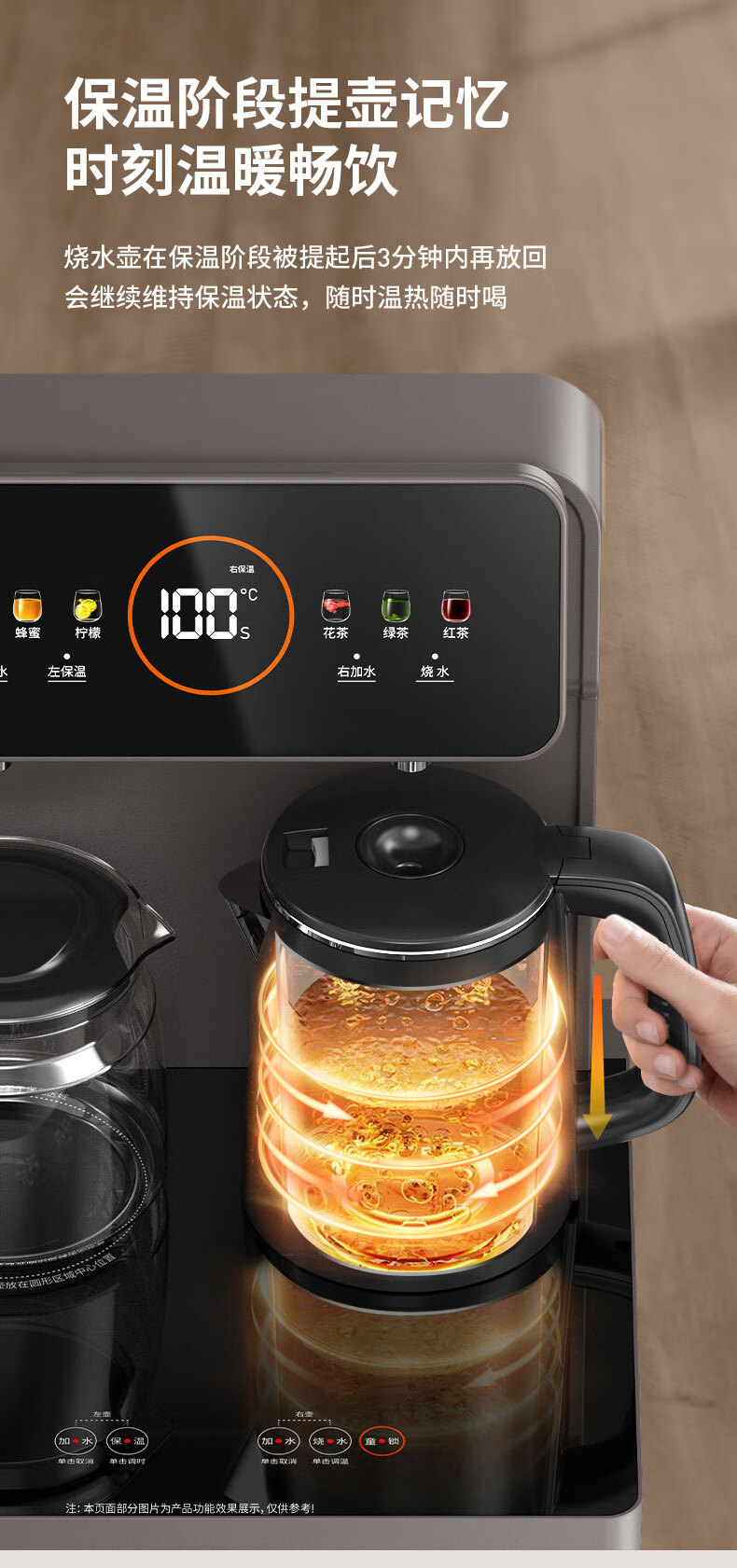 九阳(Joyoung)茶吧机 彩屏 316L 烧水壶 电热水壶 双壶双保温 远程遥控 抗菌管路 家用茶吧机 秋叶棕 制热型 WH165
