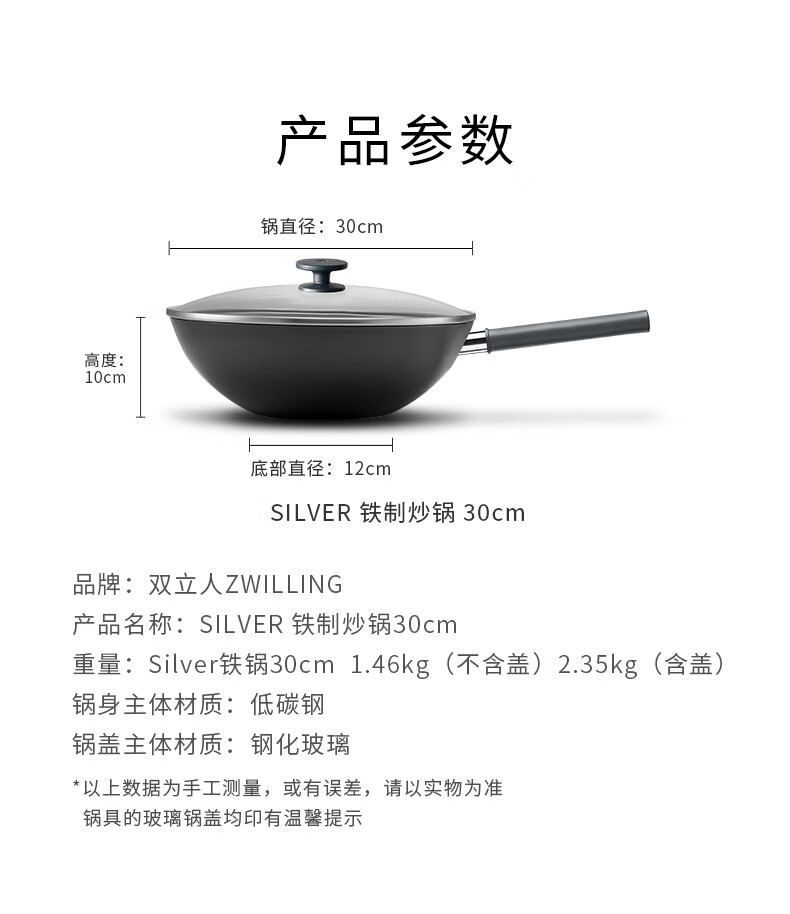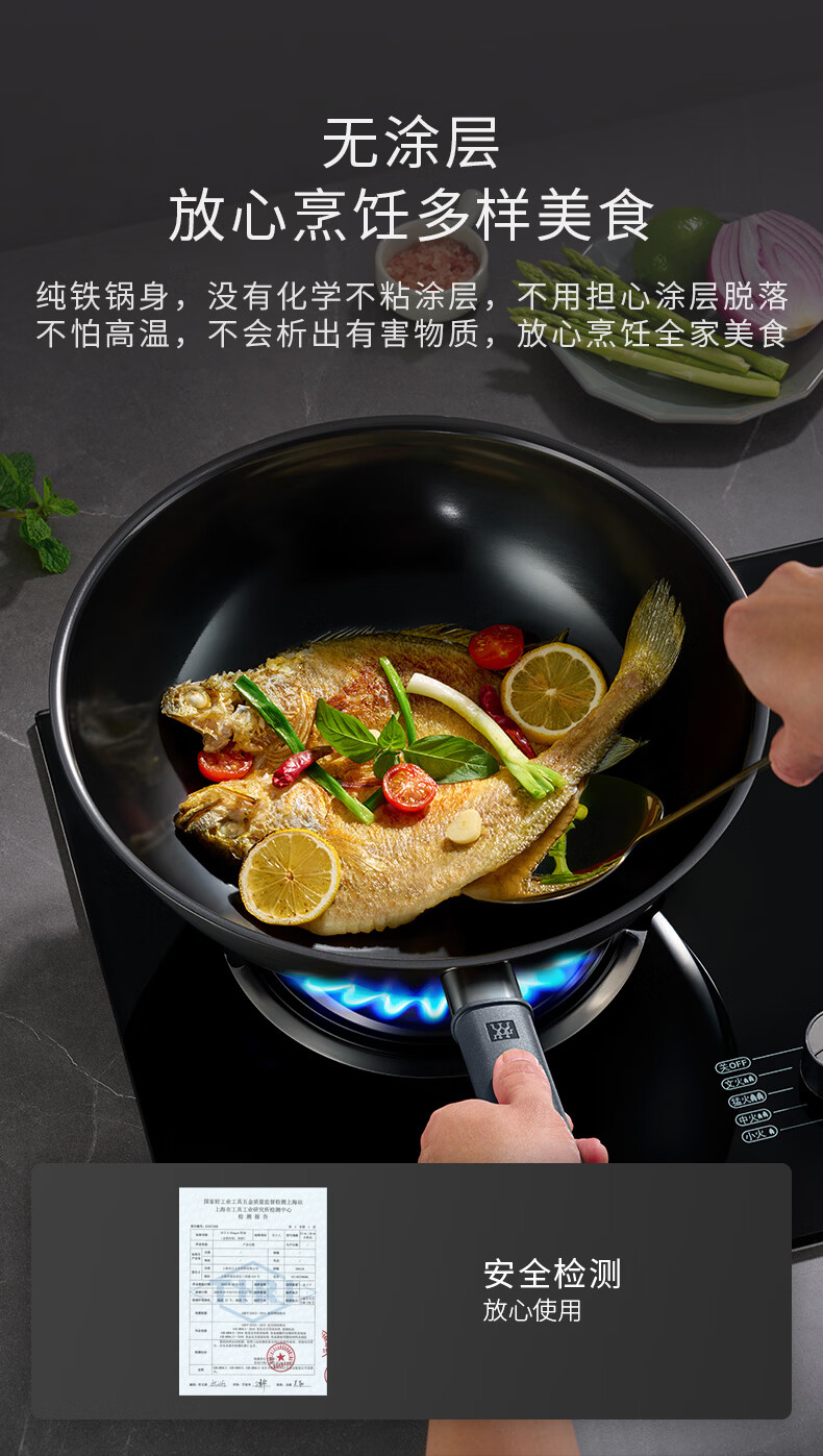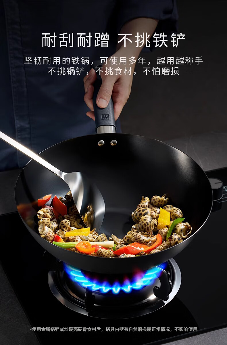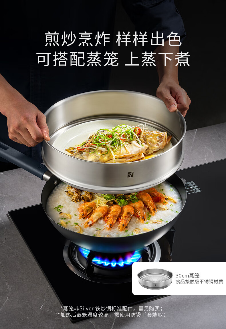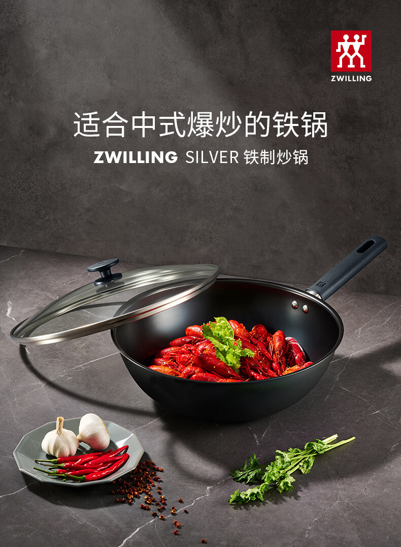 双立人(ZWILLING)炒锅铁锅大口径炒菜锅厨具电磁炉燃气通用SILVER银光铁系列精铁锅 【99.78%精铁】铁炒锅 30cm