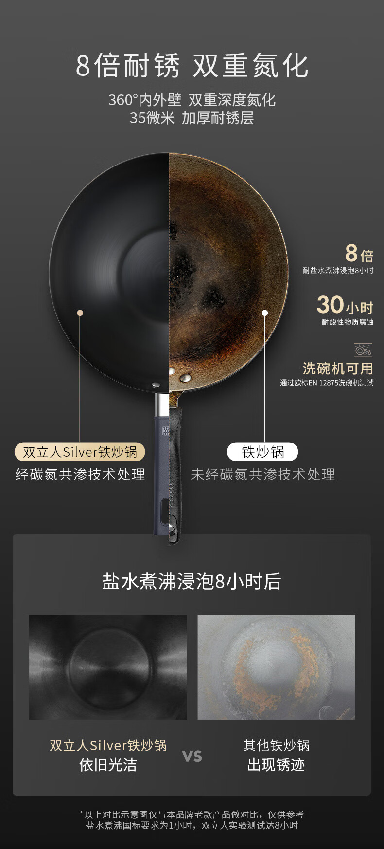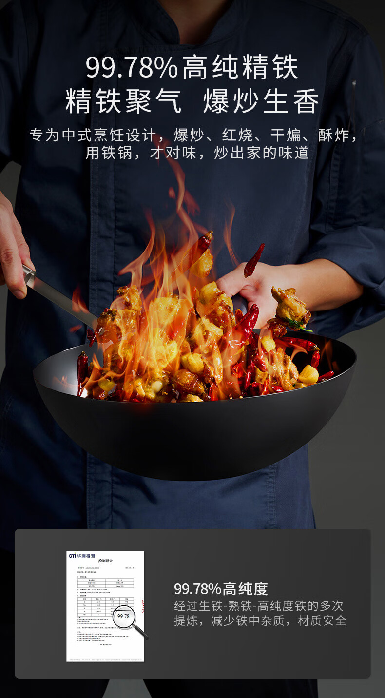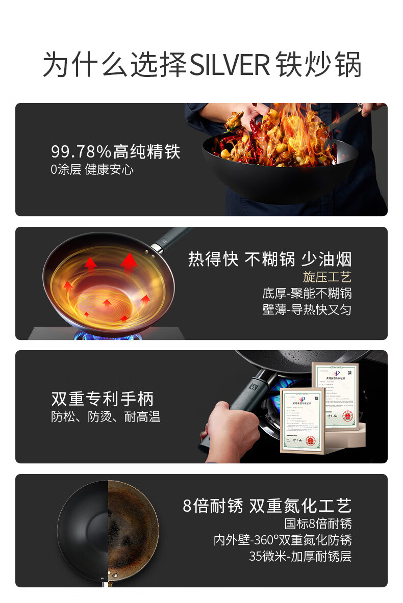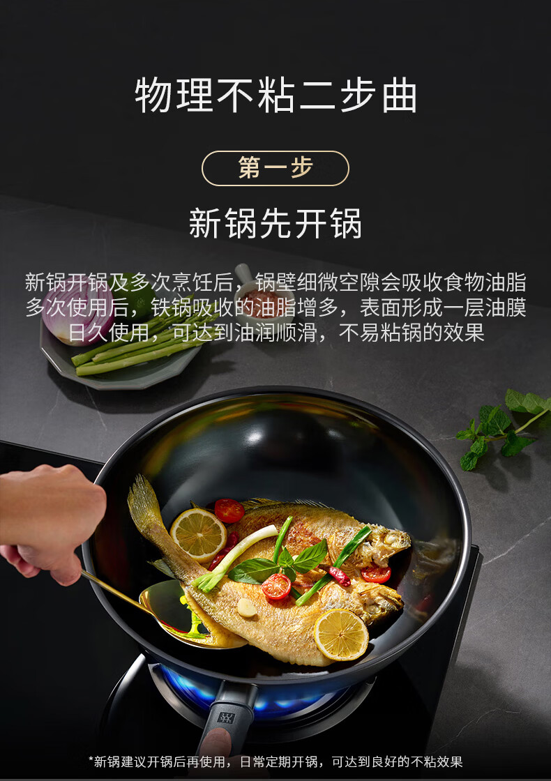 双立人(ZWILLING)炒锅铁锅大口径炒菜锅厨具电磁炉燃气通用SILVER银光铁系列精铁锅 【99.78%精铁】铁炒锅 30cm