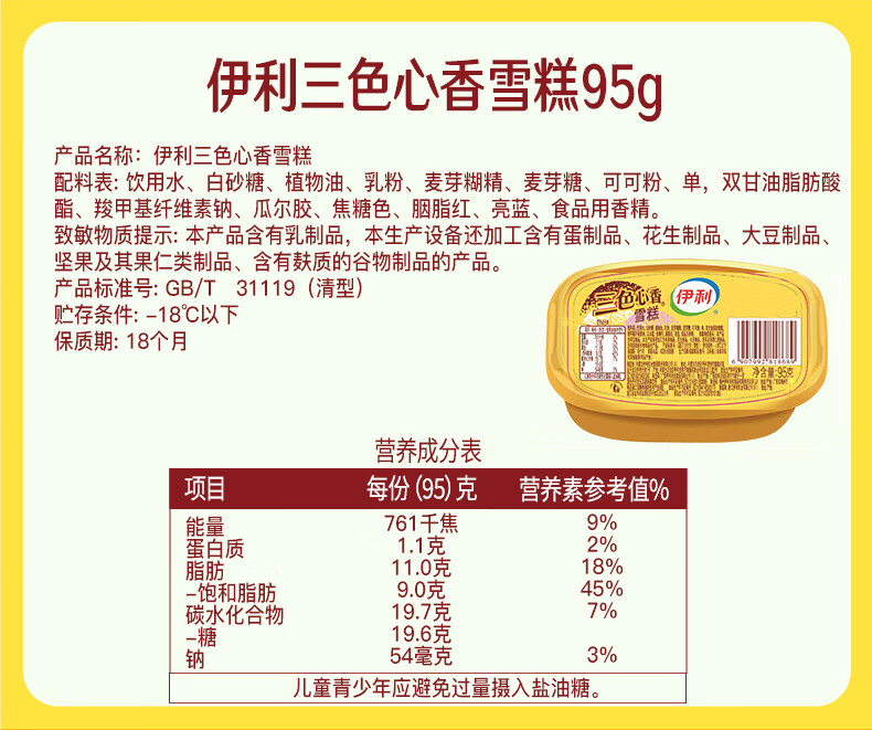 伊利甄稀90g杯*8杯+香草奶昔杯*5杯+三色心香雪糕*5杯 冰淇淋 雪糕 共18杯(1620g)