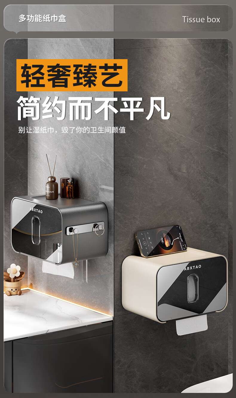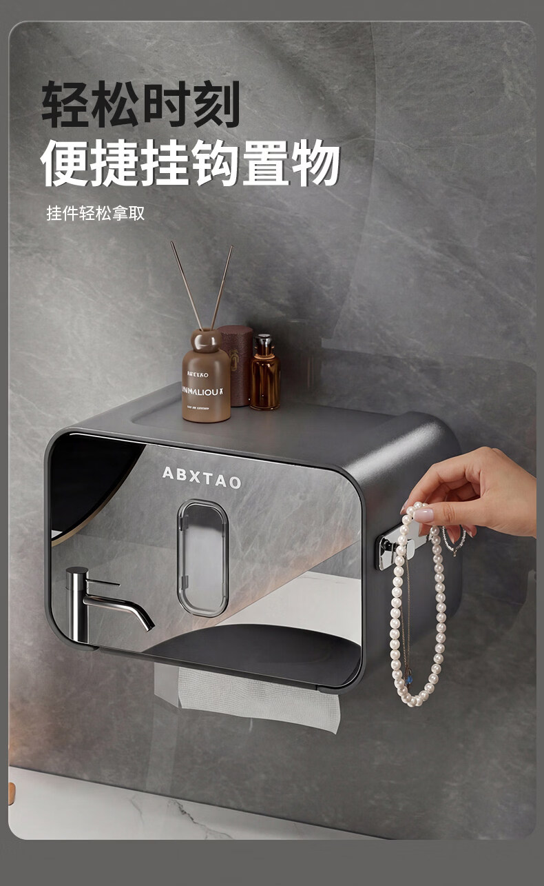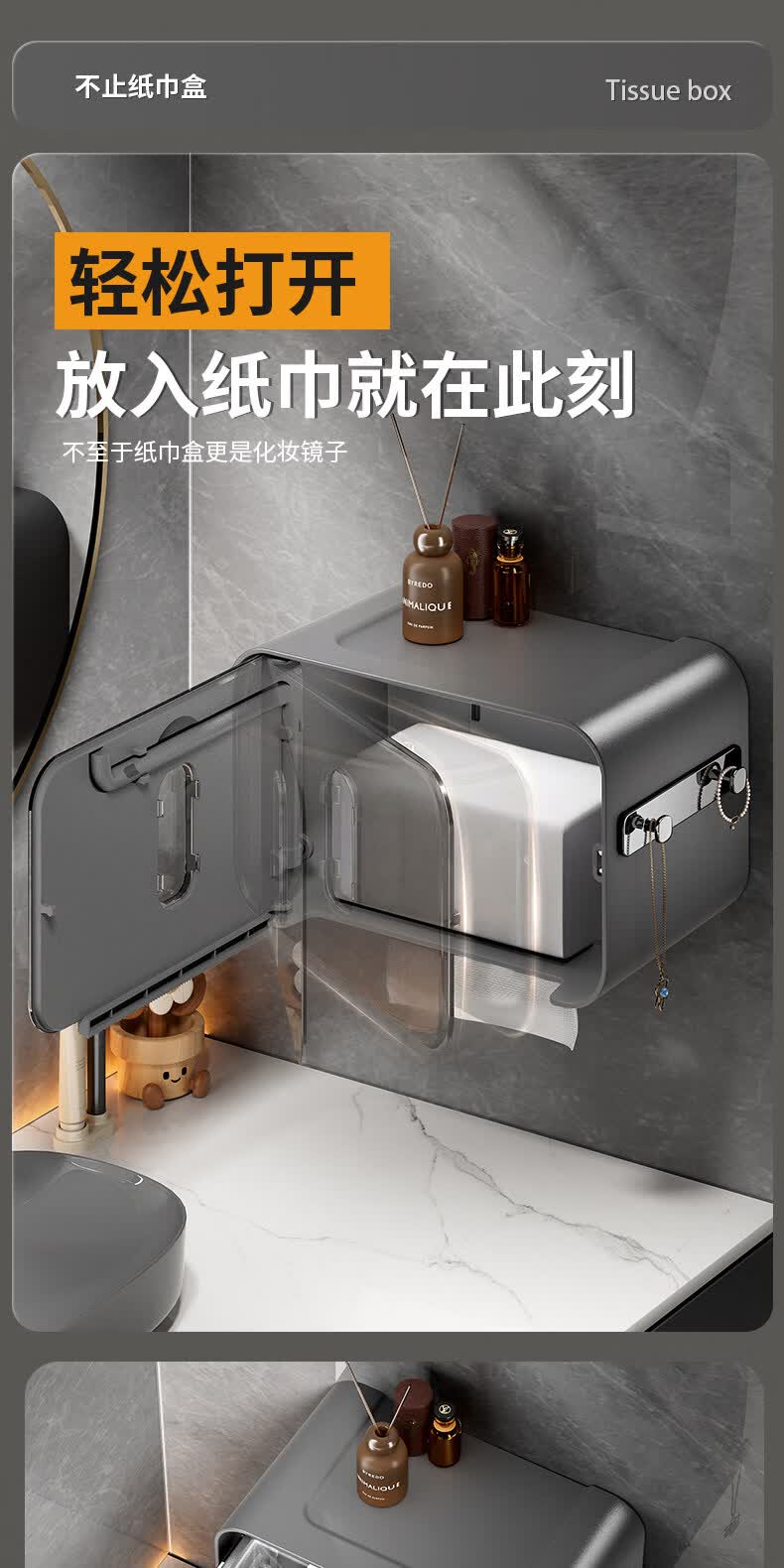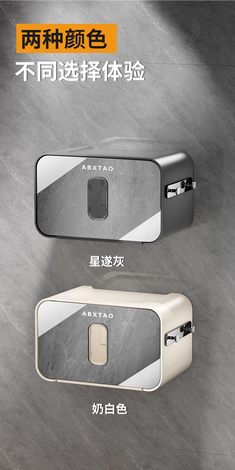 艾仕可(ASCOR)卫生间纸巾盒壁挂式免打孔厕纸盒抽纸卷纸挂架厕所洗手间纸巾架子 星遂灰-1个装【卷抽两用 三倍省心】