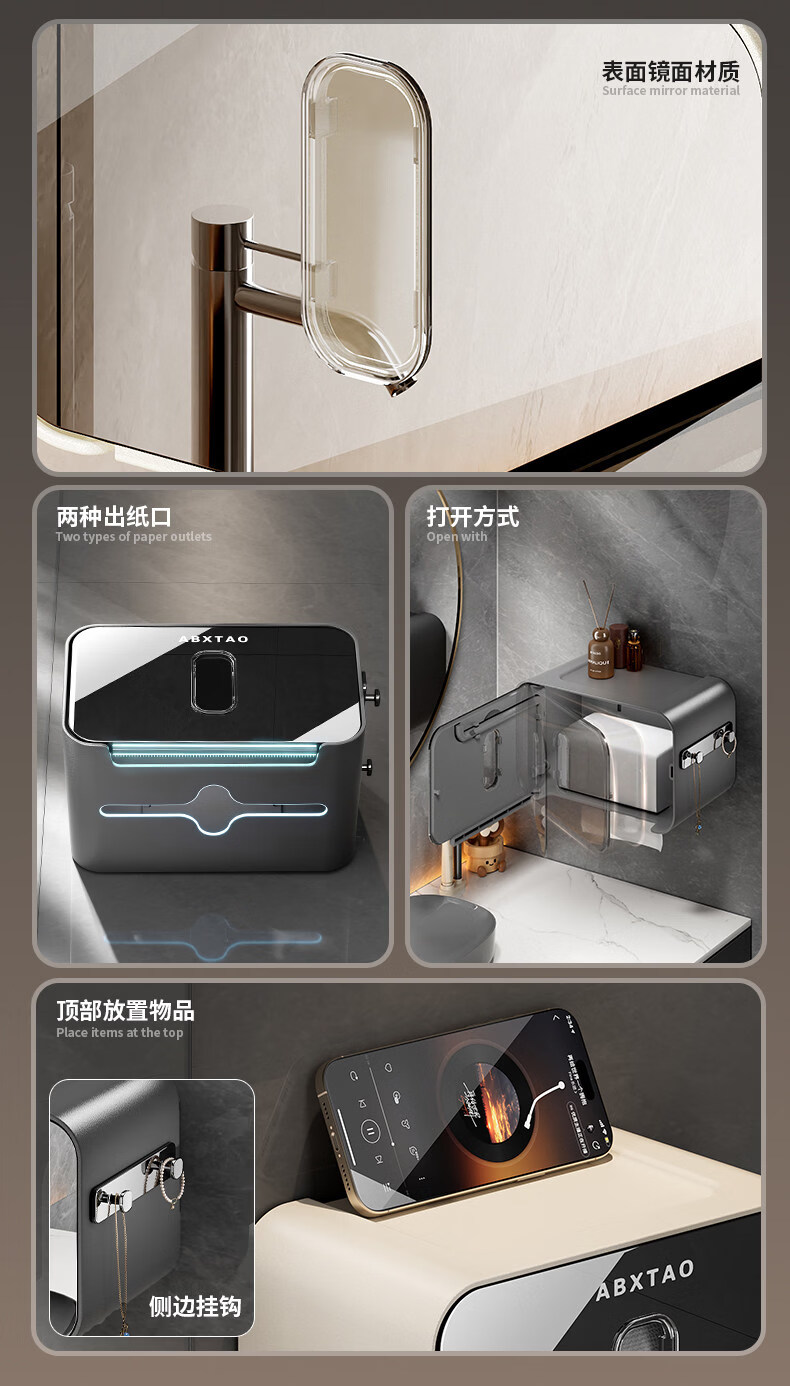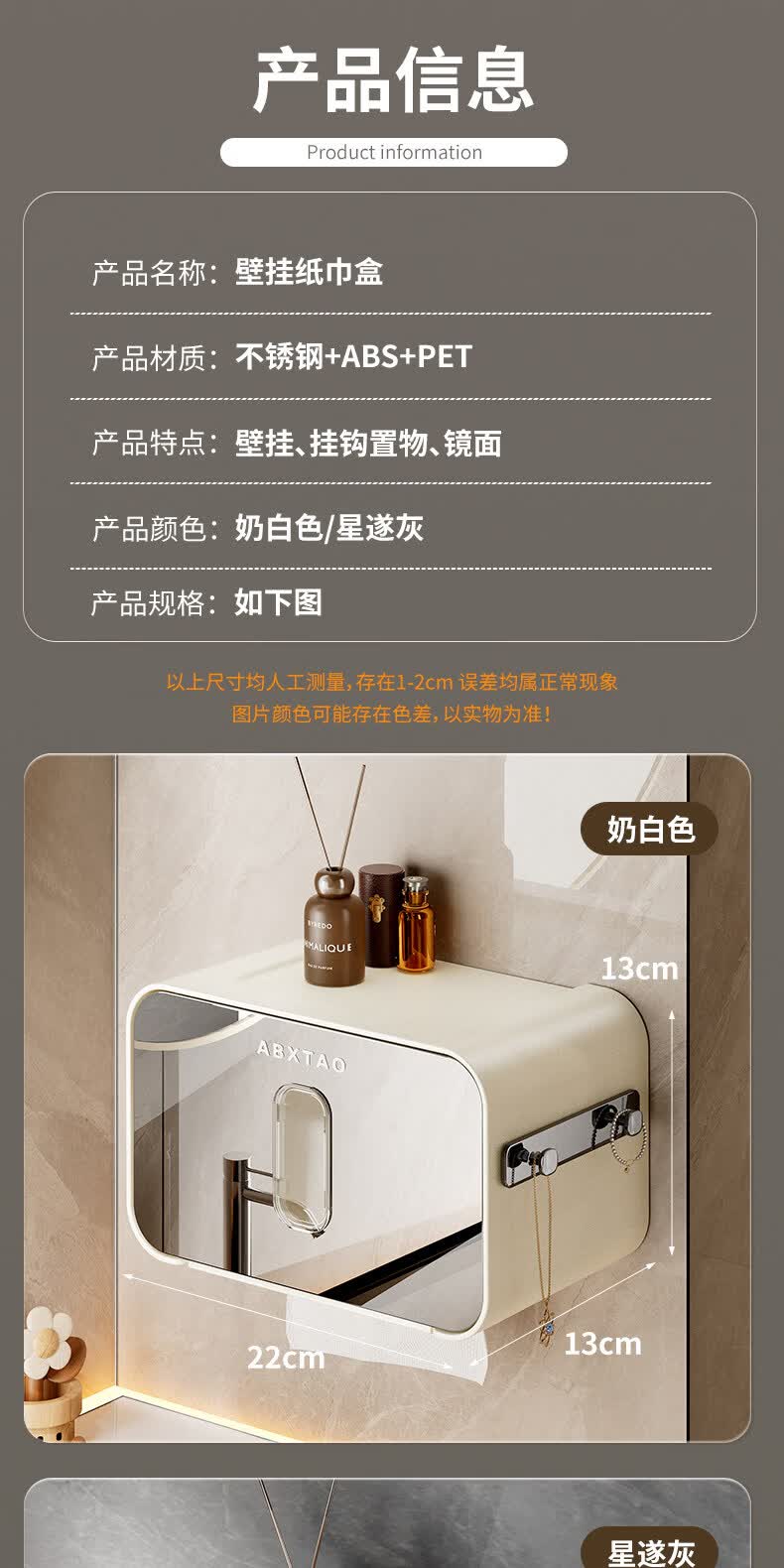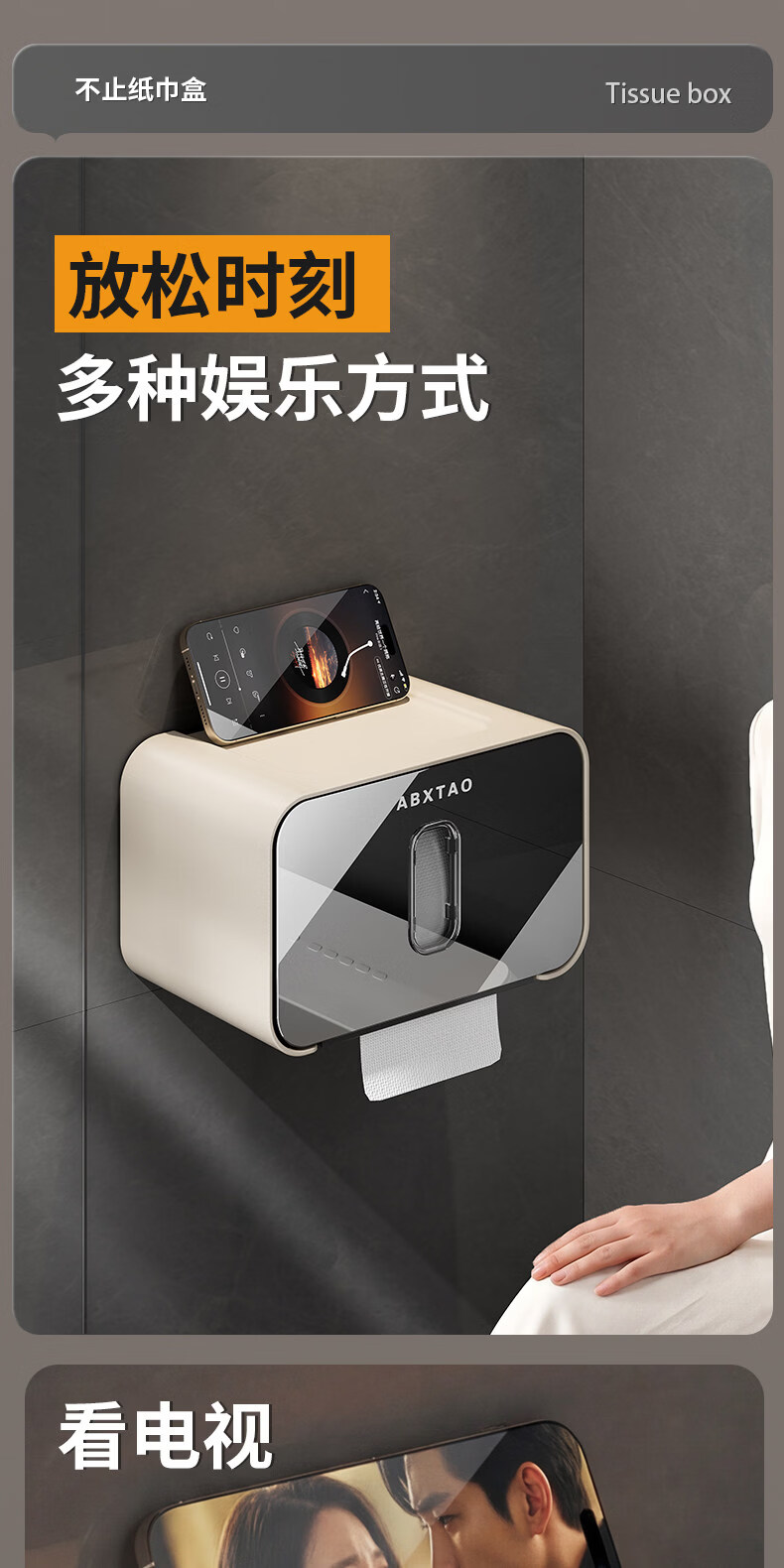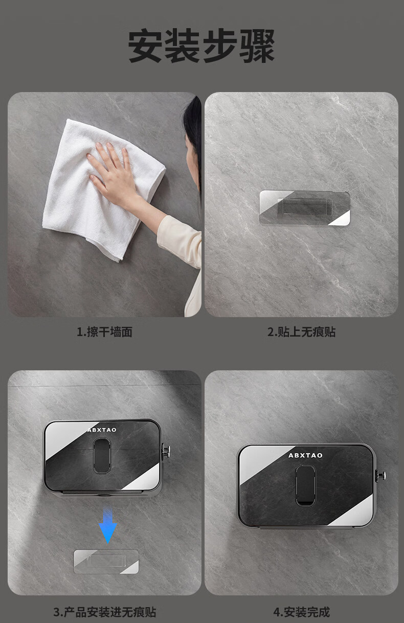 艾仕可(ASCOR)卫生间纸巾盒壁挂式免打孔厕纸盒抽纸卷纸挂架厕所洗手间纸巾架子 星遂灰-1个装【卷抽两用 三倍省心】