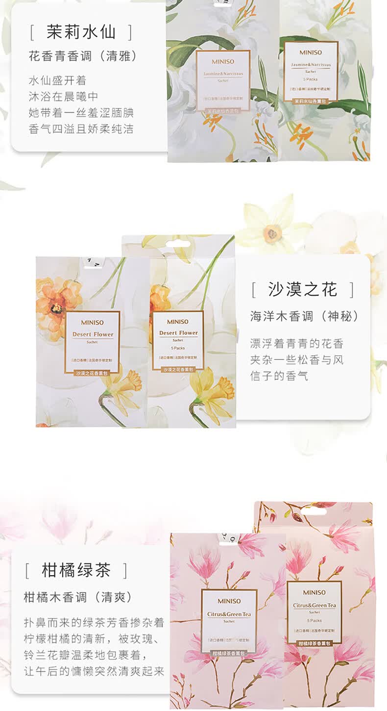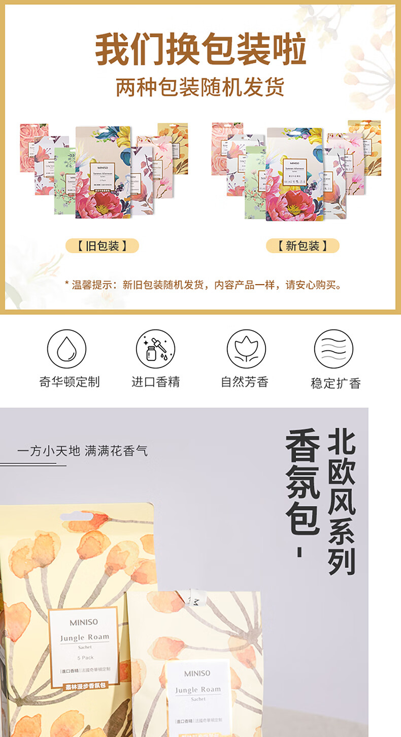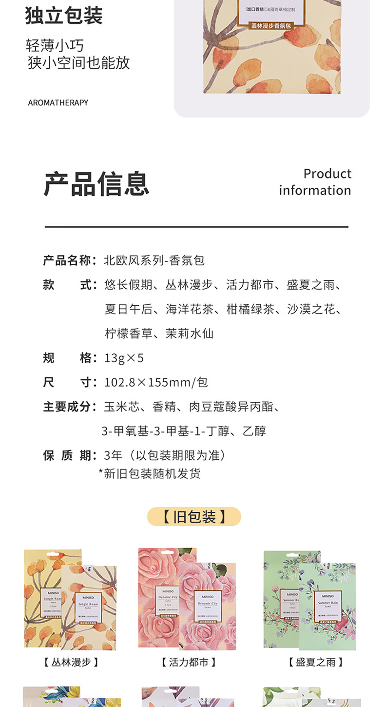 名创优品(MINISO)北欧风系列-香氛包除味衣橱持久生日礼物丛林漫步[五包一盒]
