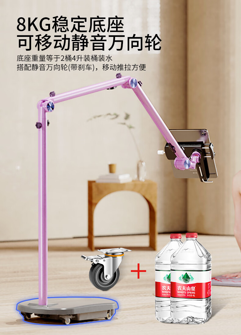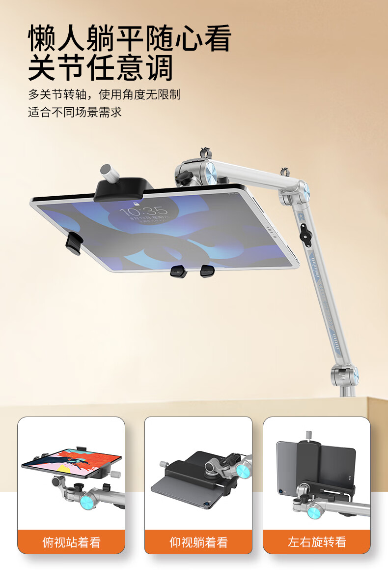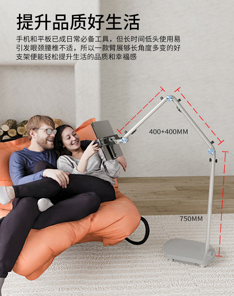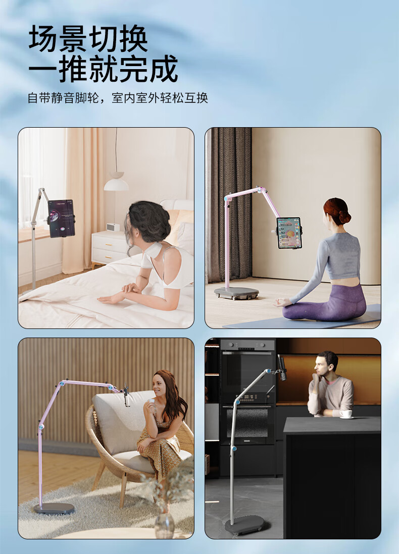 巧螳螂平板支架落地床头手机iPad床上手机架懒人多功能可移动旋转升降悬臂跟拍云台直播拍摄铝合金星光银 移动式(适用手机或者平板)-星光银