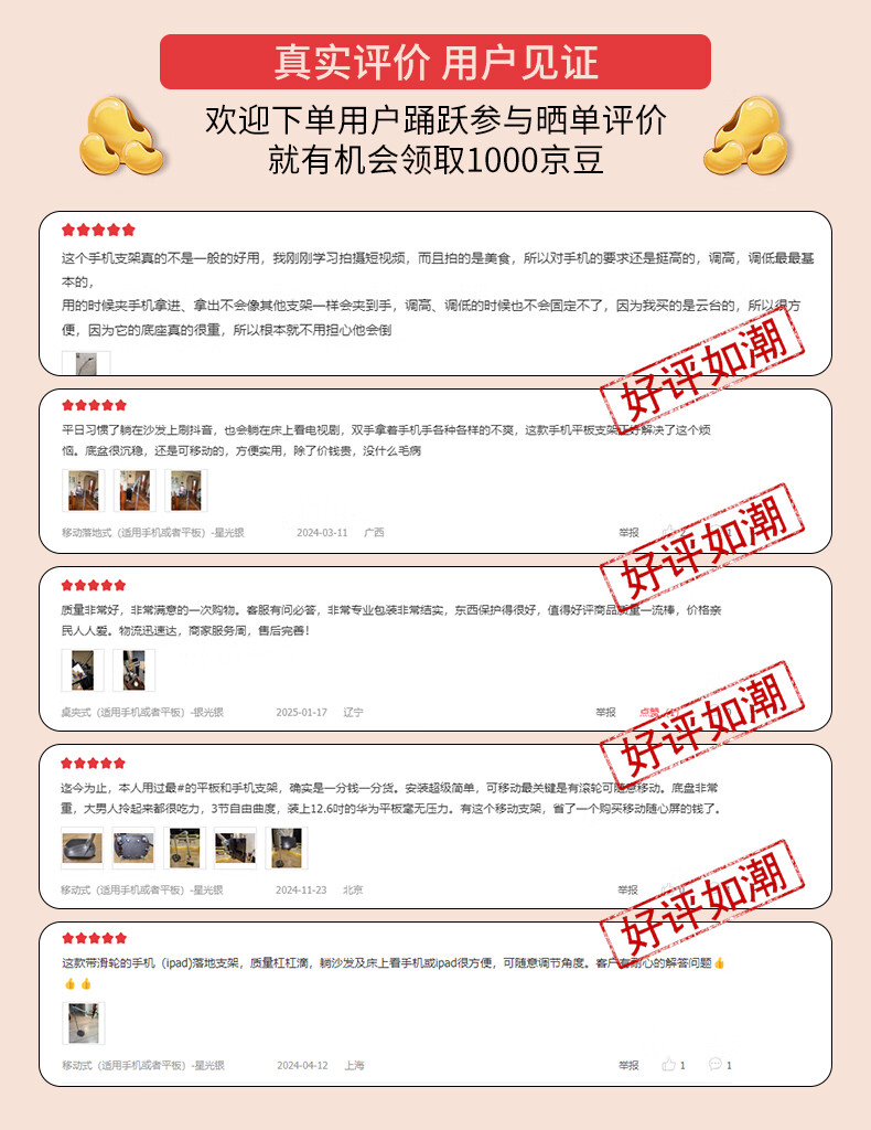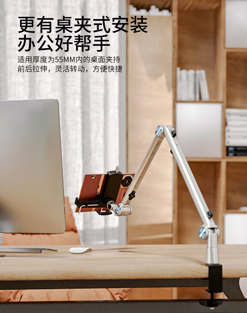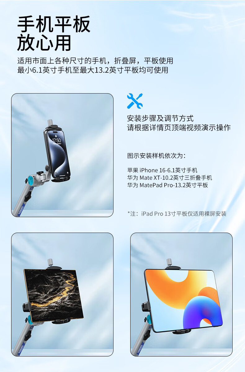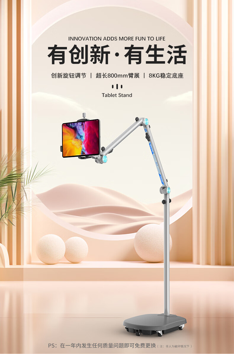 巧螳螂平板支架落地床头手机iPad床上手机架懒人多功能可移动旋转升降悬臂跟拍云台直播拍摄铝合金星光银 移动式(适用手机或者平板)-星光银