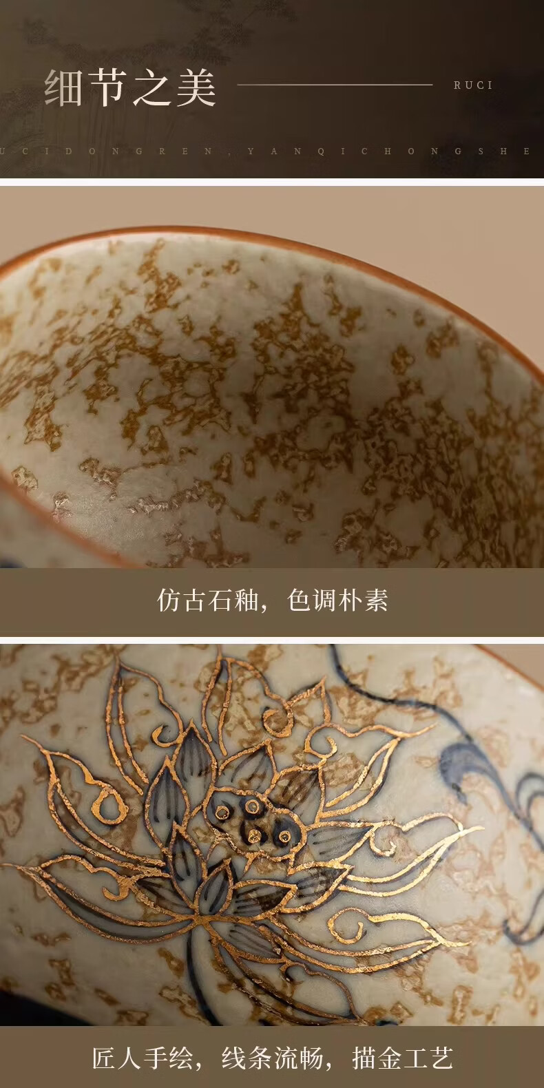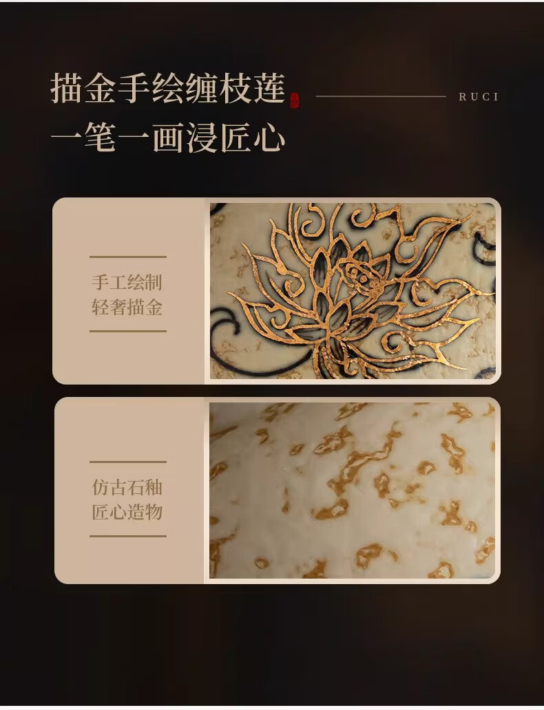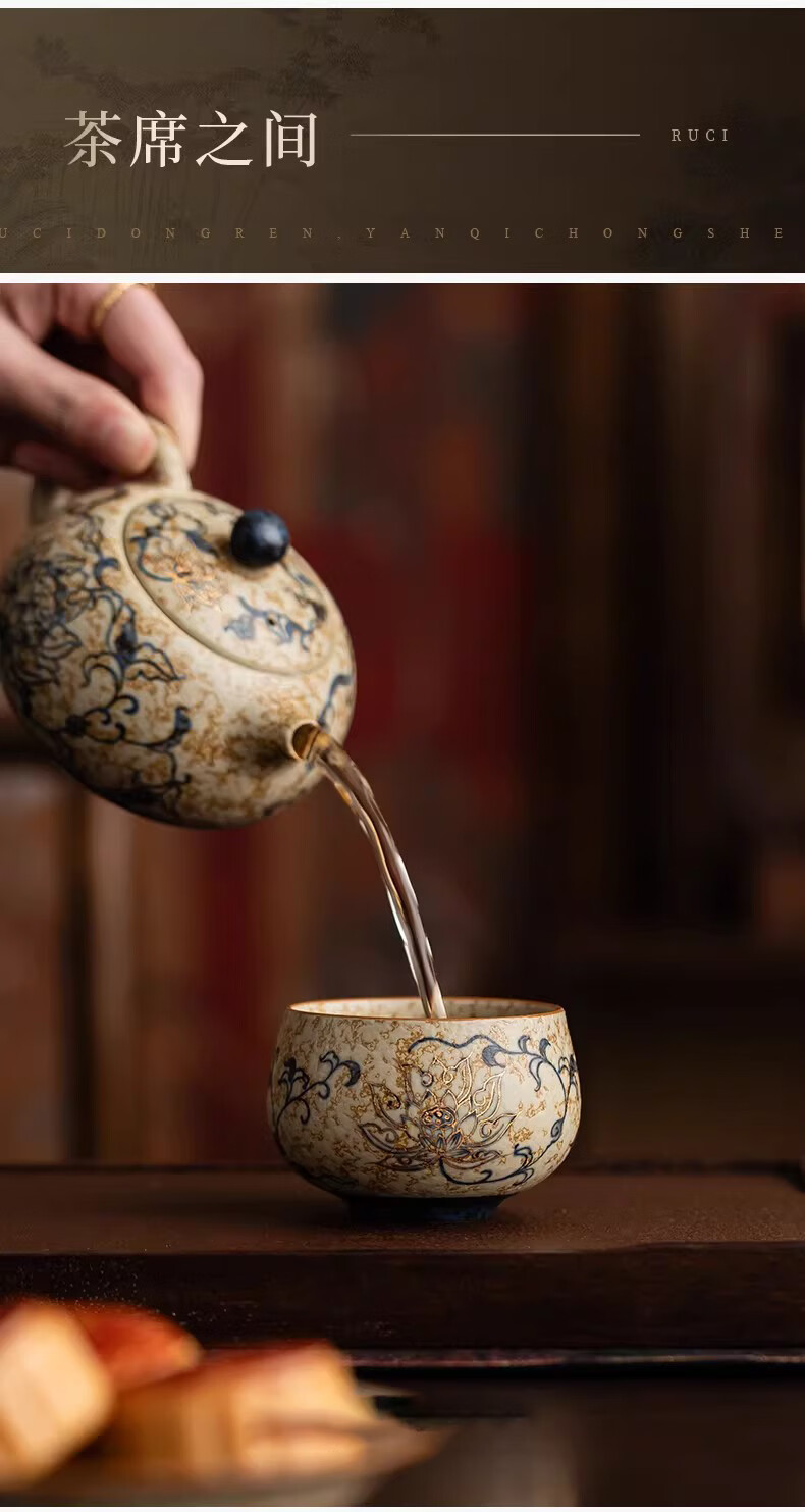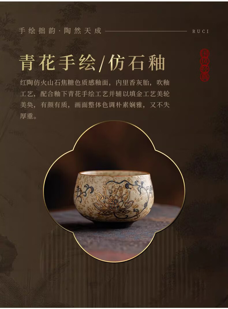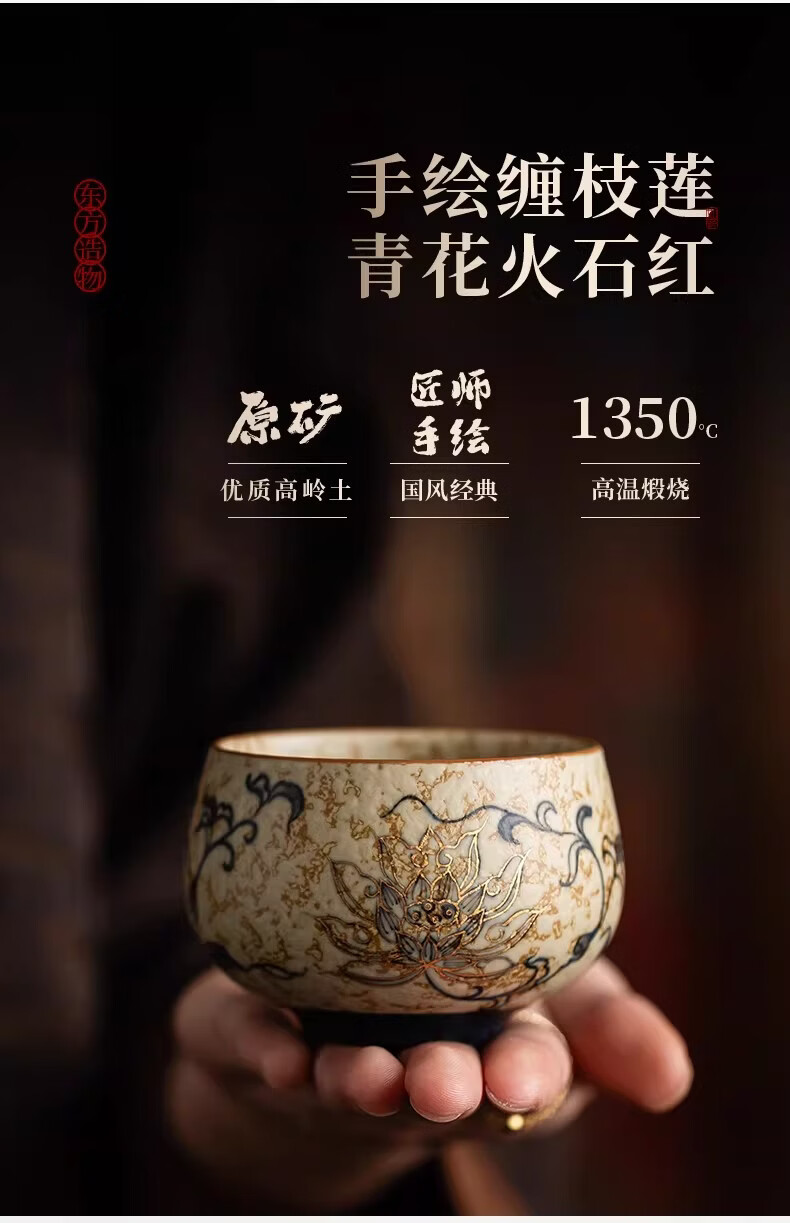 BOSSY敦煌手绘描金青花缠枝莲茶杯主人杯轻奢高档办公室家用品茗杯送礼 九色鹿丨手绘描金禅定对杯【礼盒装】